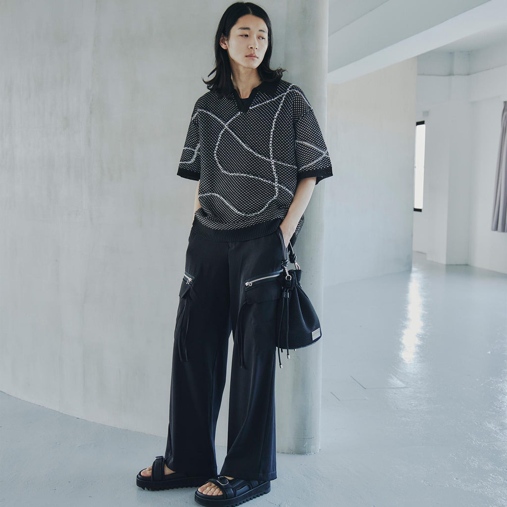 身頃全体に施されたライン柄のアートが目を惹きます。