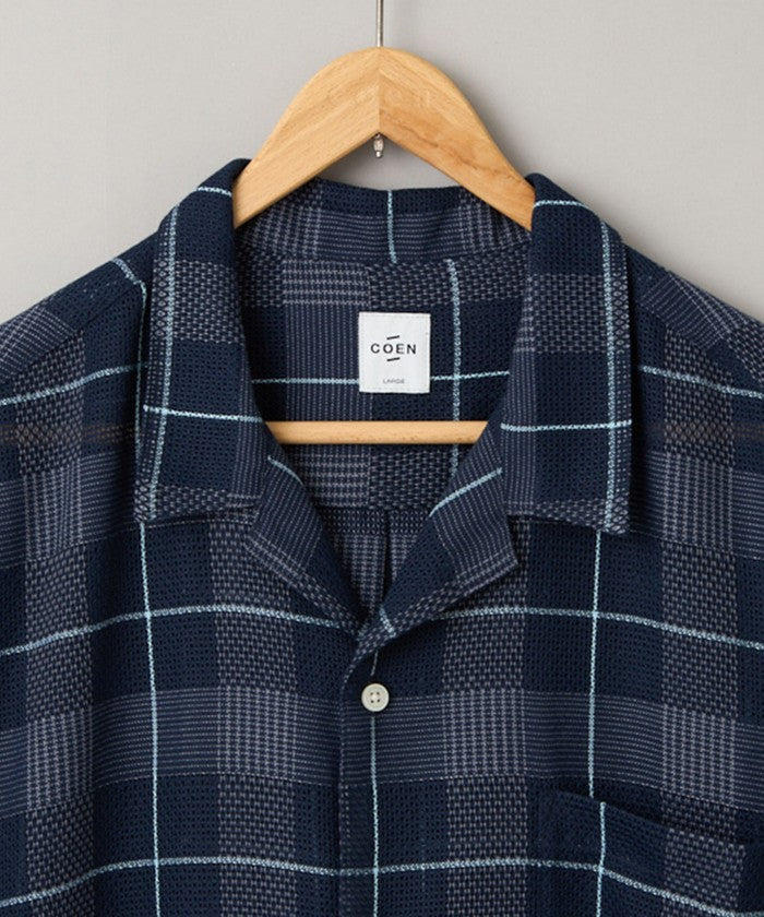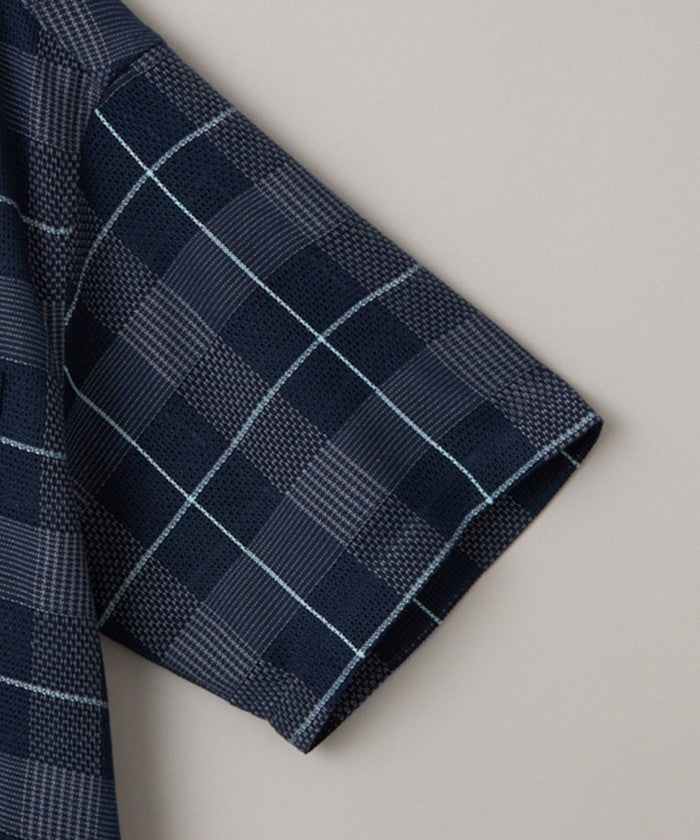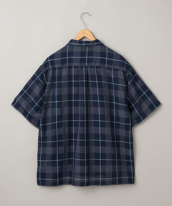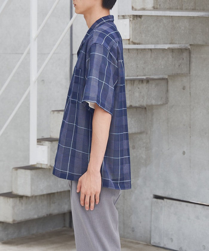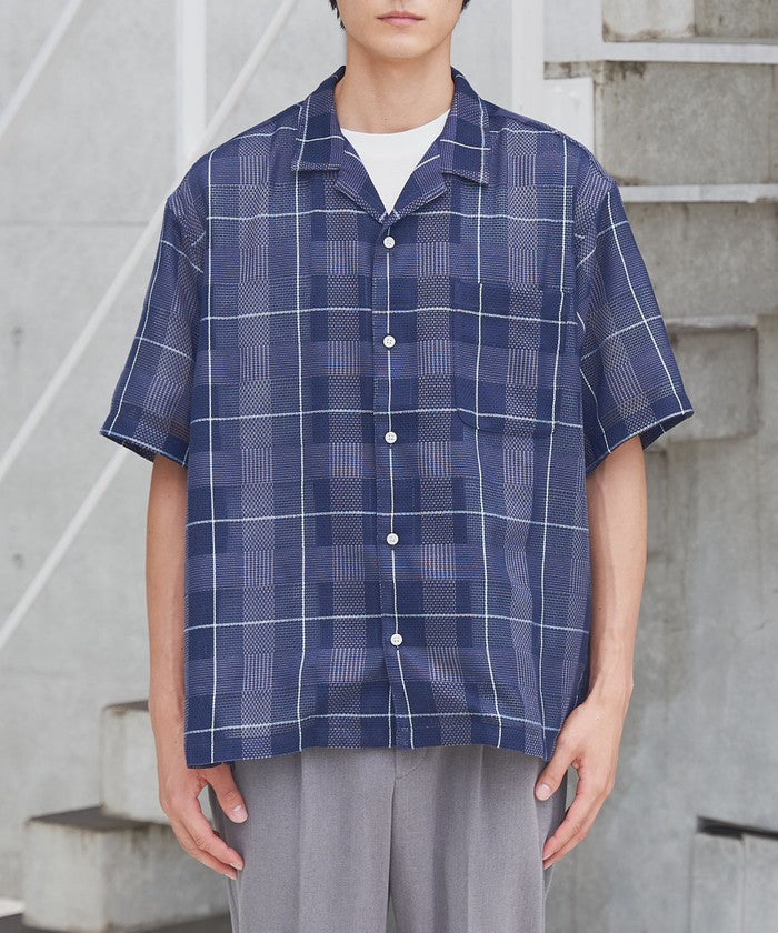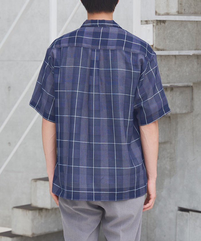 風通しの良さと軽やかさに優れた絡み織り素材を使用した、夏にぴったりの半袖チェックシャツ。