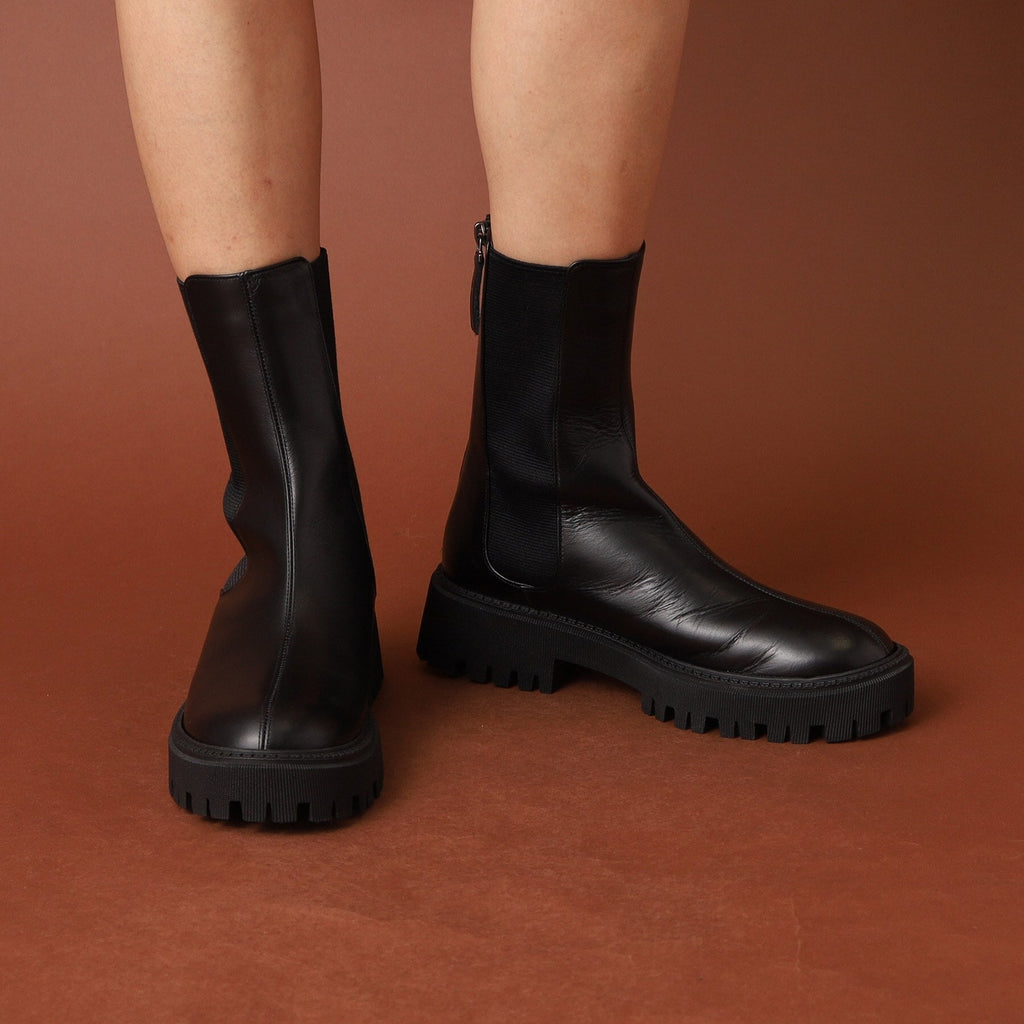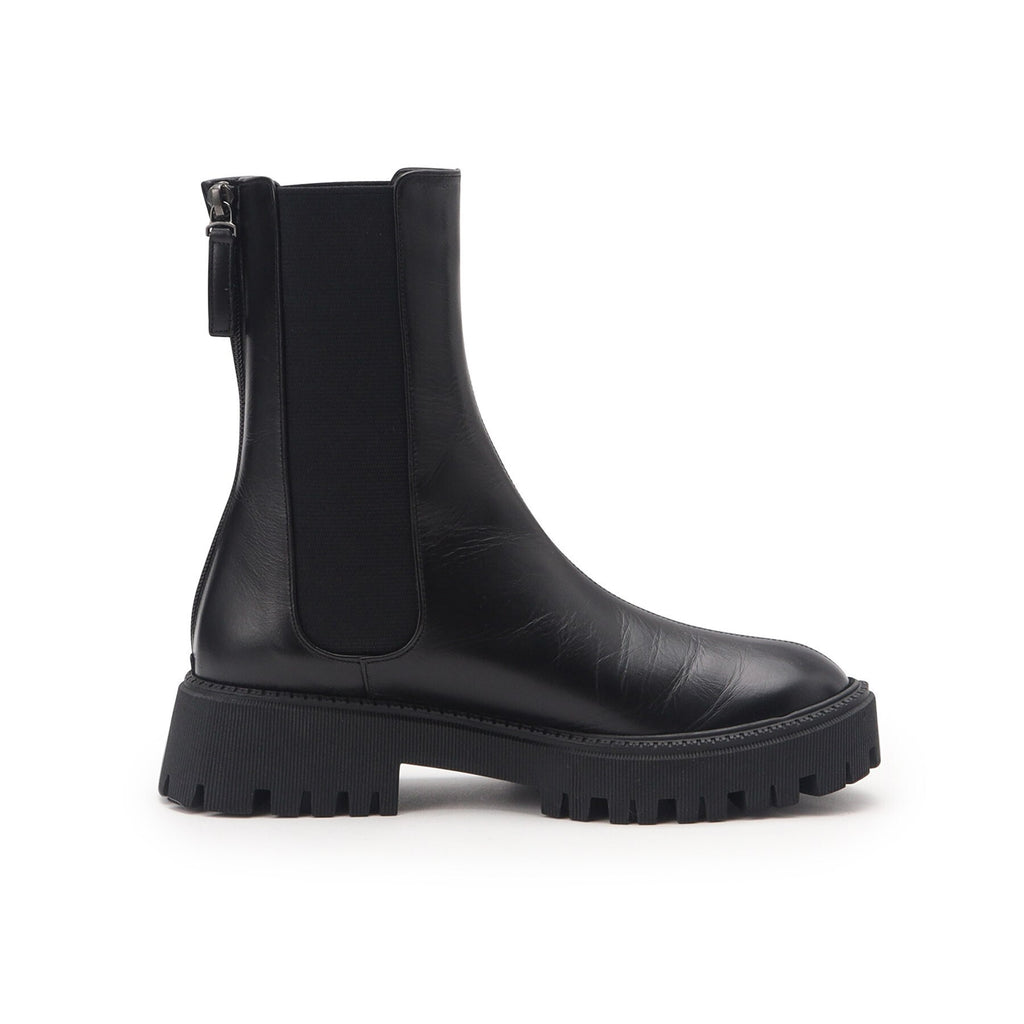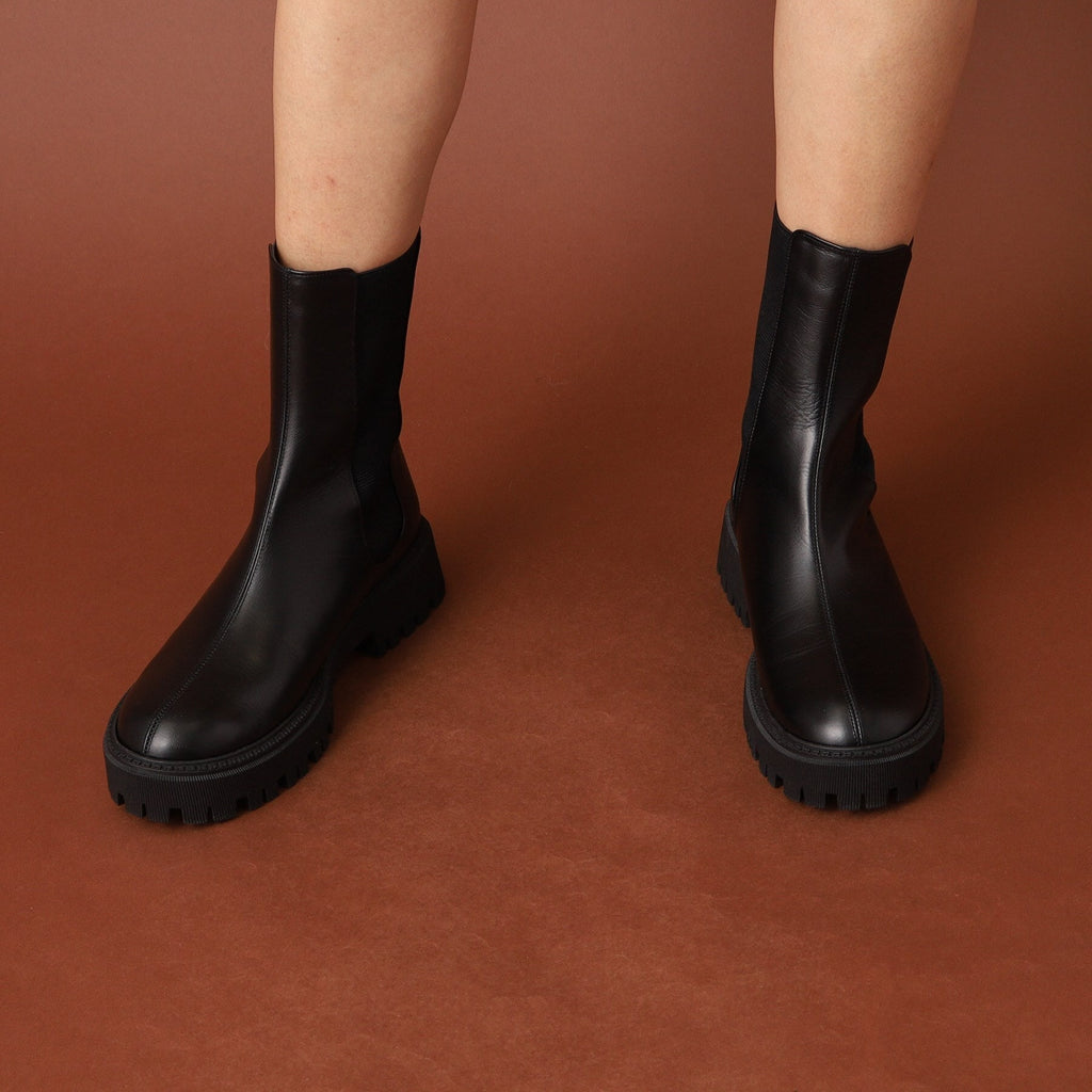 存在感のあるソールと少し長めの丈がトレンドライクなチェルシーブーツ。