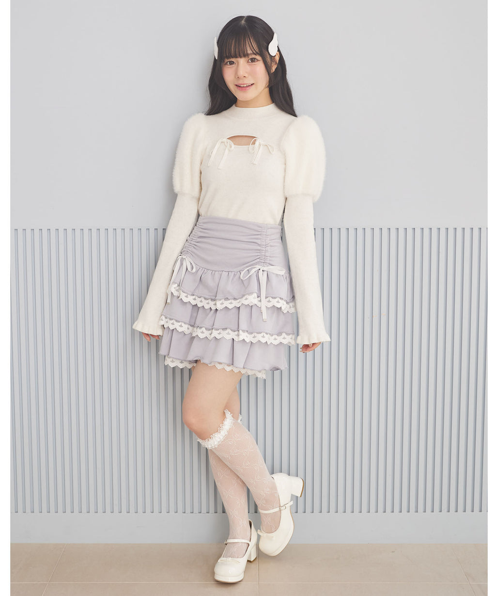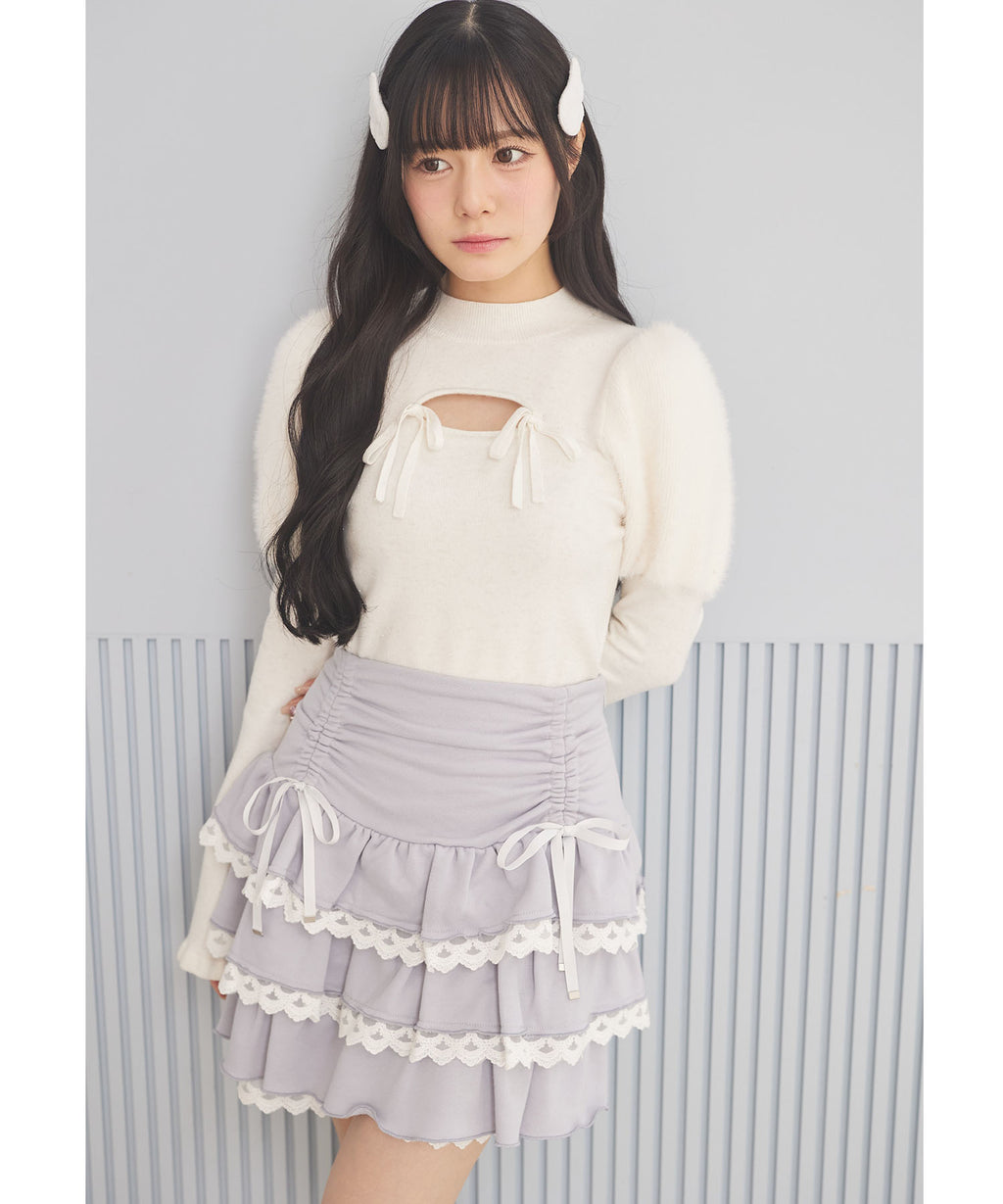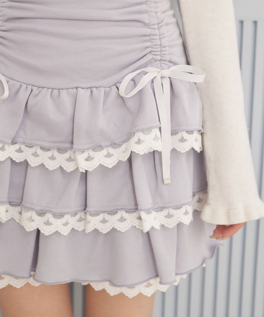 スユン Suyunn リボン付きドロストレースフリルスカート