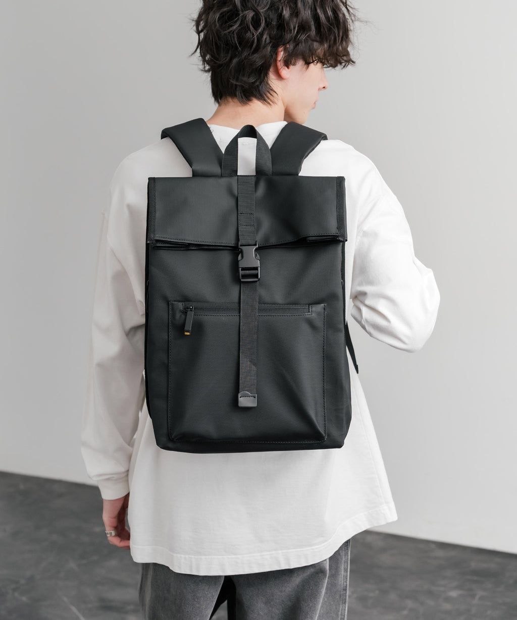 開口部は折り返してウェビングベルトで固定できるロールトップ仕様です。