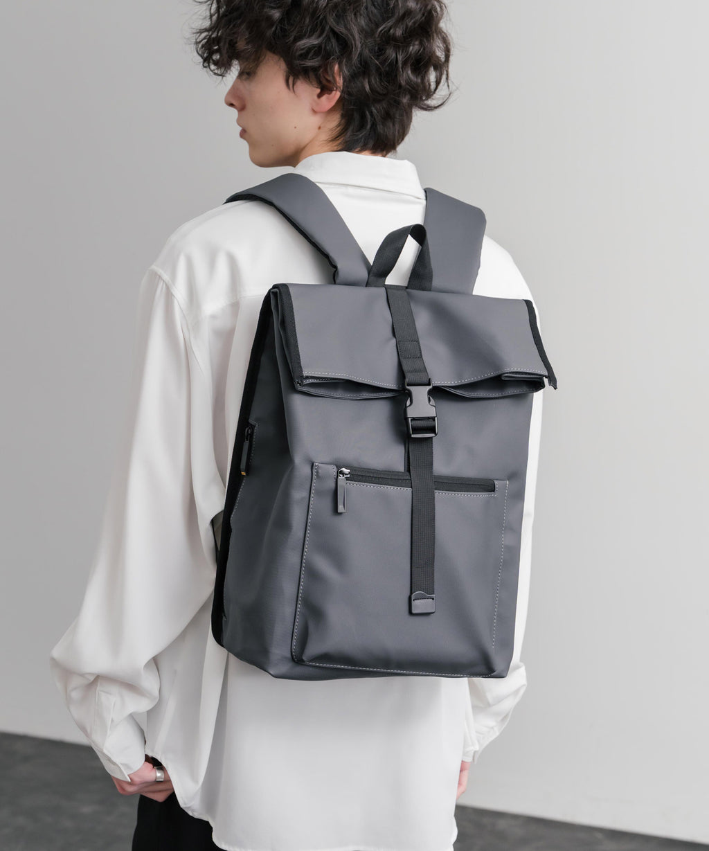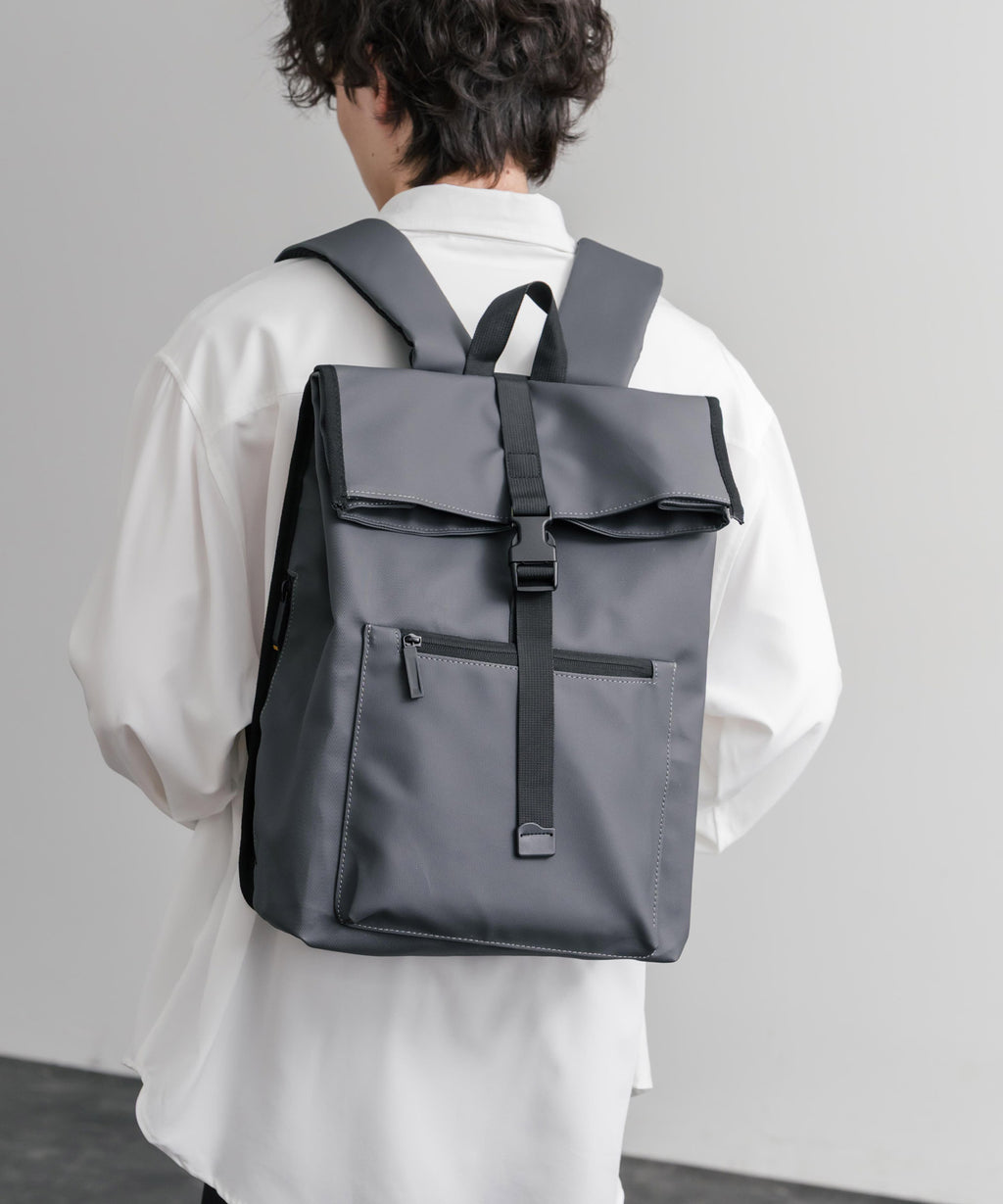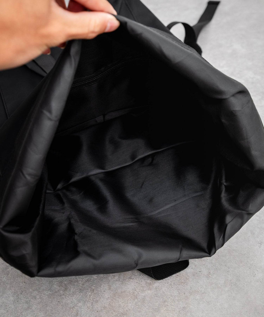 ロールトップ構造により荷物の量に合わせて高さ調整可能なのも魅力。