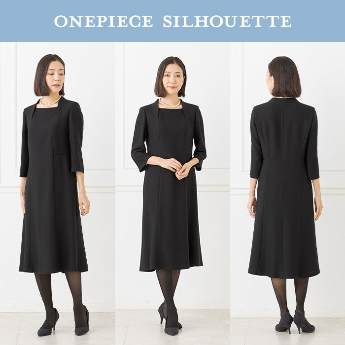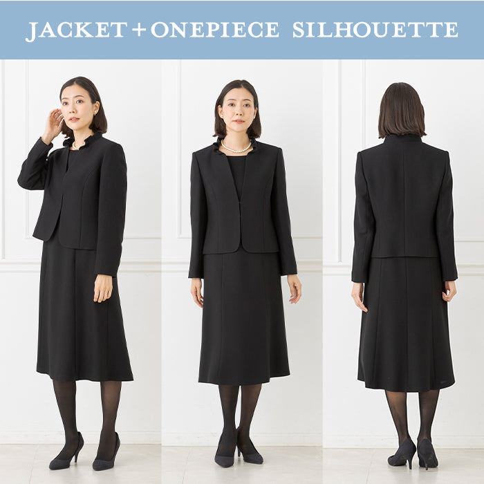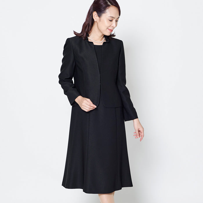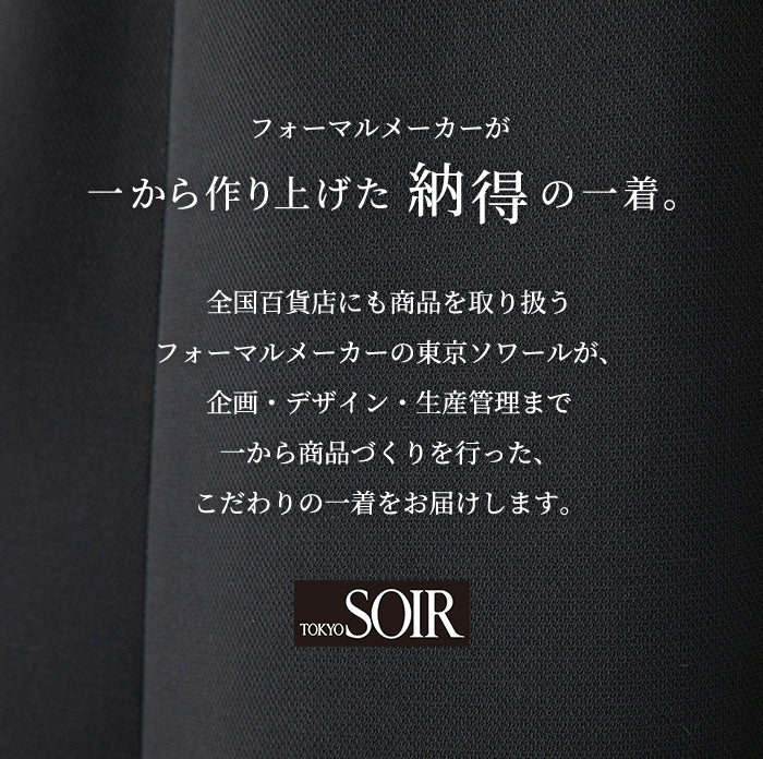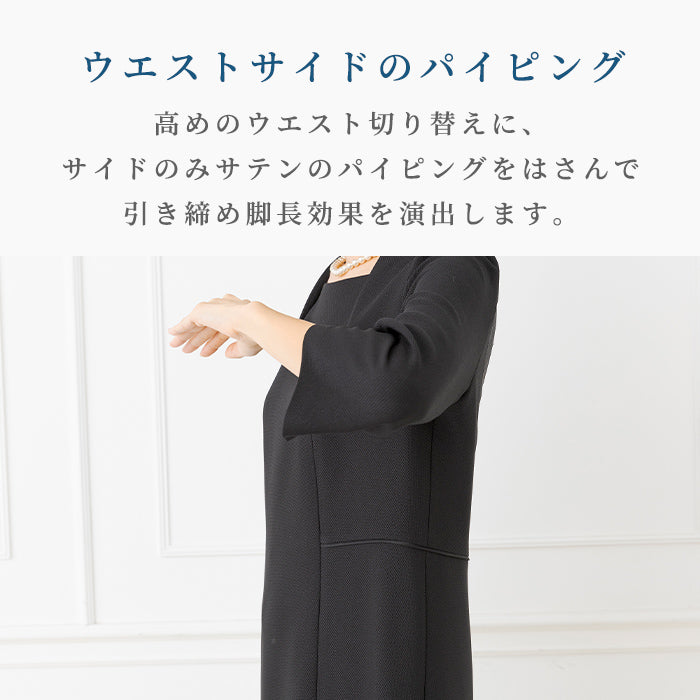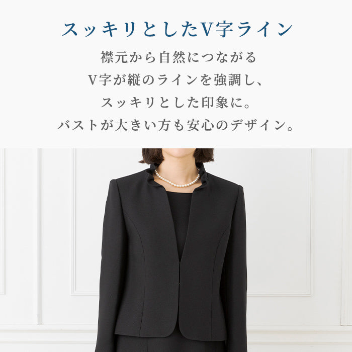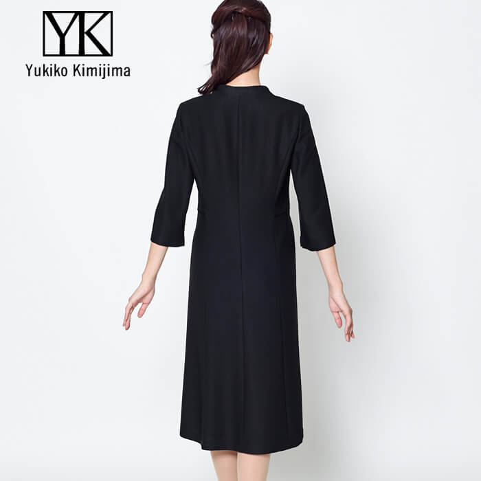 ファスナーが見えないすっきりしたシルエットと長めの着丈で喪主やご親族でも安心です。