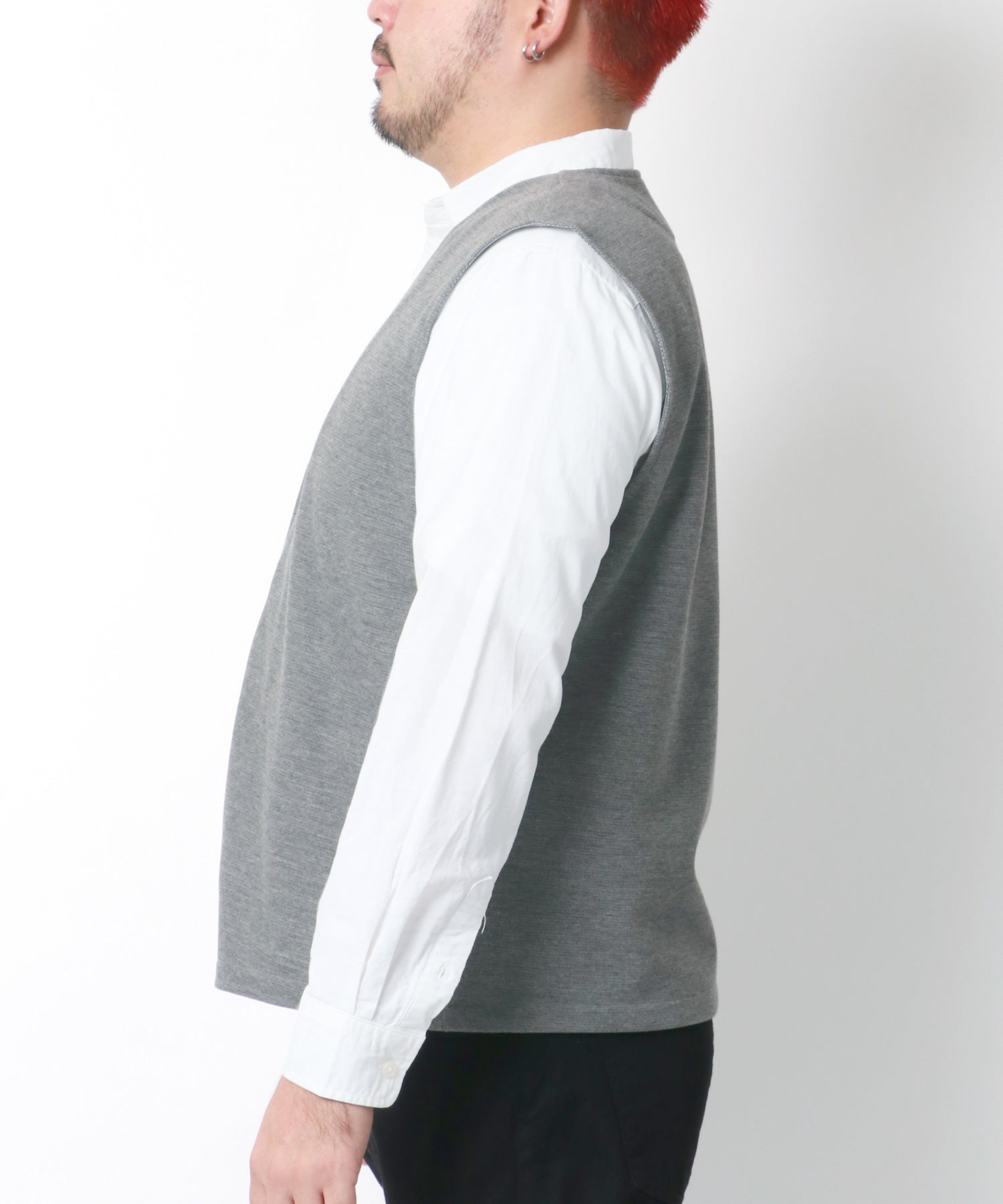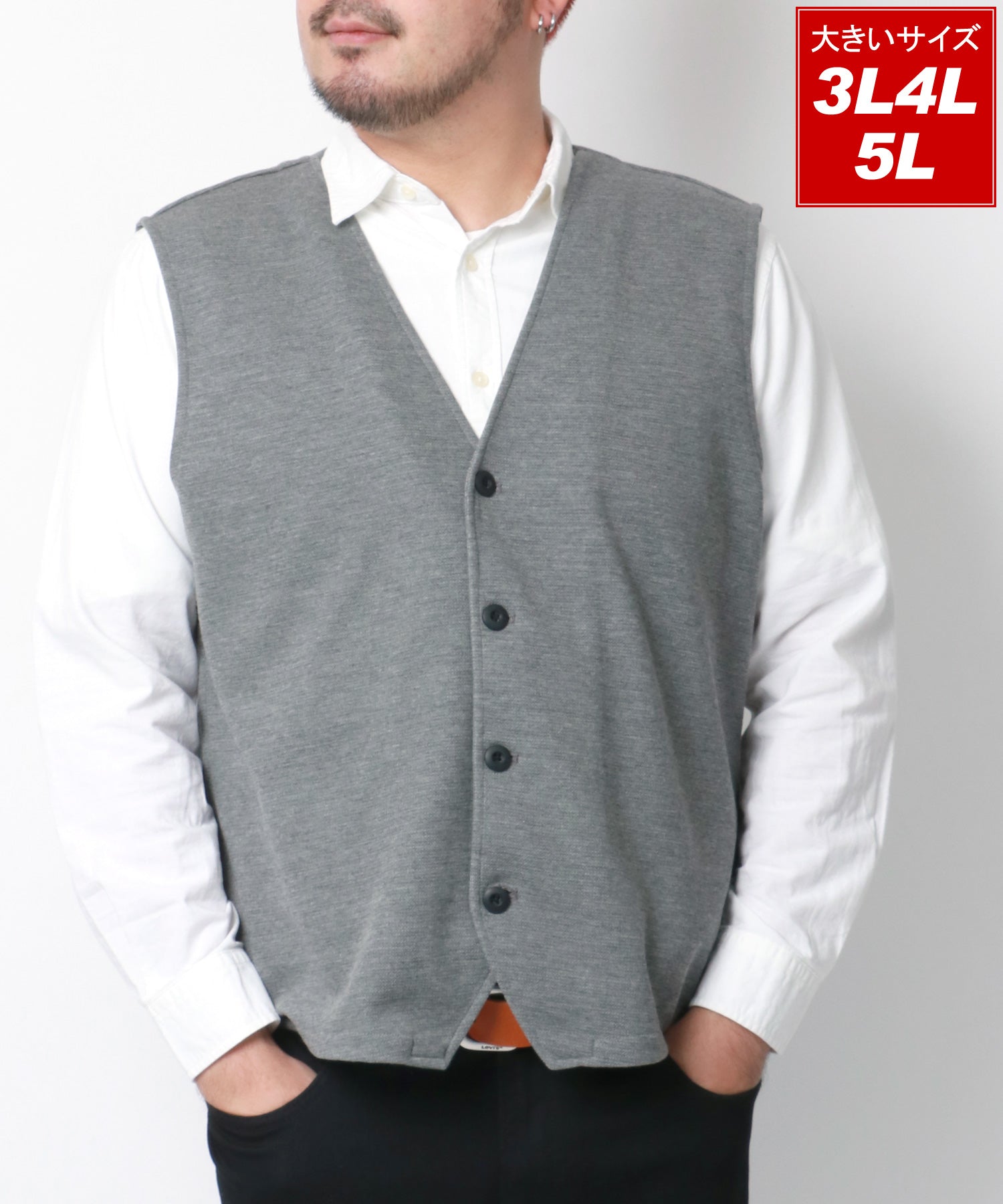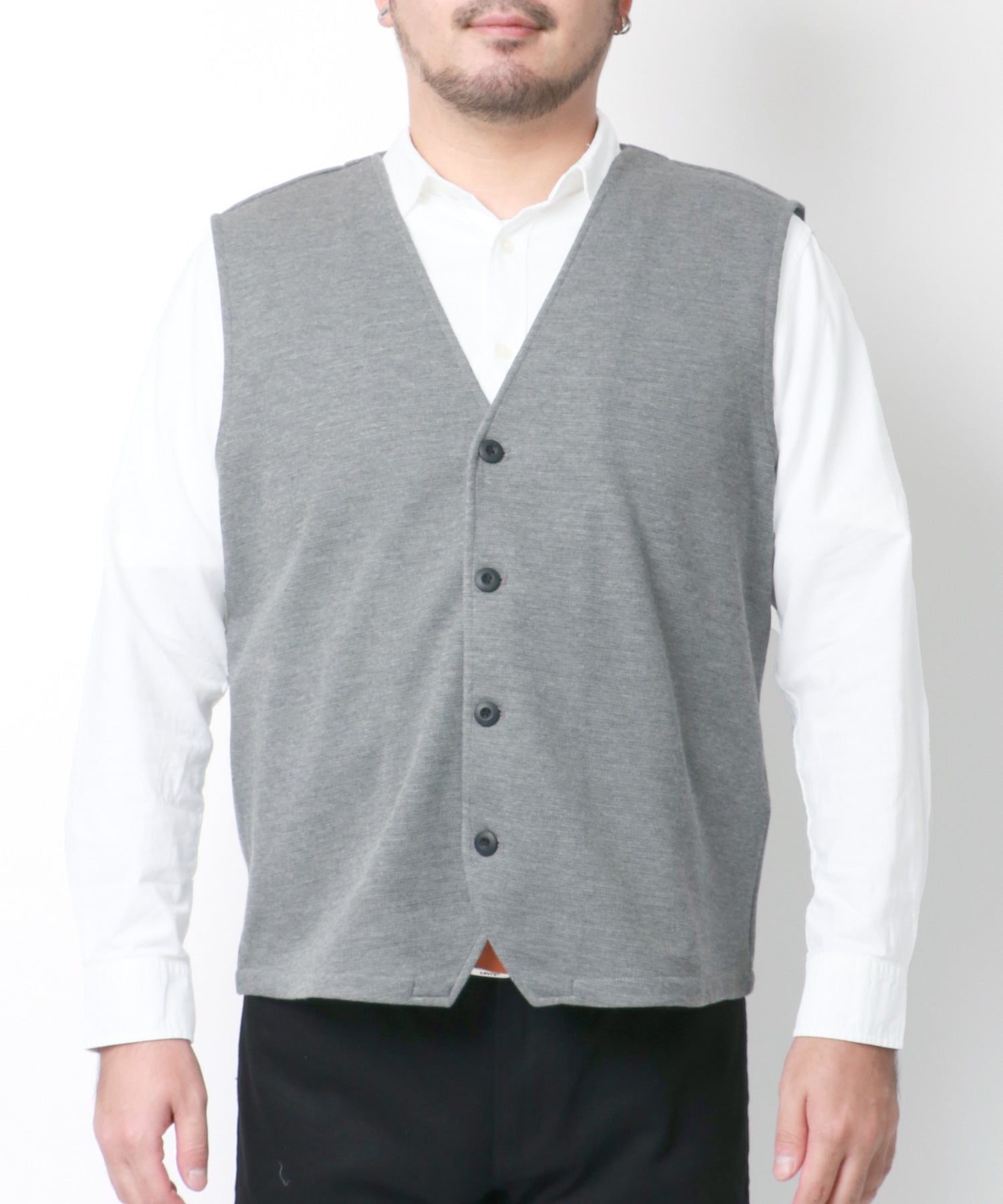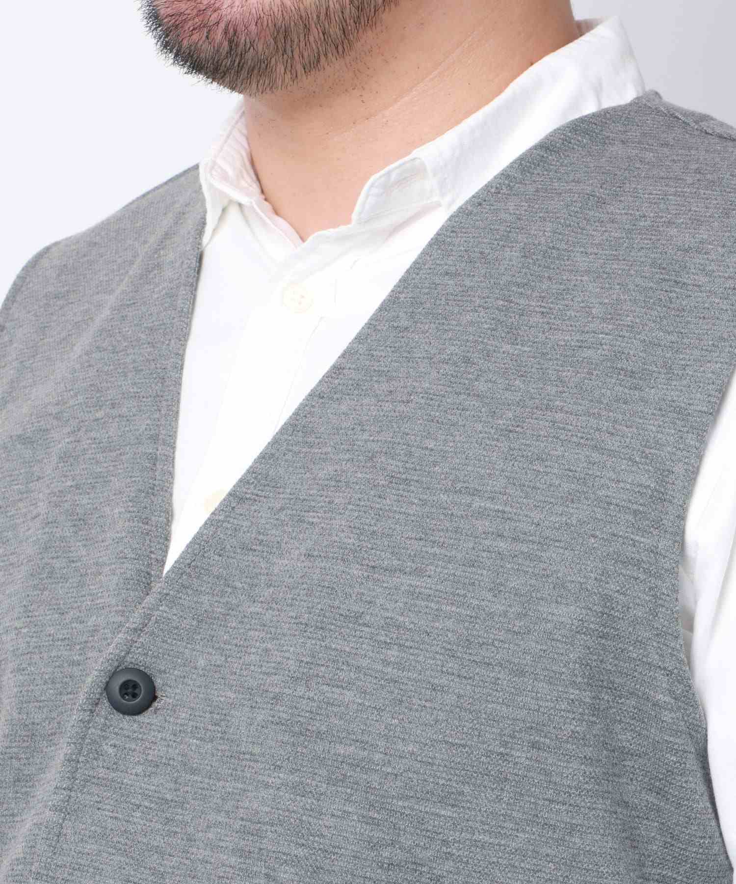 程よいラフさときちんと感があり重ね着に最適で汎用性の高い大きいサイズに対応したおすすめなジレです。