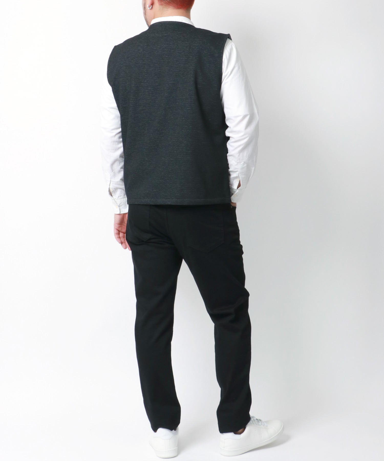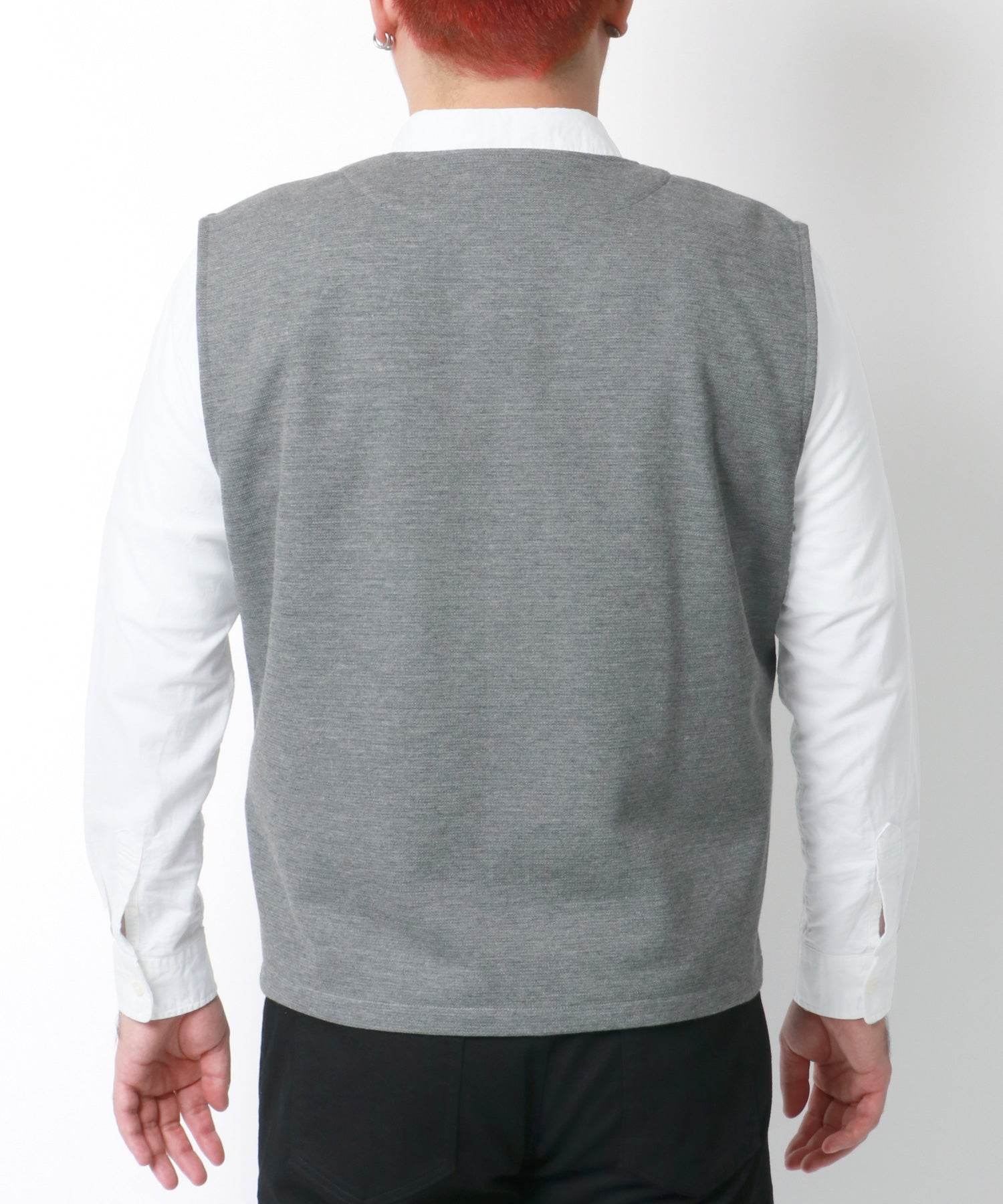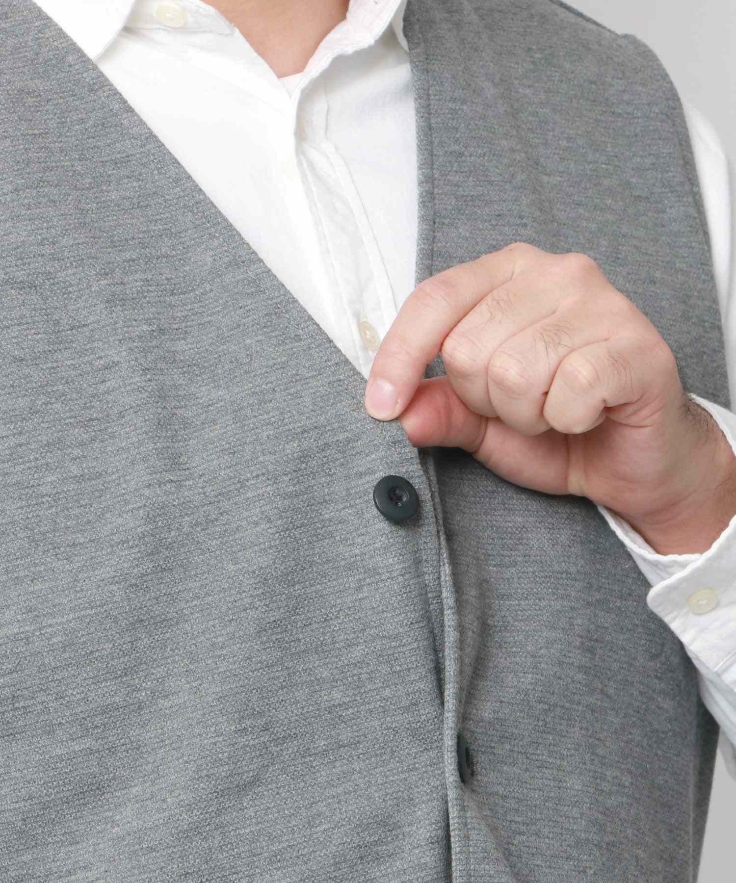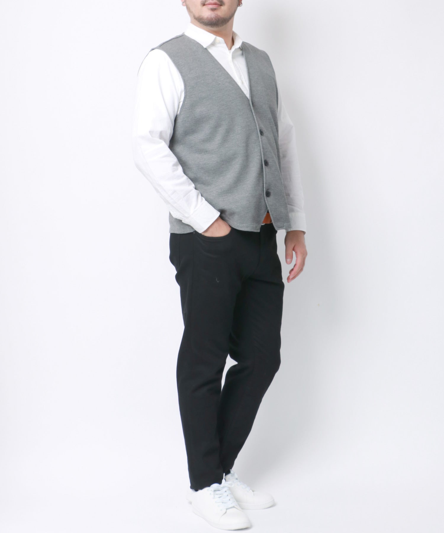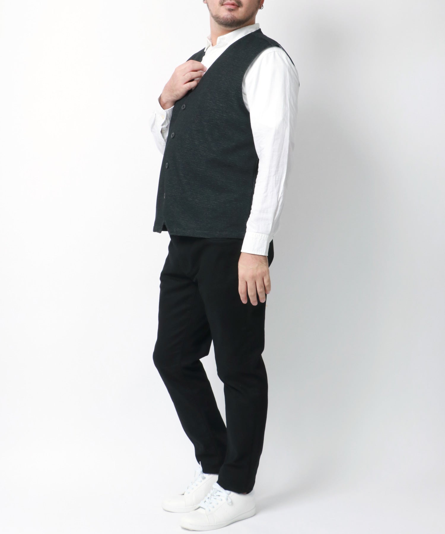 程よいラフさときちんと感があり重ね着に最適で汎用性の高い大きいサイズに対応したおすすめなジレです。