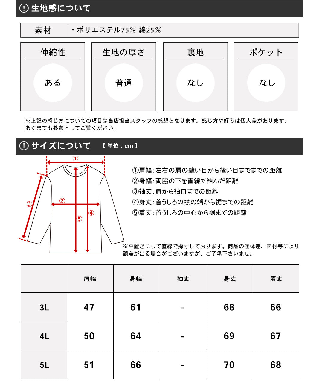 3L肩幅47cm 身幅61cm 身丈68cm 着丈66cm (下札表示対応サイズ)胸囲112~120cm