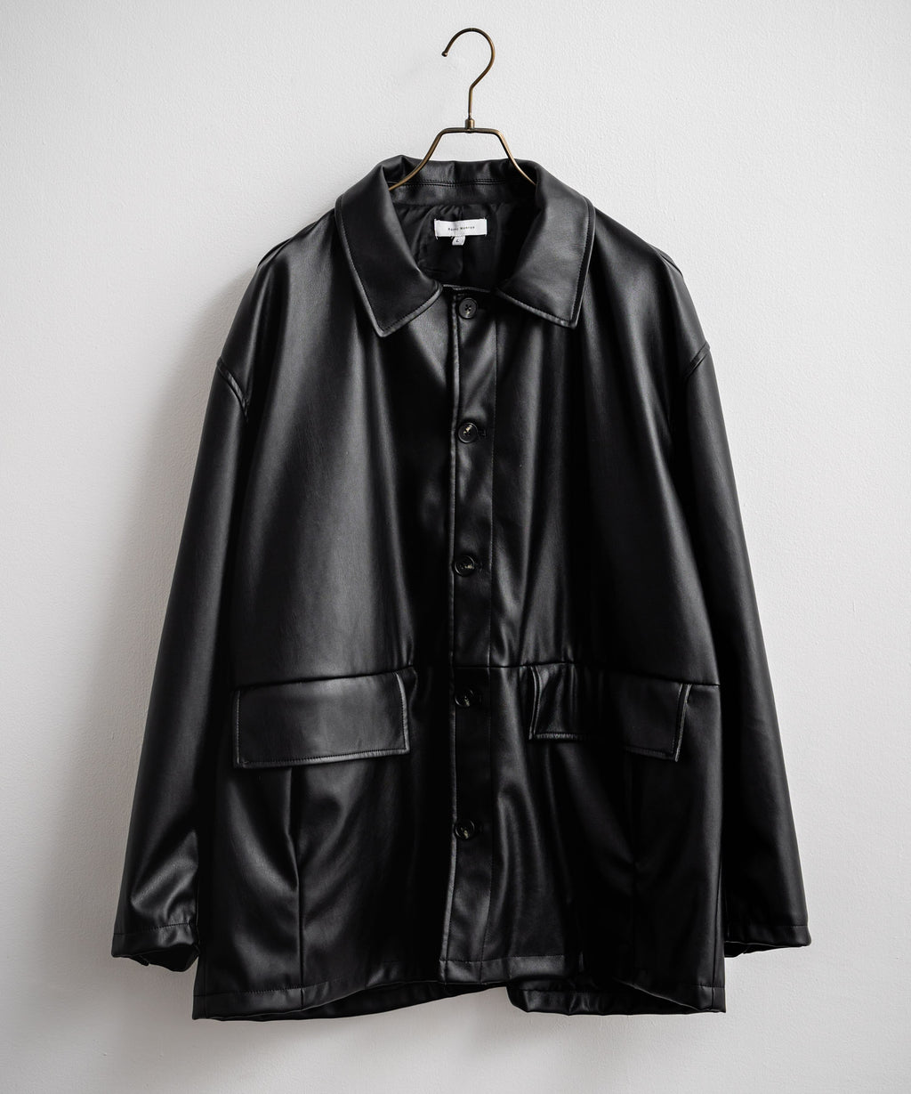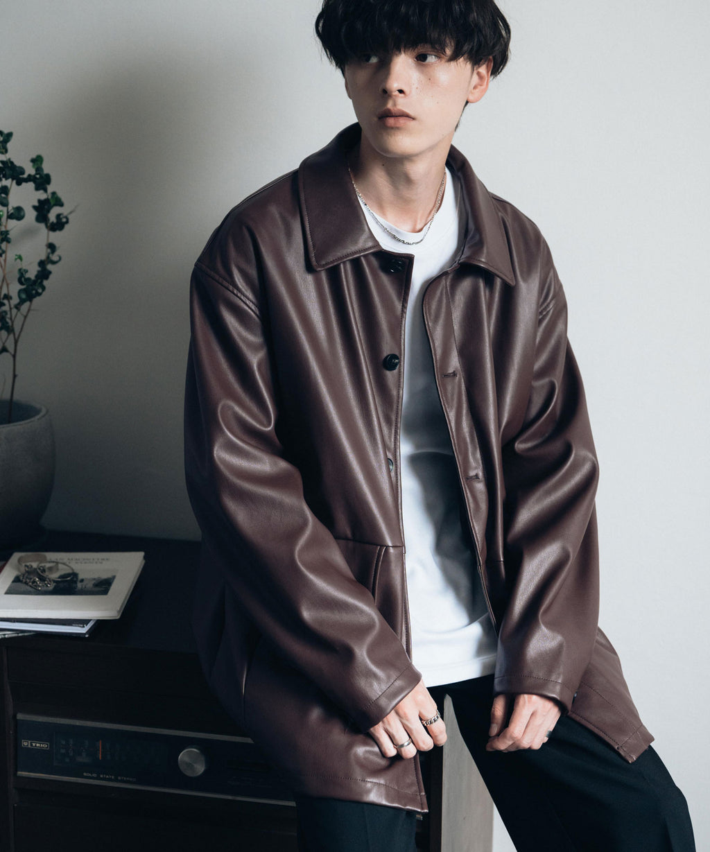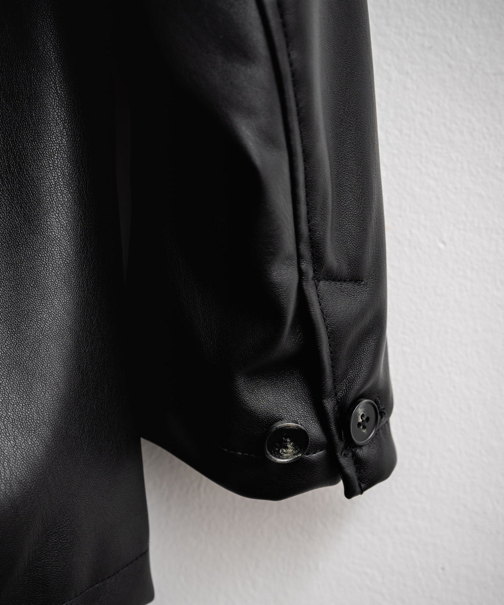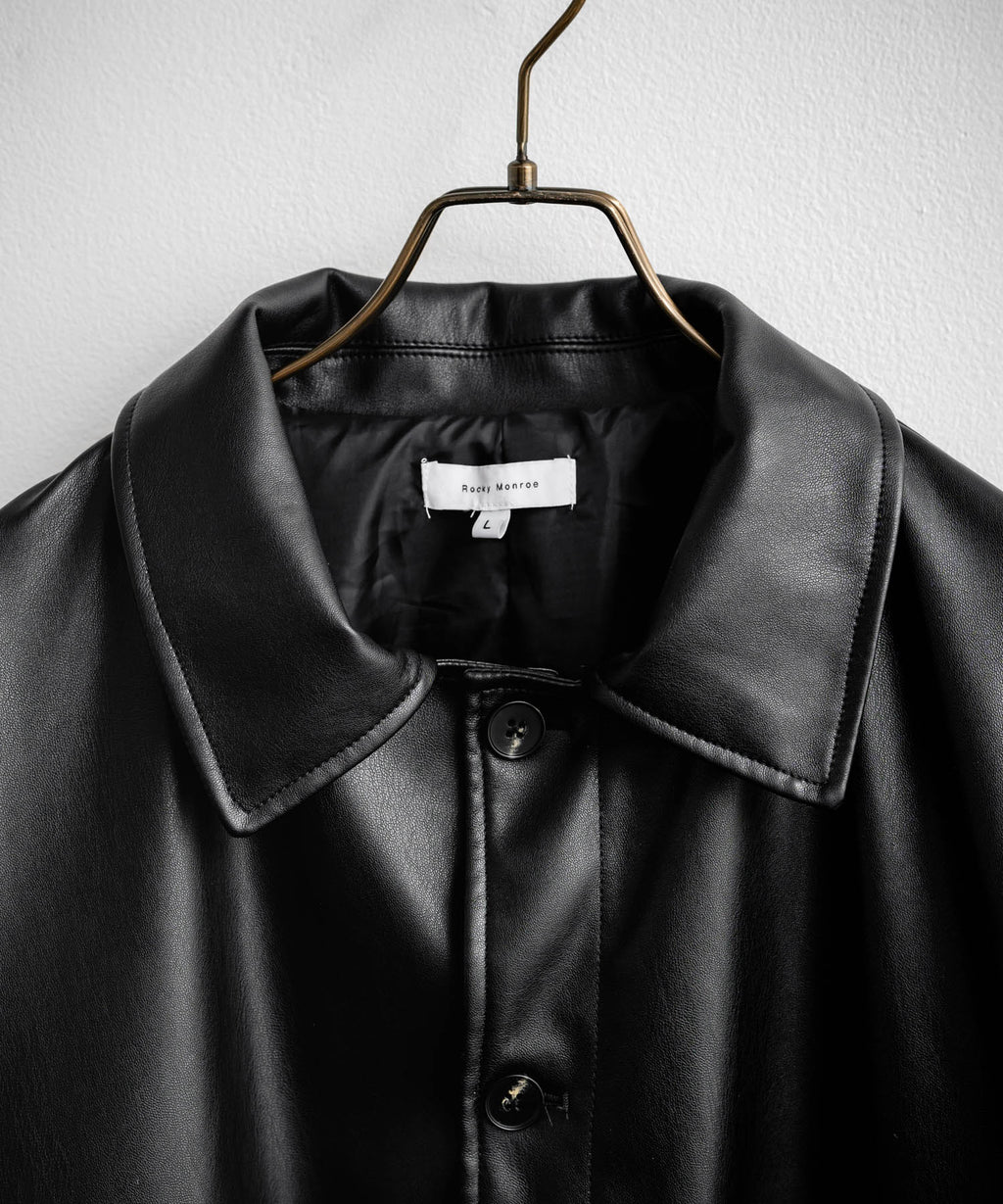 ロッキーモンロー Rocky Monroe カーコート ミドル丈 アウター メンズ レディース レザージャケット ライダース 革ジャン 合成皮革 PU ヴィーガンレザー マット オーバーサイズ 13763