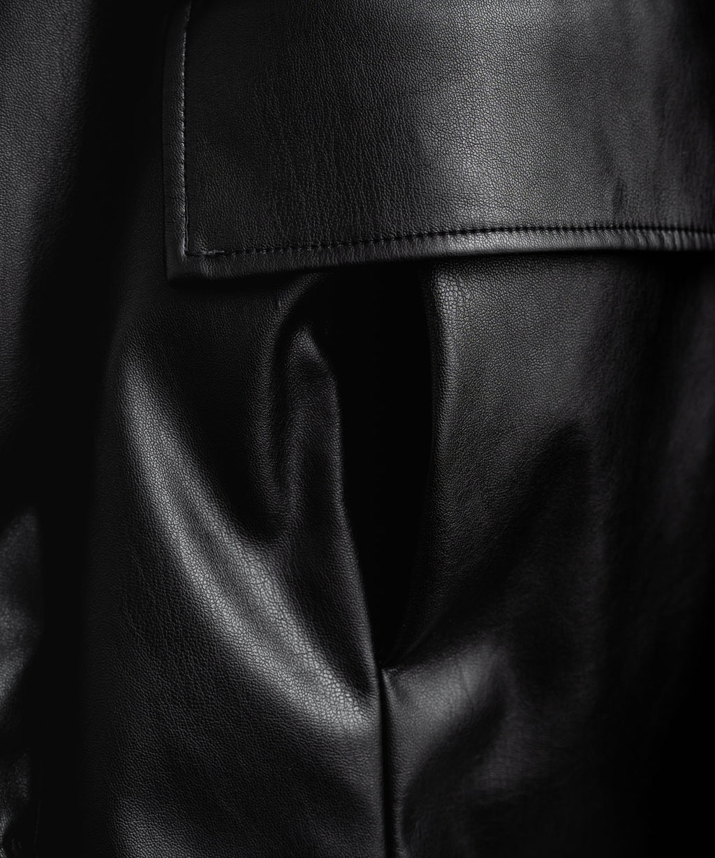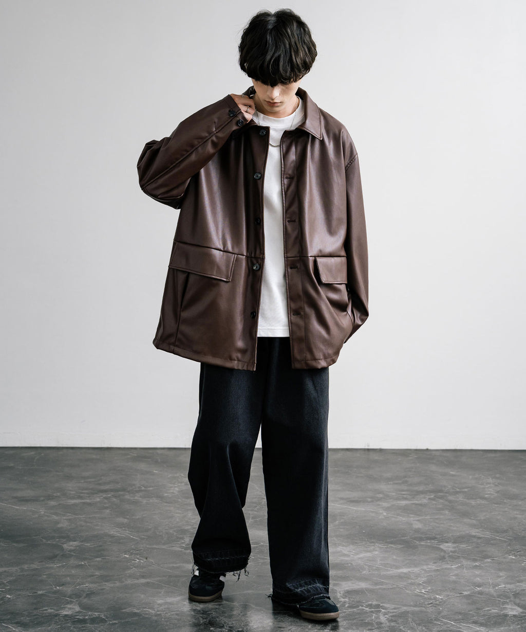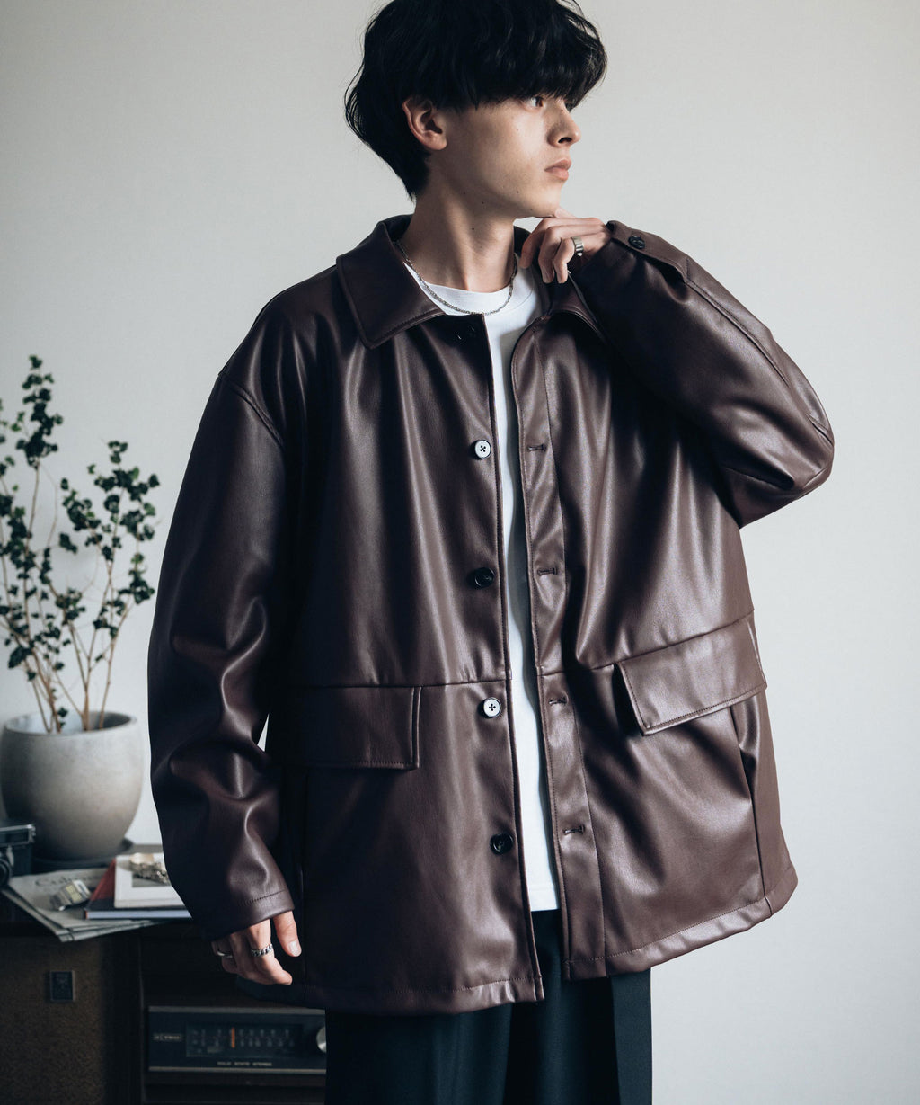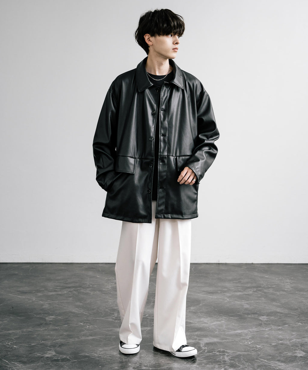 ロッキーモンロー Rocky Monroe カーコート ミドル丈 アウター メンズ レディース レザージャケット ライダース 革ジャン 合成皮革 PU ヴィーガンレザー マット オーバーサイズ 13763