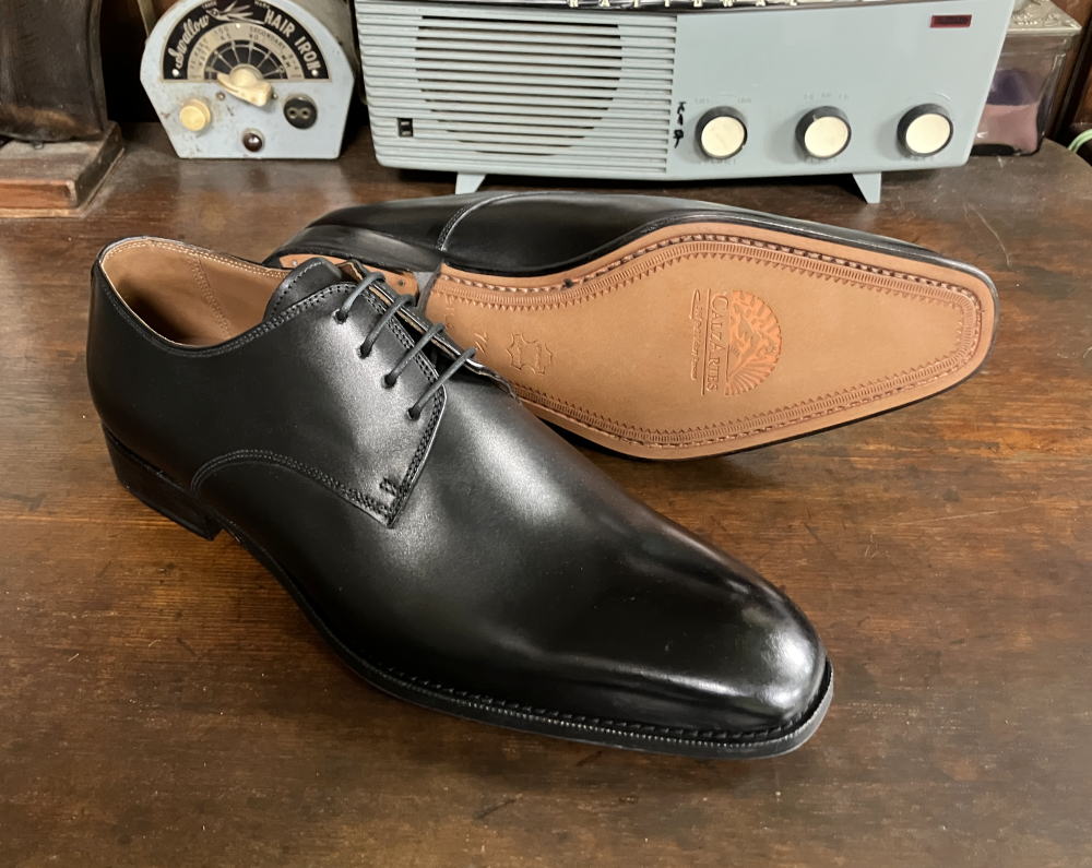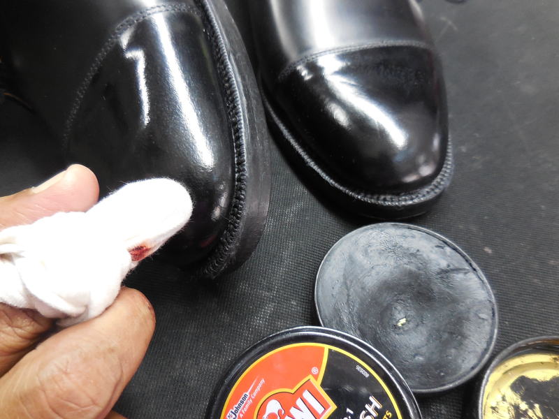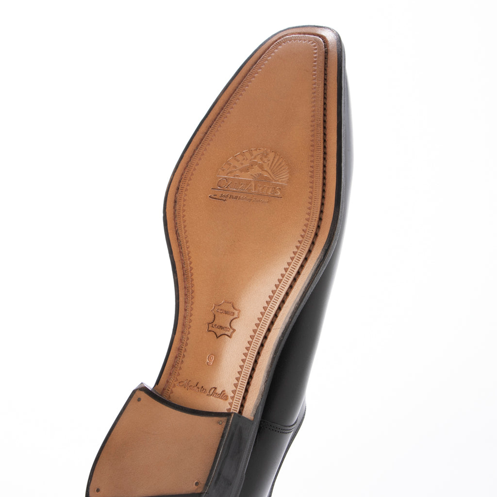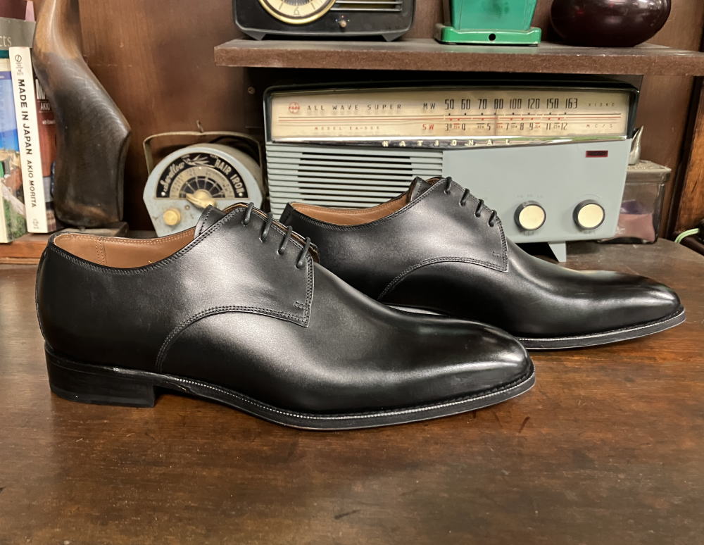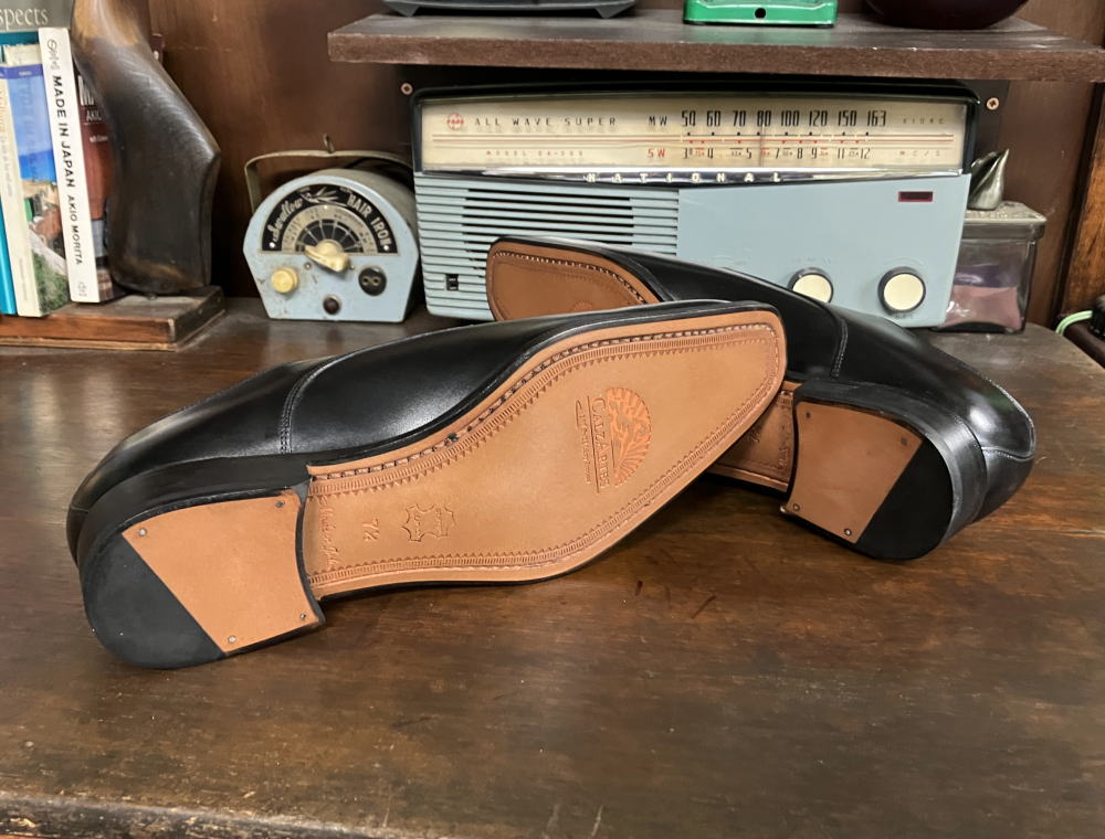 イタリーKENDA社製の特注インクで靴全体にアンティーク加工を施し、さらにつま先と踵部分にも手作業によるハンドポリッシュで手間と時間をかけて光沢仕上げが施されています。