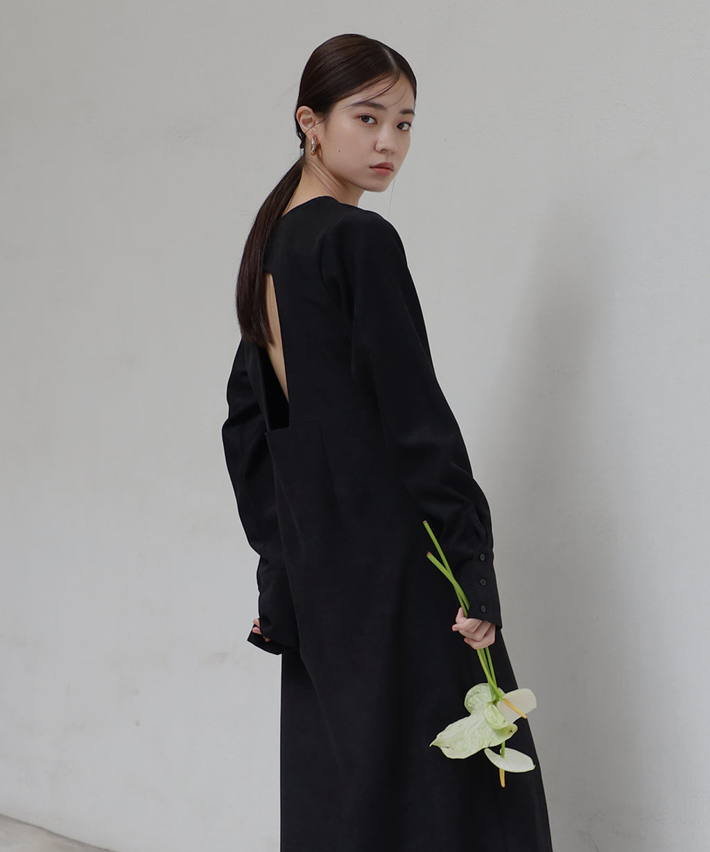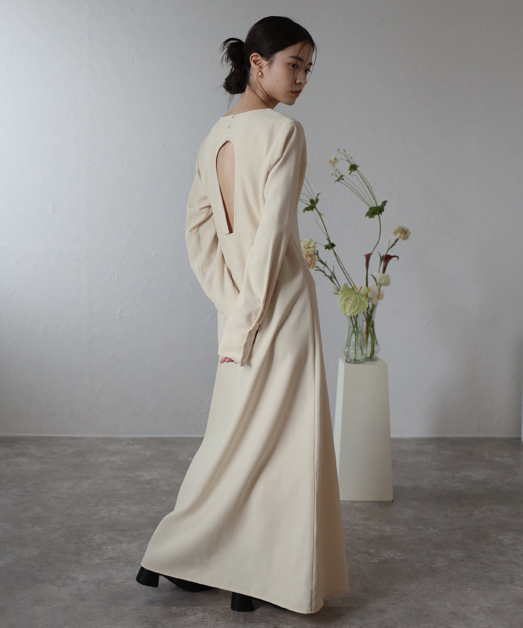 バックオープンデザインがエレガントな印象を添え、大人の抜け感を演出します。