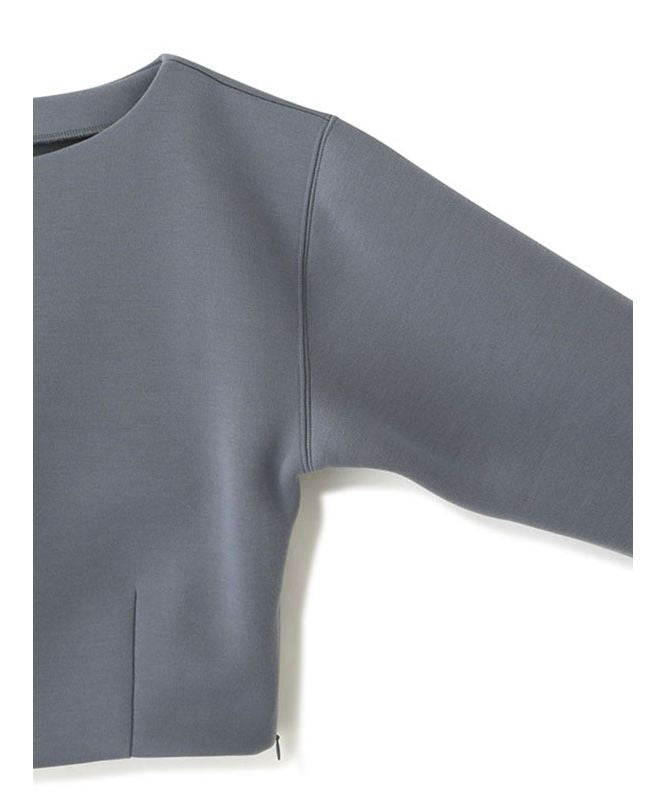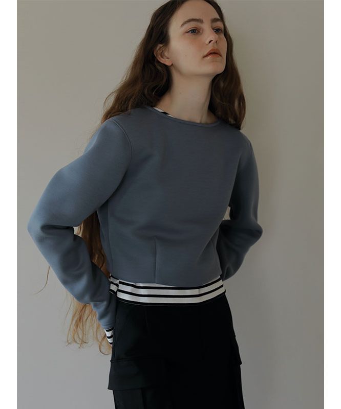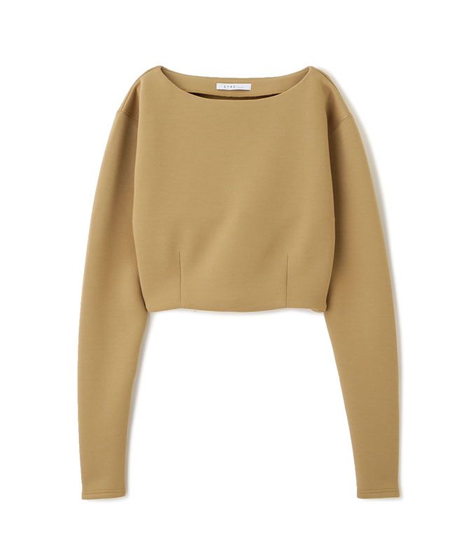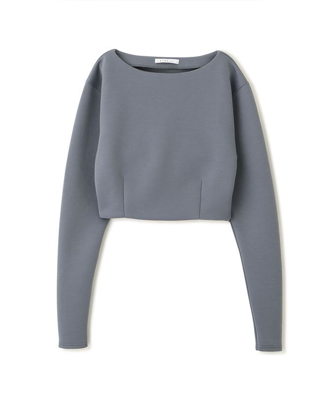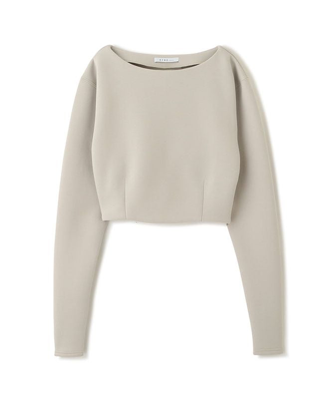 ポリエステル糸を柔らかく編み上げスポンジのような弾力と軽さを出した、ダンボールニット素材のショートトップス。