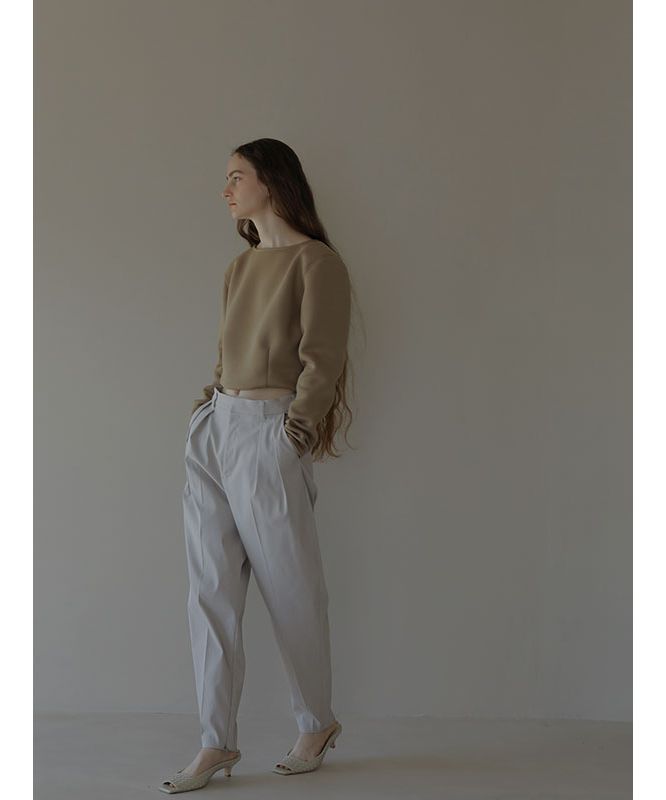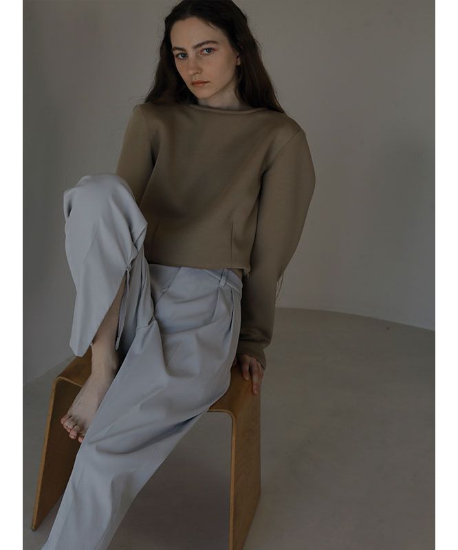 ソフトでストレッチ性が高く、スウェット生地のような着心地の良さがありながら、ほんのり光沢もある為より上品な印象で着こなせます。
