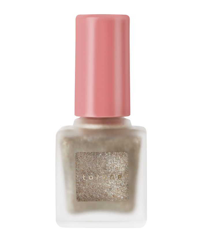 口元にツヤと輝きを宿すシャイニーピンクのリップとホリデーシーズンの輝く街を想起させるローズピンク&ゴールドベージュのアイシャドウ、大人な印象のライトゴールドのネイルポリッシュでこころ躍る景色をまとうメイクに。
