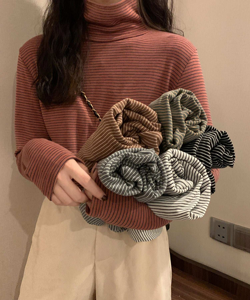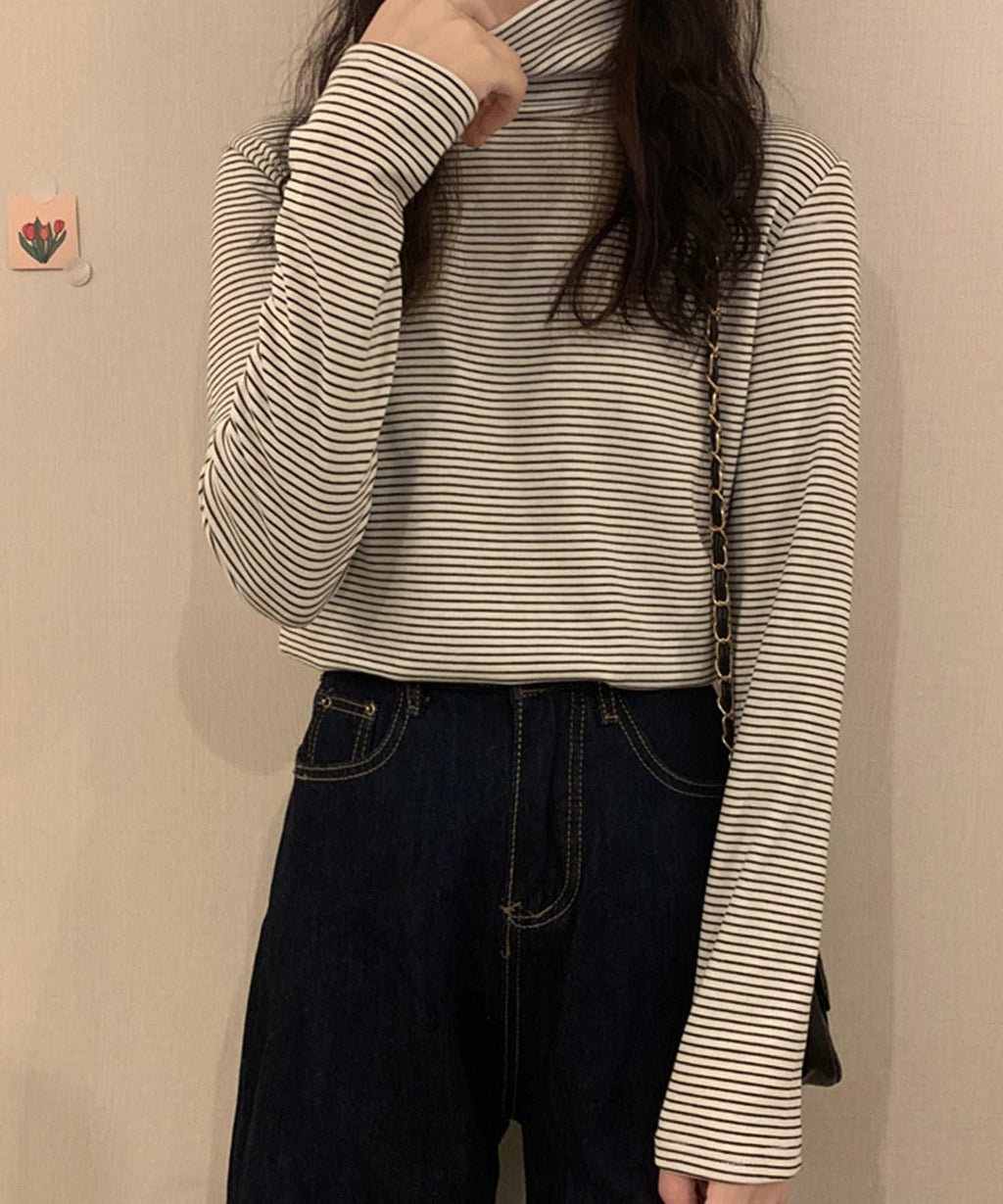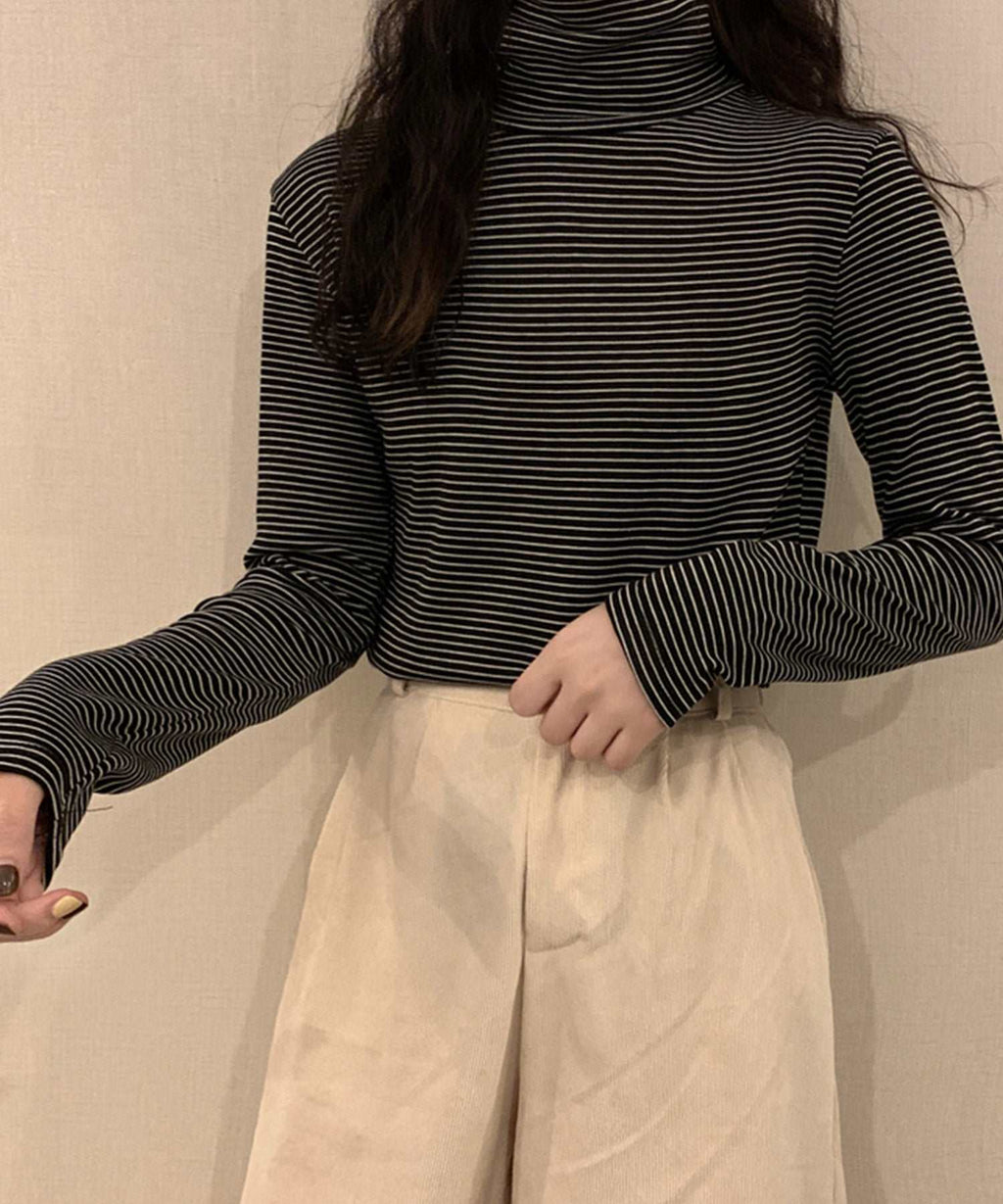 ヴィータフェリーチェ VitaFelice 裏起毛ハイネックボーダーカットソー