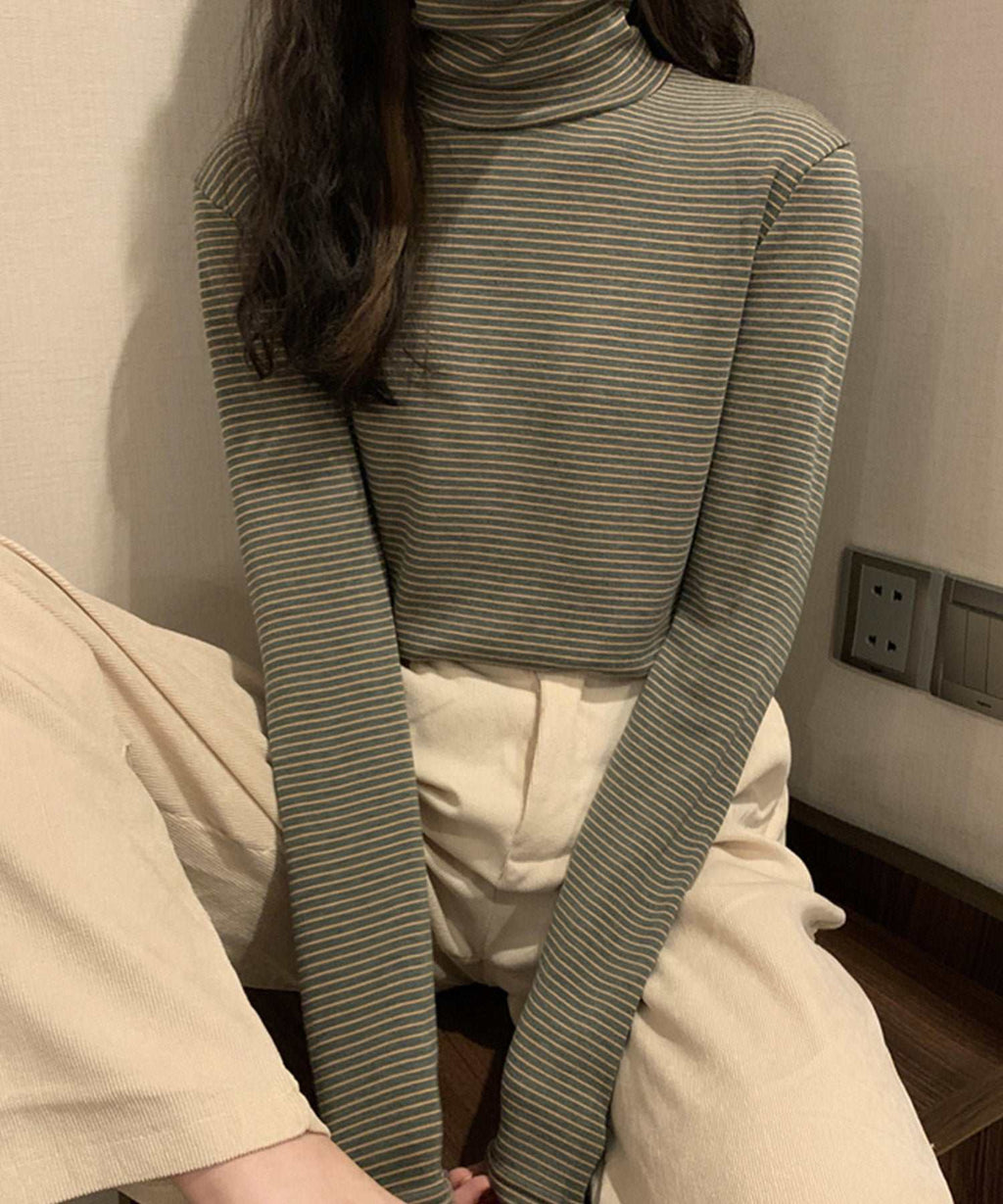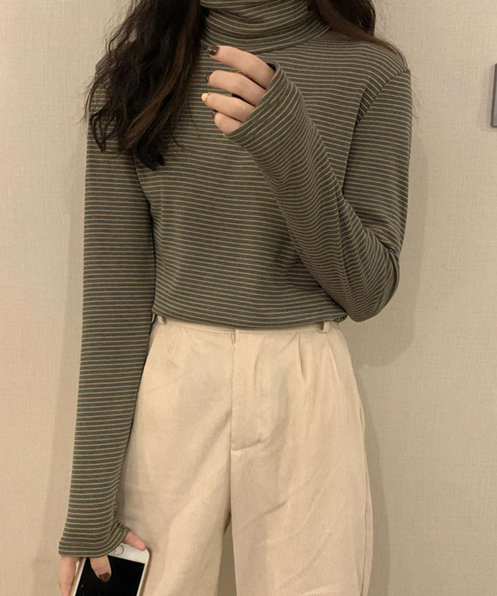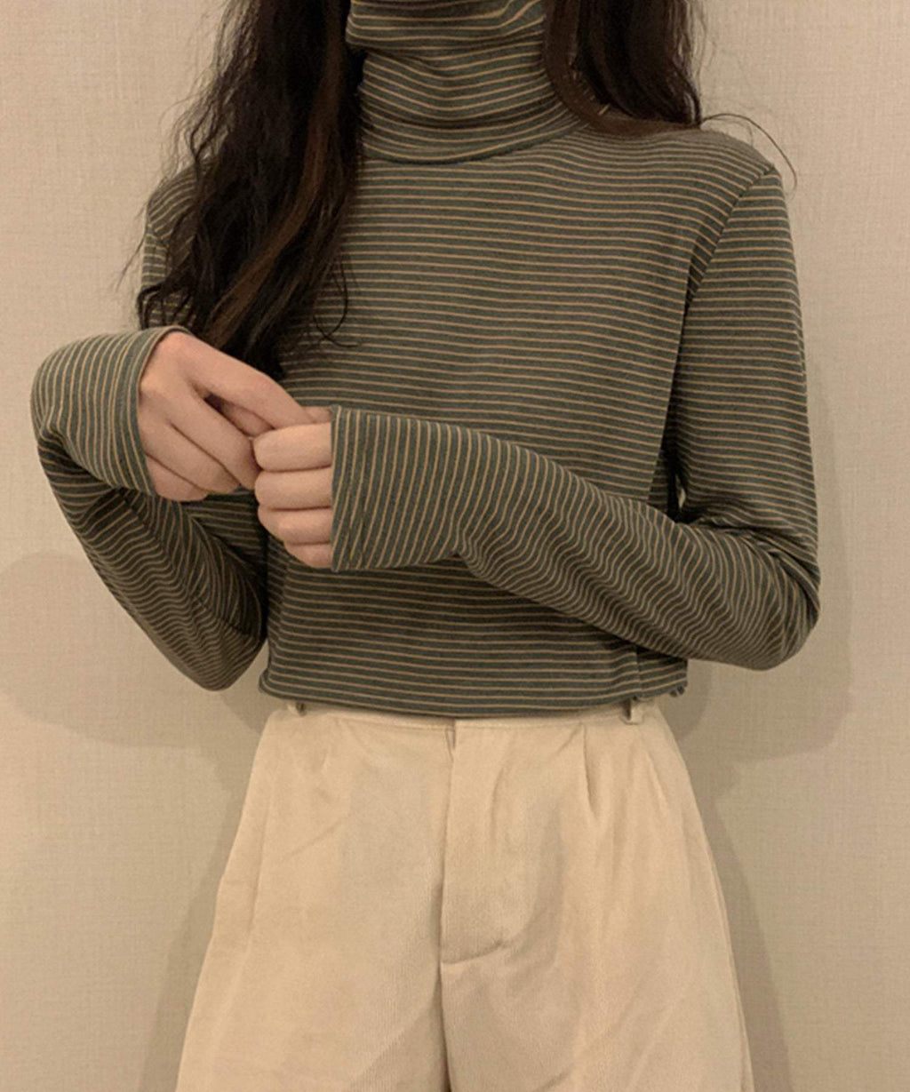 ヴィータフェリーチェ VitaFelice 裏起毛ハイネックボーダーカットソー