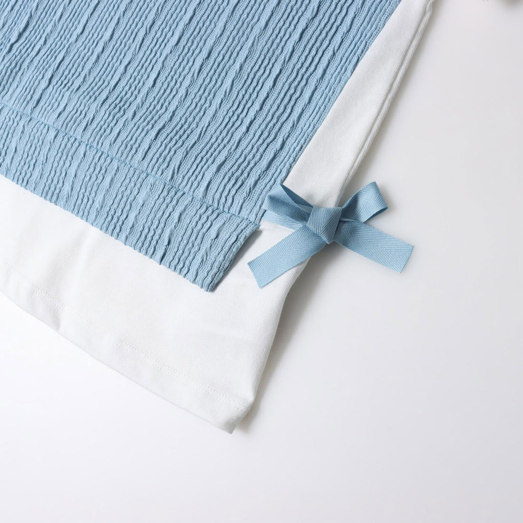 両脇のリボンがさりげないアクセントになっており、安全面からリボンはほどけないように作り付けされています。