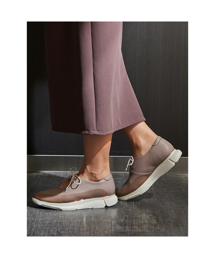 素足のような軽さと、長時間の歩行でも足への負担が少ないクッション性のよさが特長の、PEDALAシリーズ。アシックス独自の機能を搭載し、環境に配慮したカジュアルシューズです。エネルギー消費を抑えながら長く走り続ける、ランニングシューズの「エナジーセービング」機能を採用。つま先部分をカーブ形状にすることで、歩行時に足首の屈曲を減らし、足首関節のエネルギー消費を抑えて歩行効率を高めています。ソールには「ガイダンスライン」構造を採用。ソールの中央に縦に配置した溝で重心移動が安定し、スムーズな歩行をサポートします。ミッドソールには軽く耐久性のある、植物由来のセルロースナノファイバーを使用した環境配慮型素材であるFF BLASTを採用し、かかと部に衝撃緩衝機能GELを搭載。アウターソールには耐摩耗性に優れたAHARラバーを採用しています。アッパーは、基材にリサイクル素材を用いた人工皮革を使用。クッション性に優れたハーフカップ中敷を採用。甲部にシューレースをあしらった愛らしいデザインのシューズは、日常のさまざまなシーンで活躍するアイテム。2Eラウンドラストモデルです。