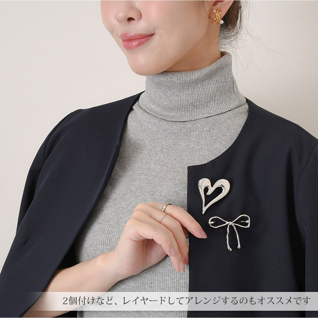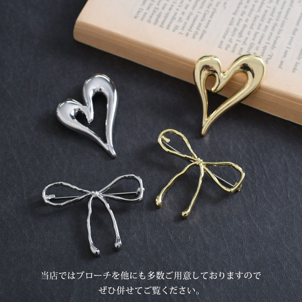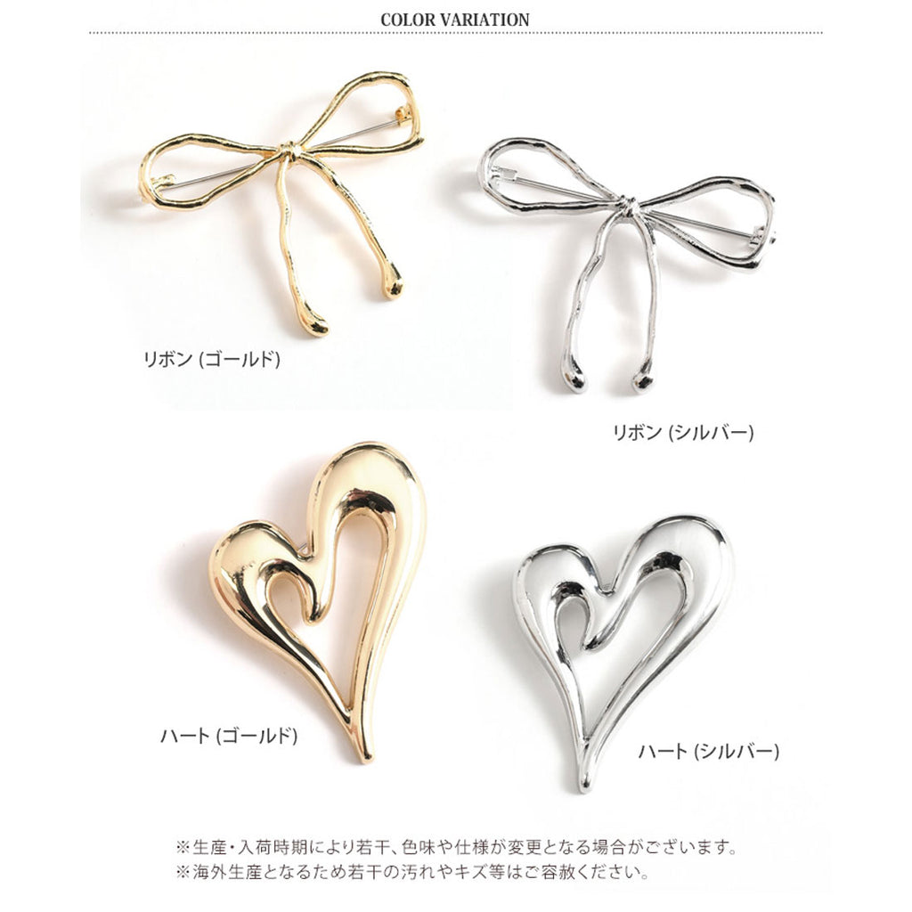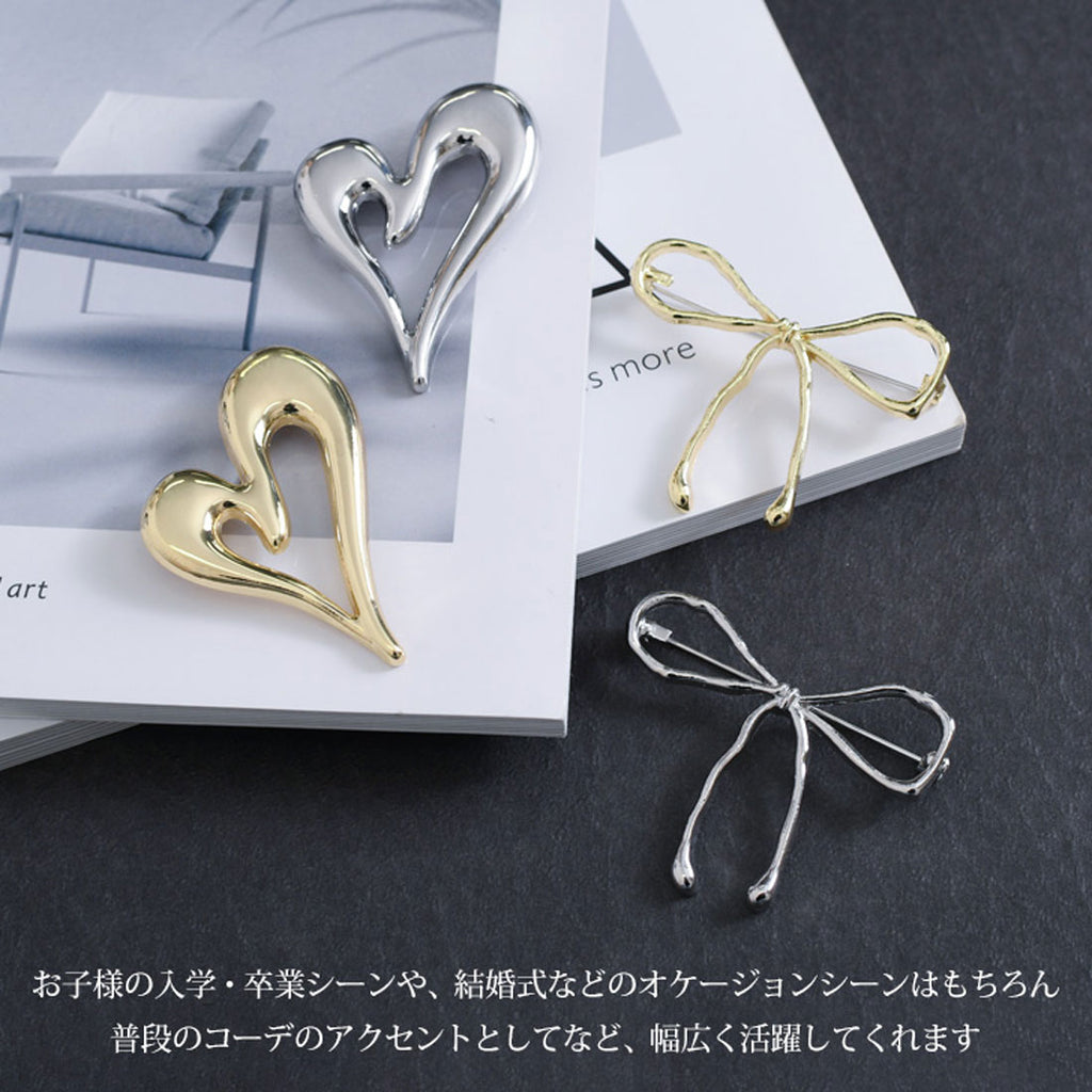 選べる2種類×2カラー変形ハートリボンピンブローチ レディース アクセサリー ジュエリー ブローチ ラペルピン コサージュ リボン ハート ゴールド シルバー 入学式 卒業式 入園式 卒園式 結婚式 おしゃれ