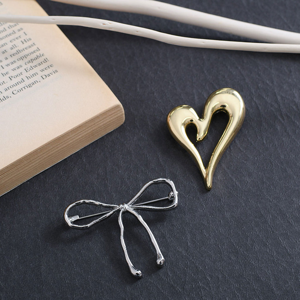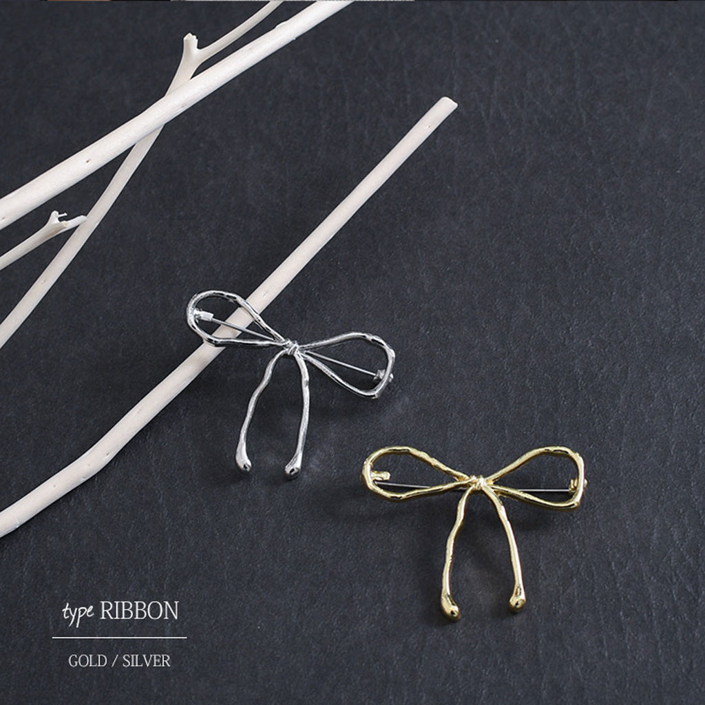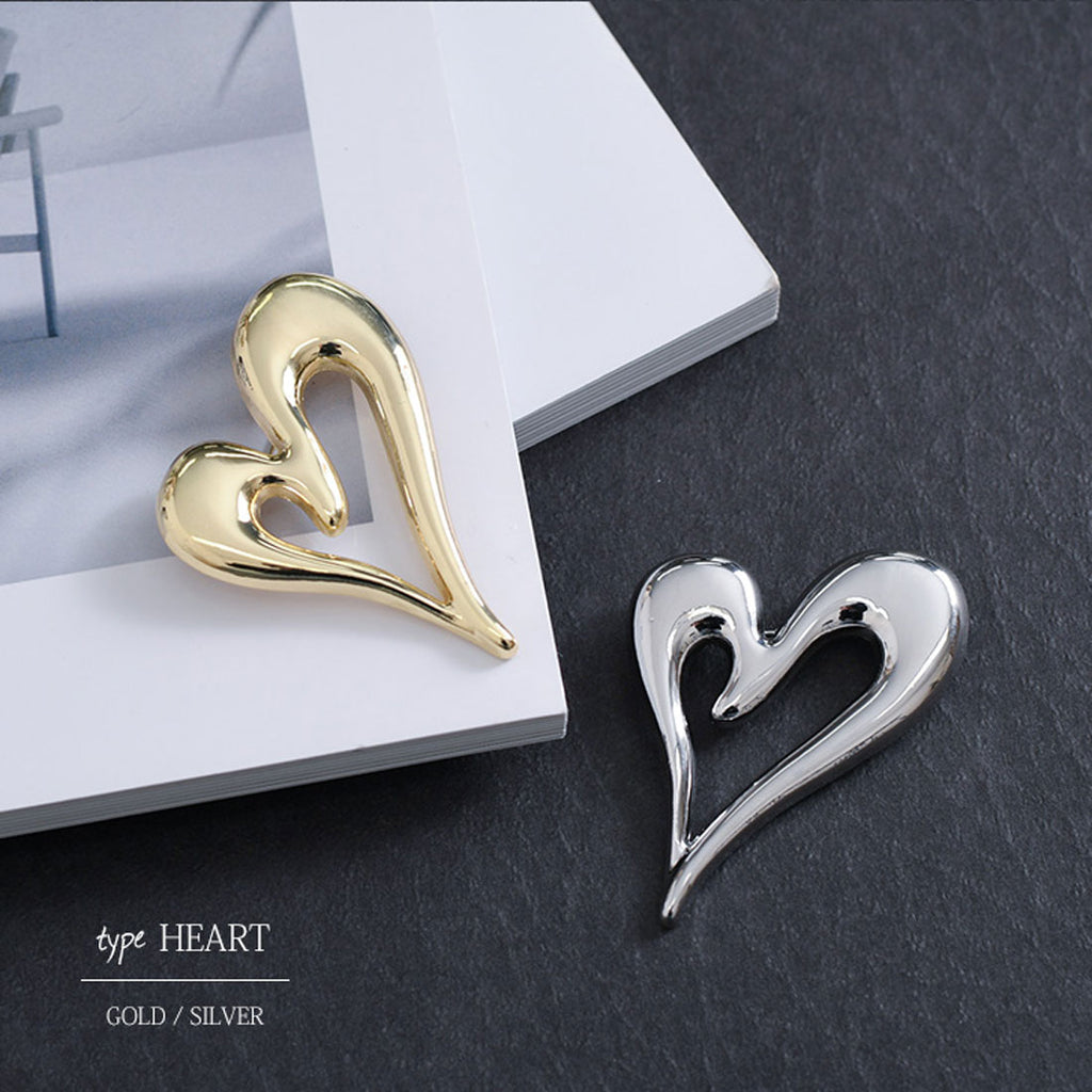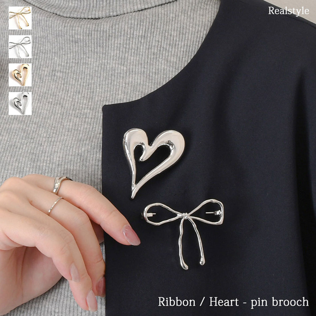 選べる2種類×2カラー変形ハートリボンピンブローチ レディース アクセサリー ジュエリー ブローチ ラペルピン コサージュ リボン ハート ゴールド シルバー 入学式 卒業式 入園式 卒園式 結婚式 おしゃれ
