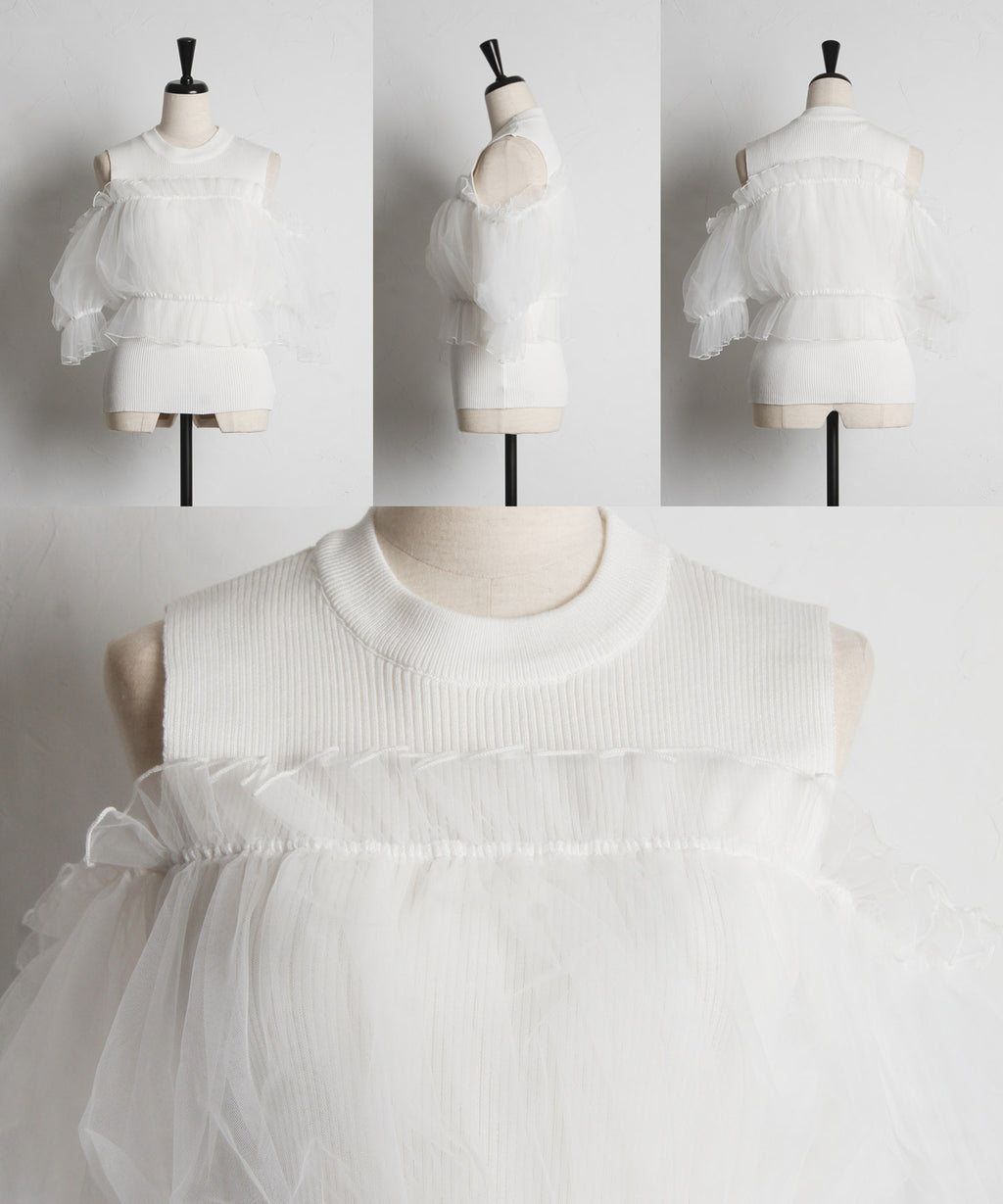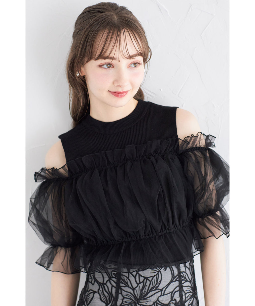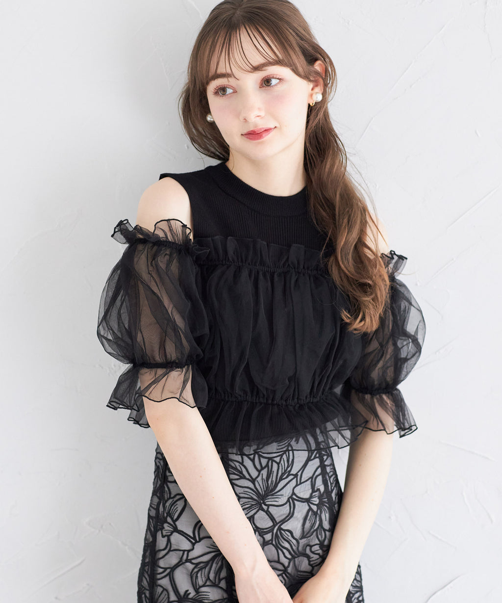 トッコクローゼット tocco closet チュールドッキングリブニットプルオーバー