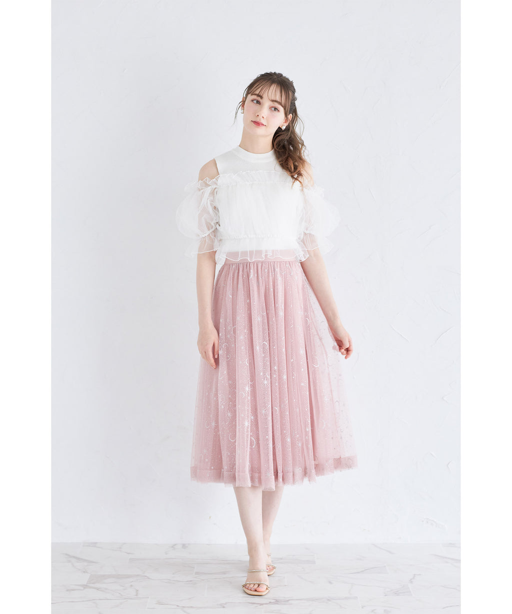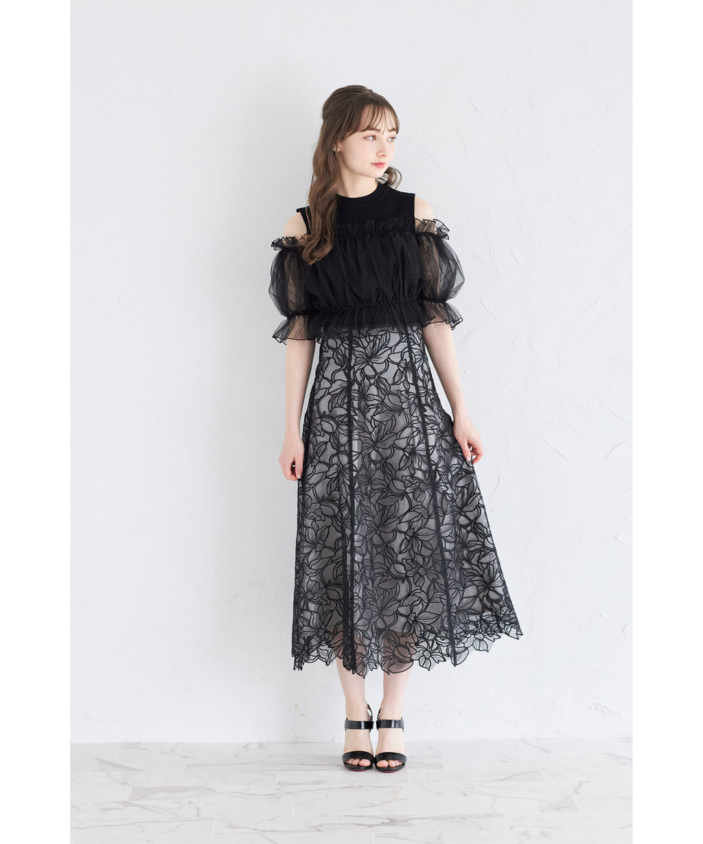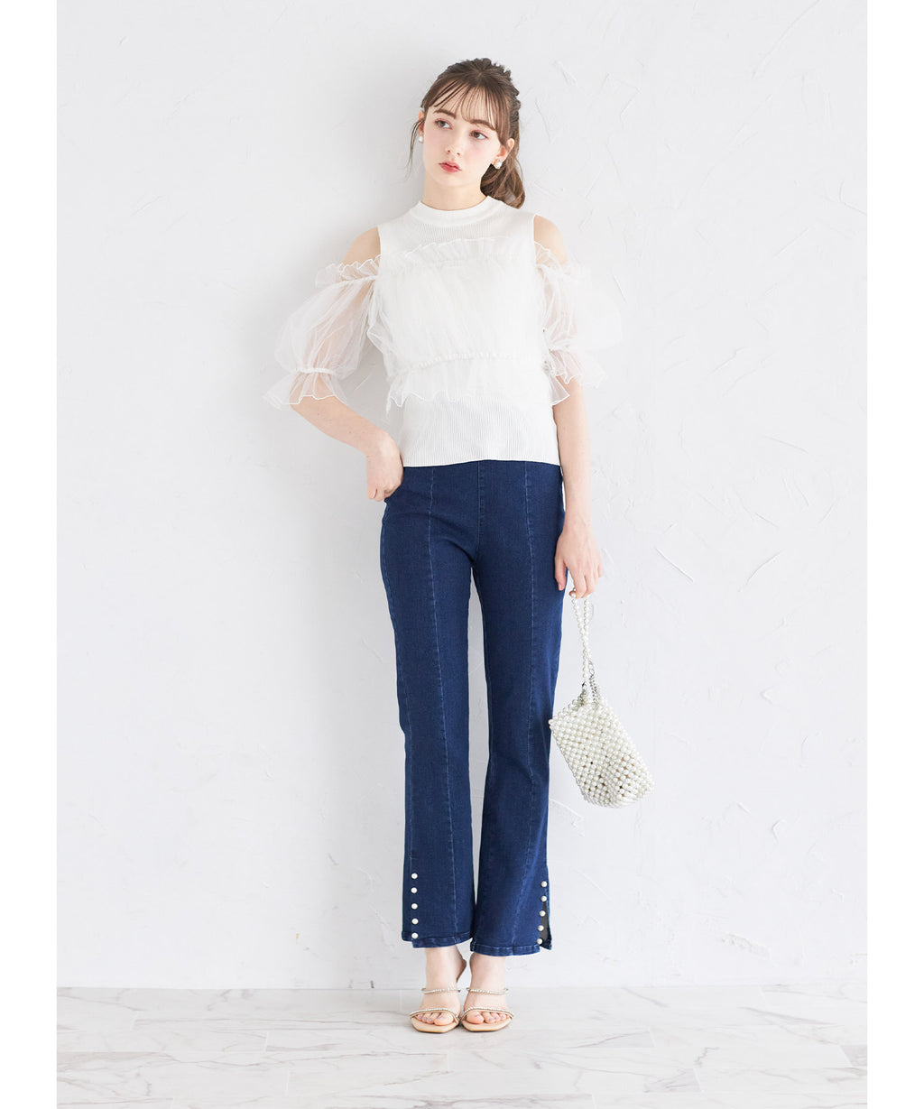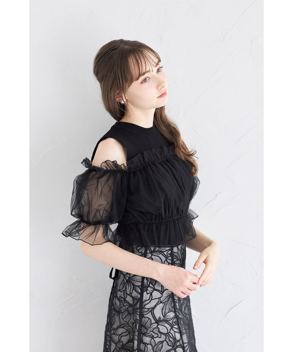 トッコクローゼット tocco closet チュールドッキングリブニットプルオーバー