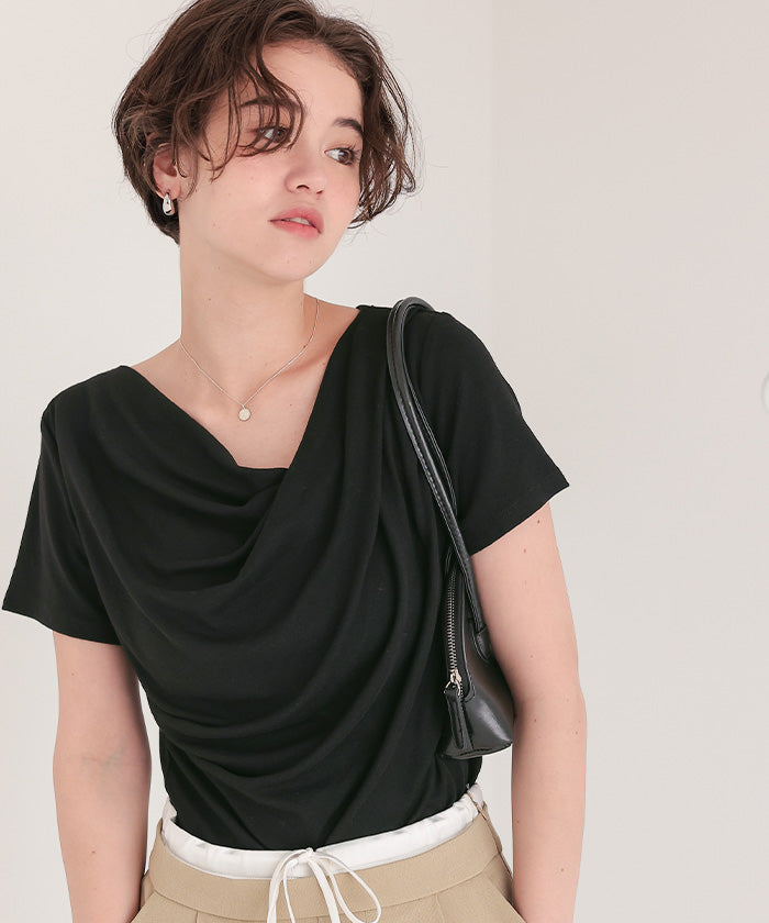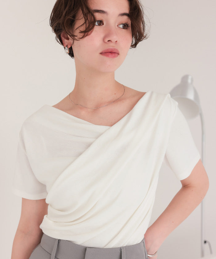 ・ドレープディテールでトレンド感抜群のオフショルダーTシャツ