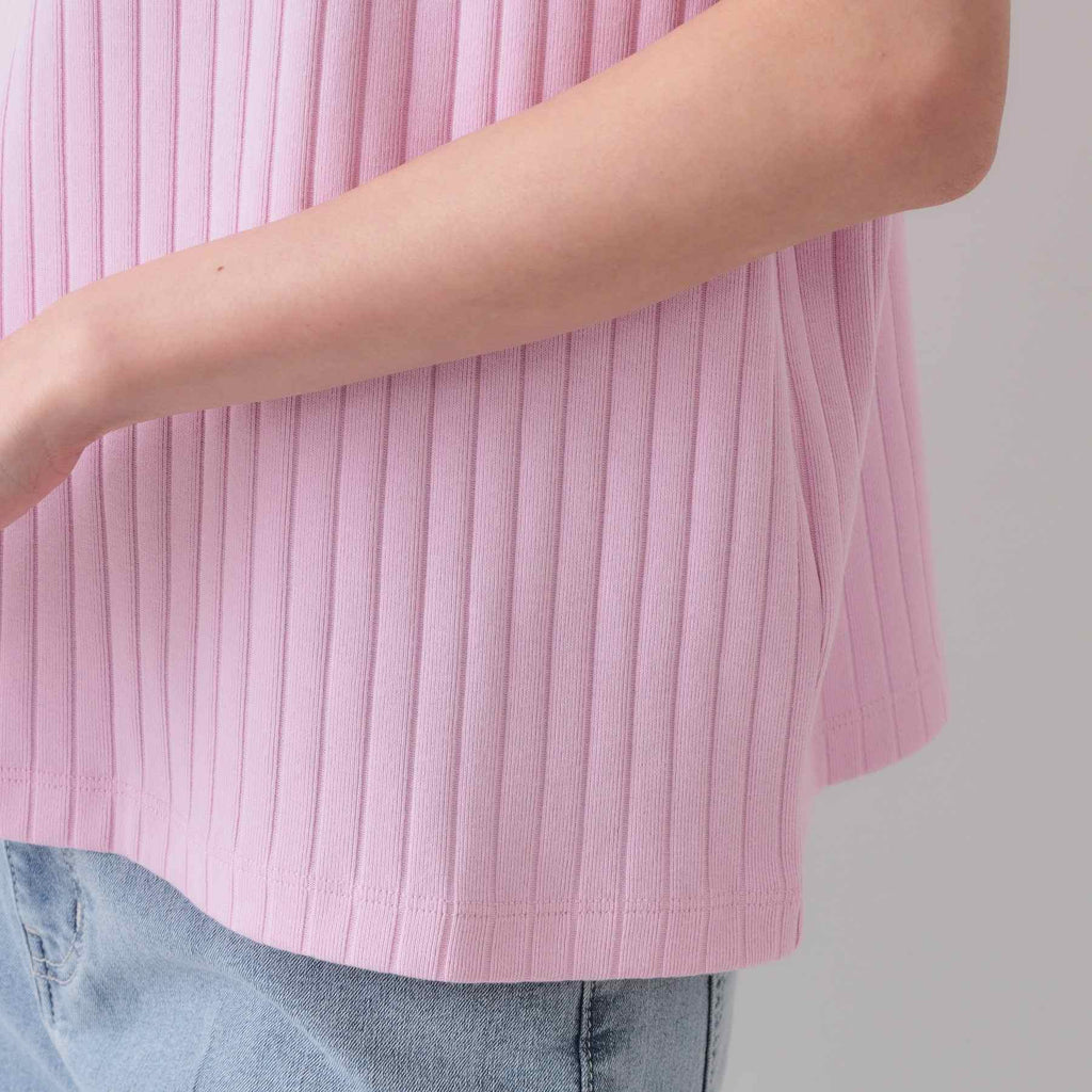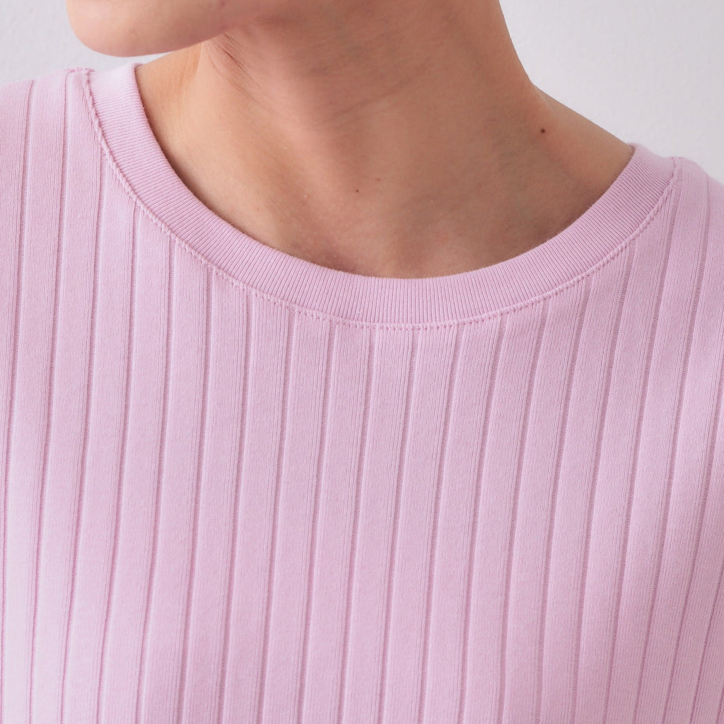 ・太めのリブ巾は、ボディに張り付かない着やすさがポイント。
