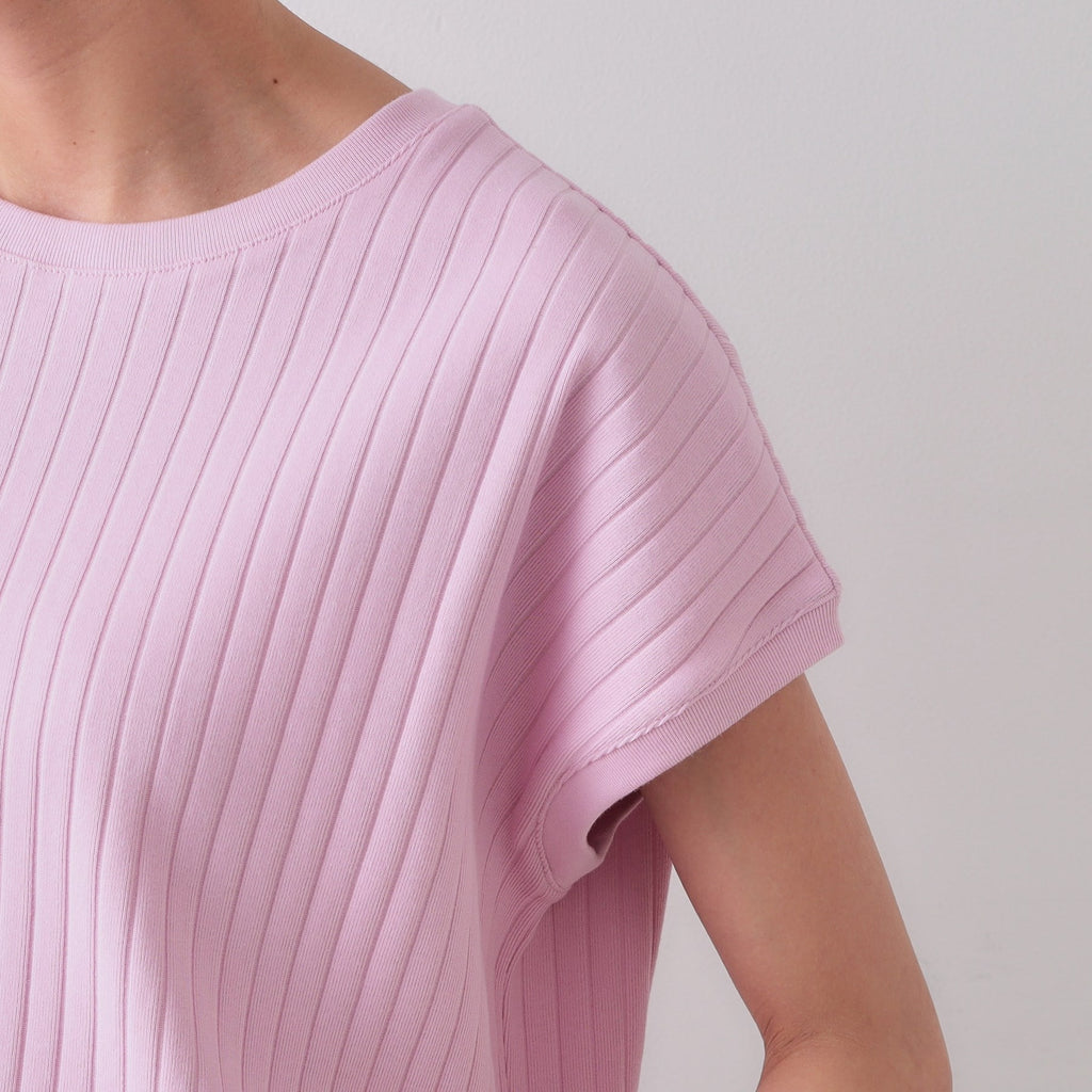 フレンチスリーブですっきり、ワイドリブTシャツ