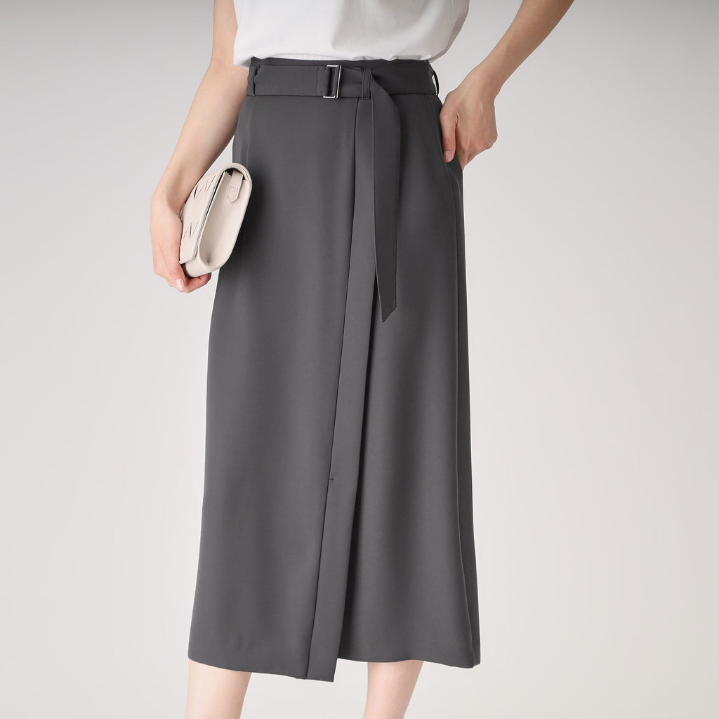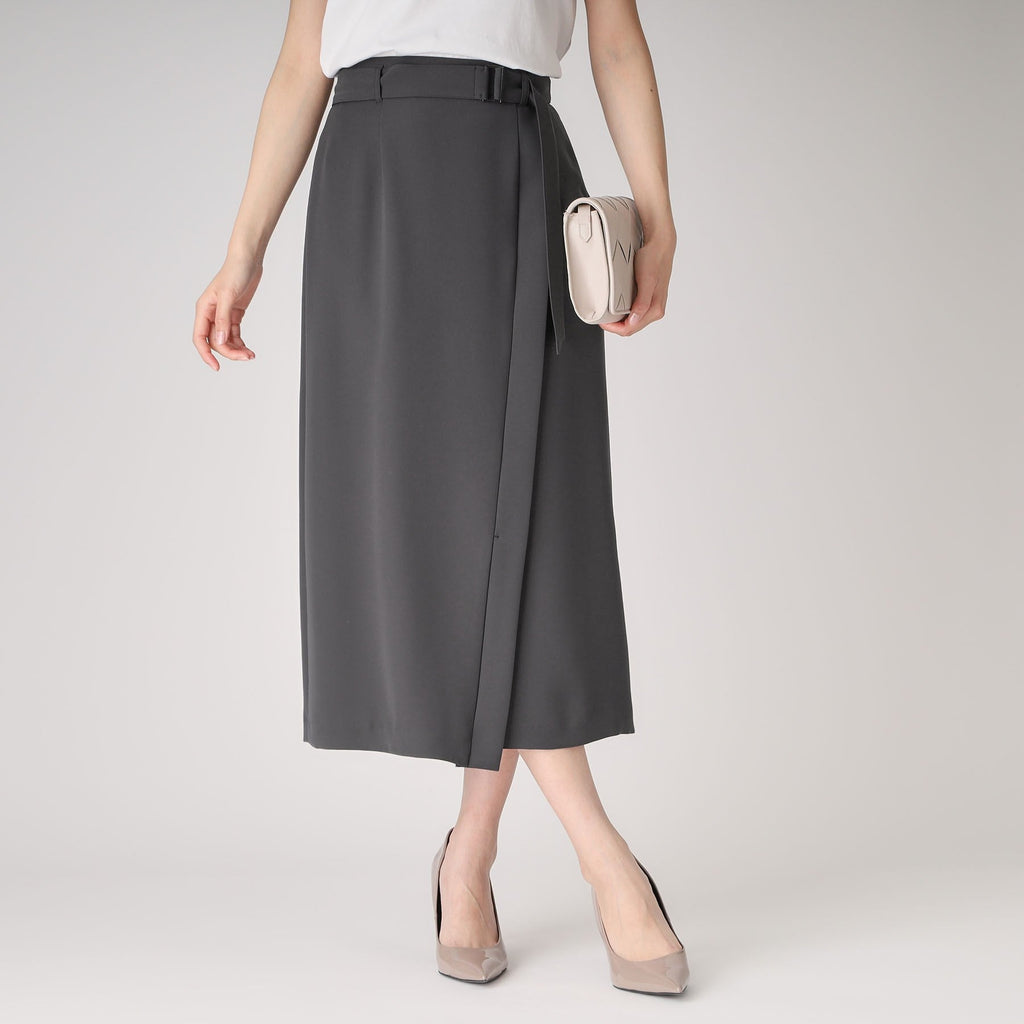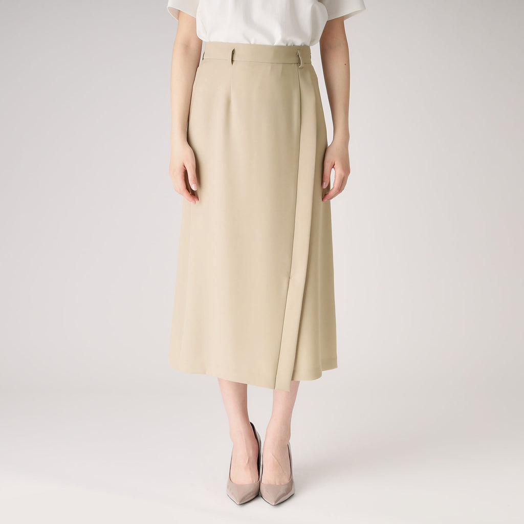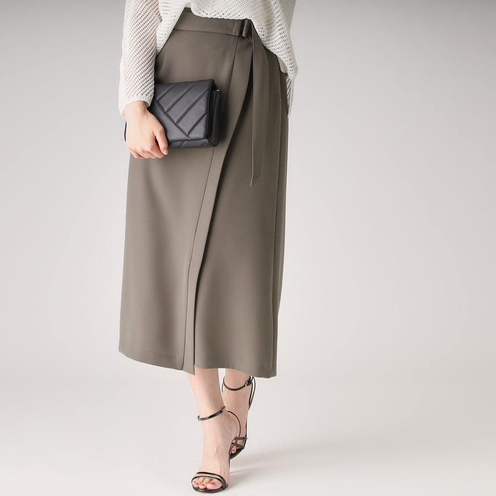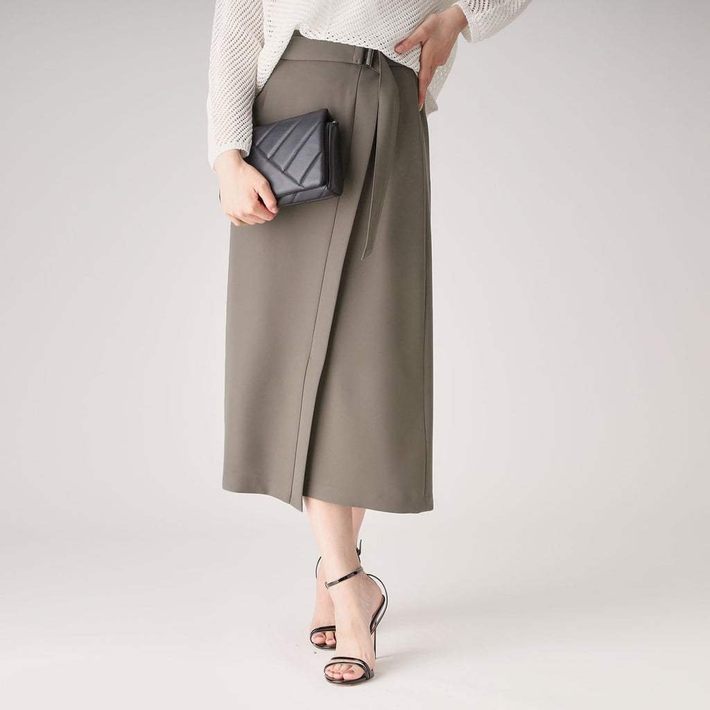 ラインシルエットのラップ風デザインスカート。