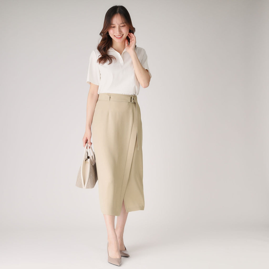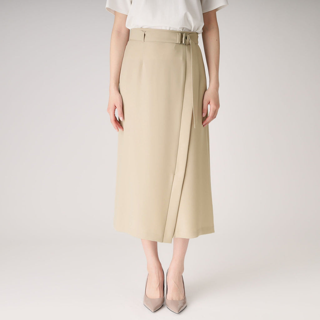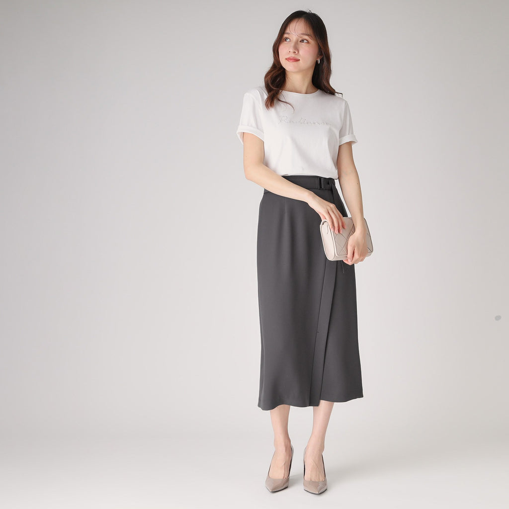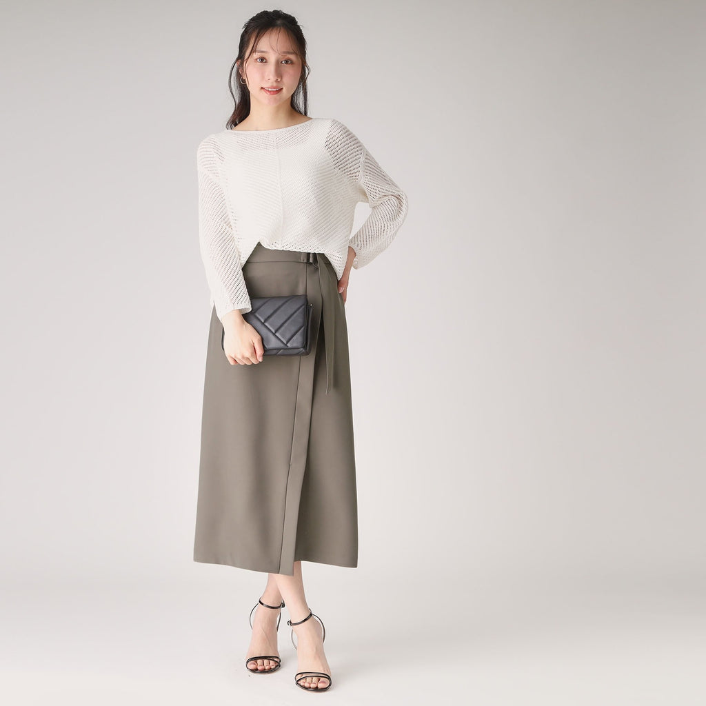 ラインシルエットのラップ風デザインスカート。