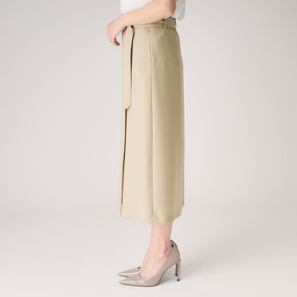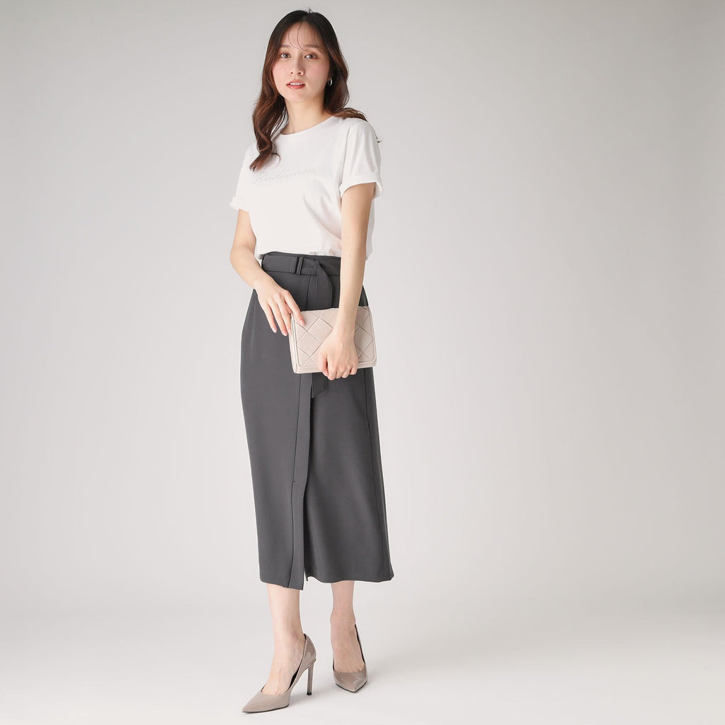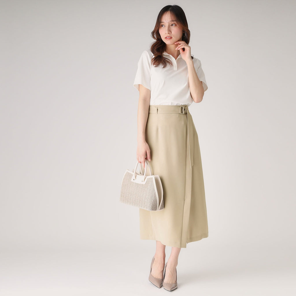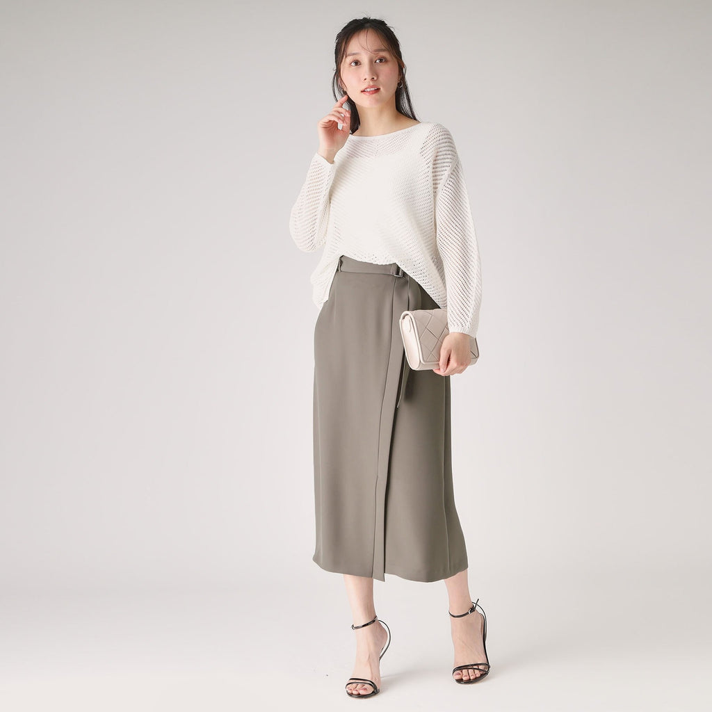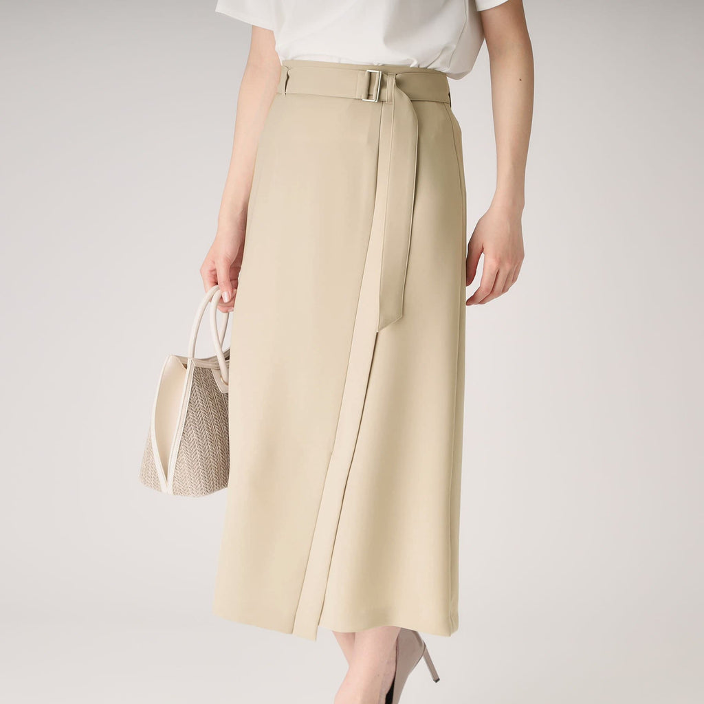 ラインシルエットのラップ風デザインスカート。