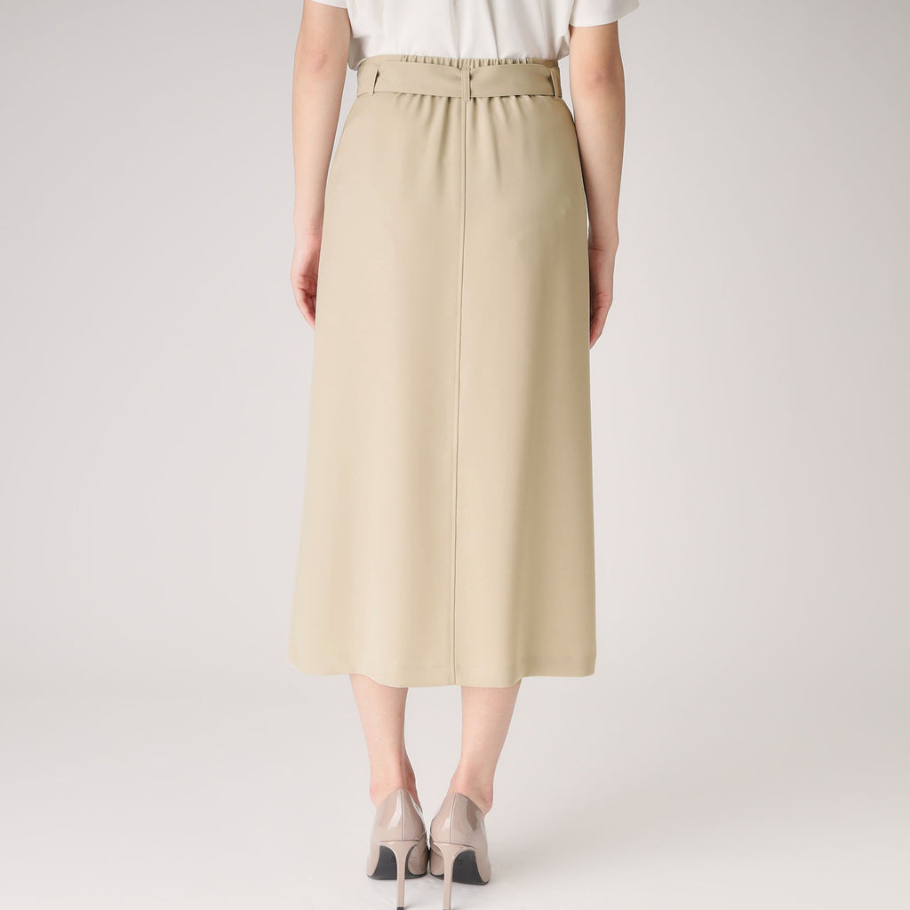 後ろウエストに平ゴム入りで快適なフィット感のスカートです。