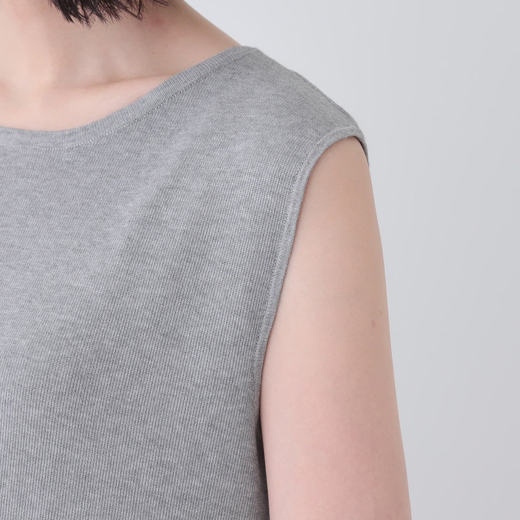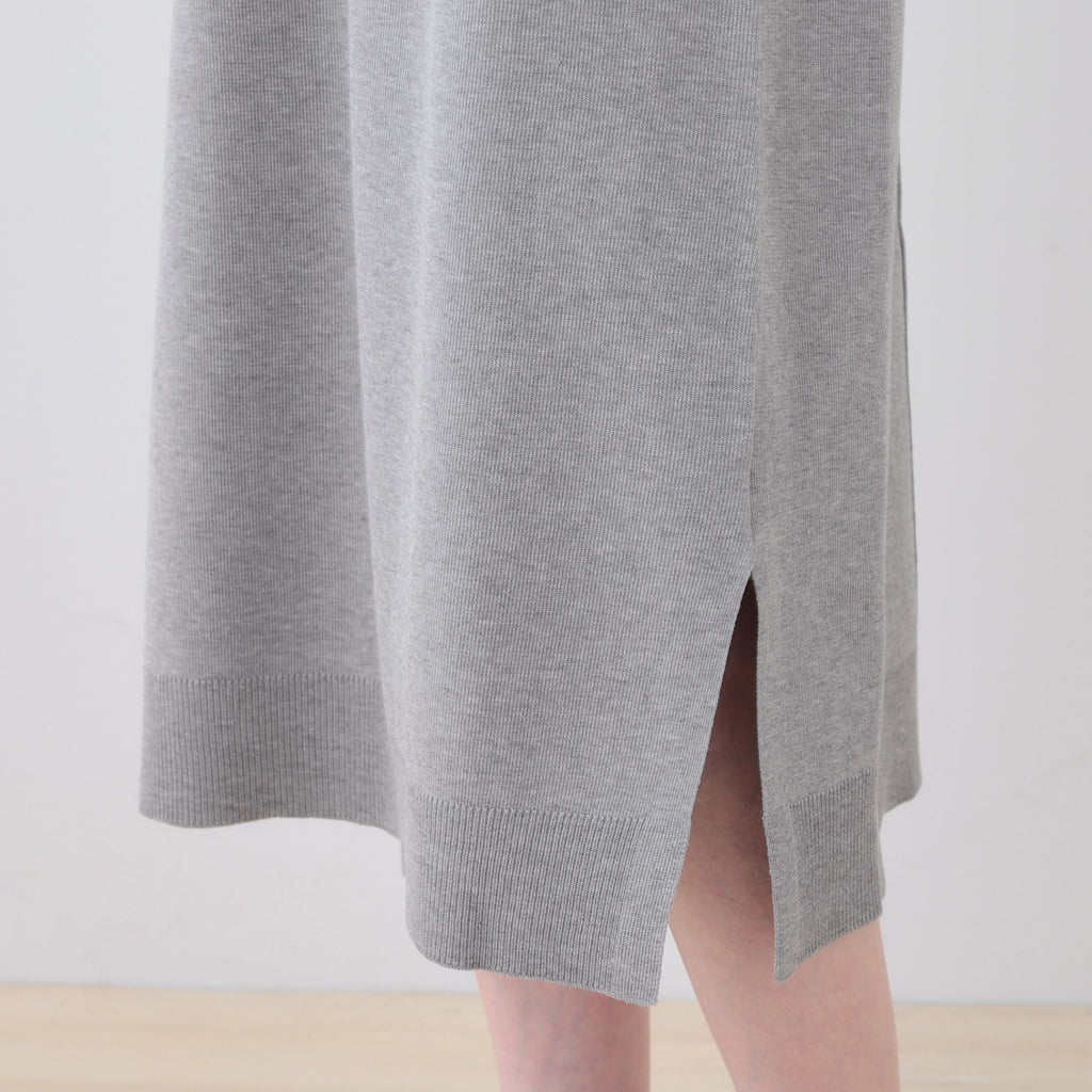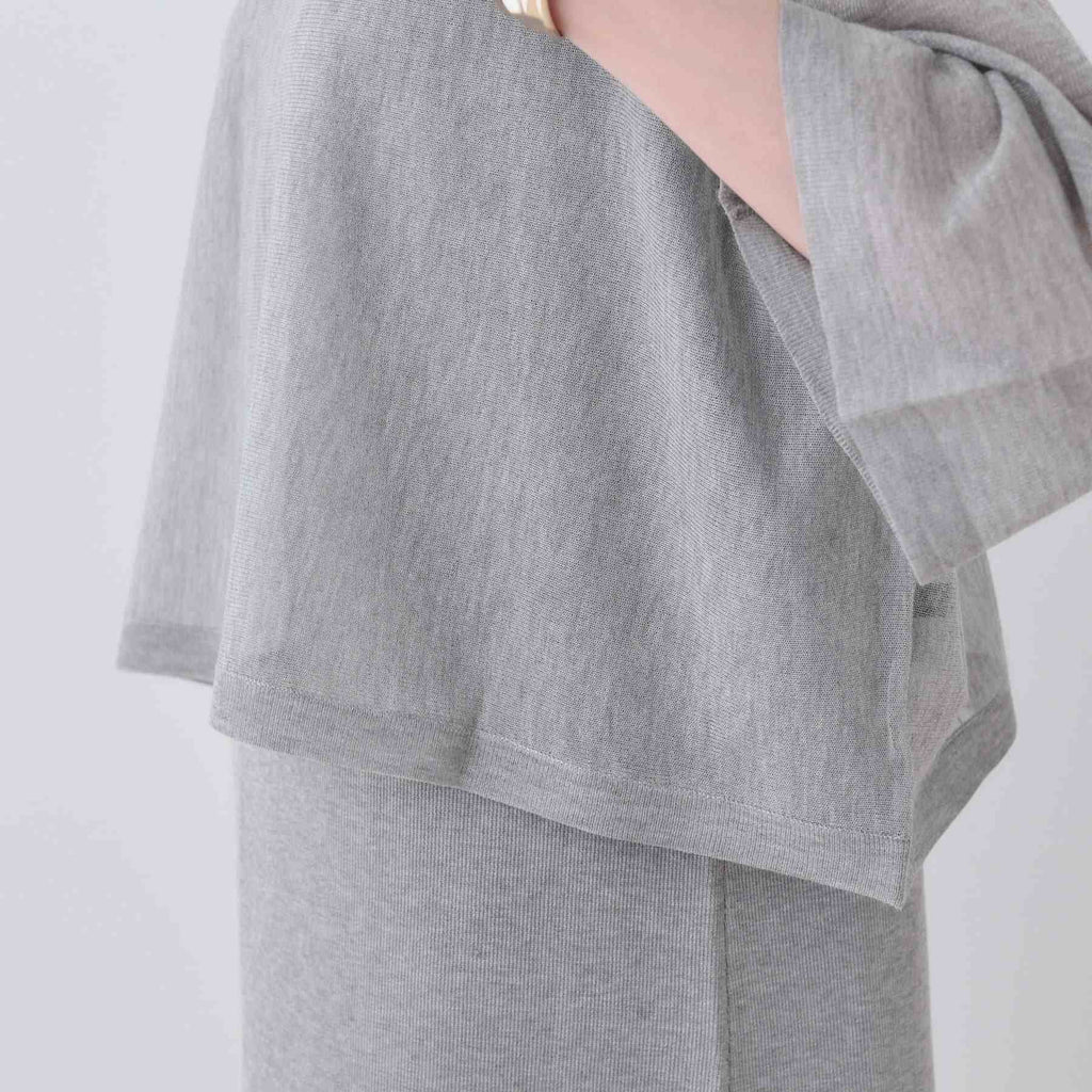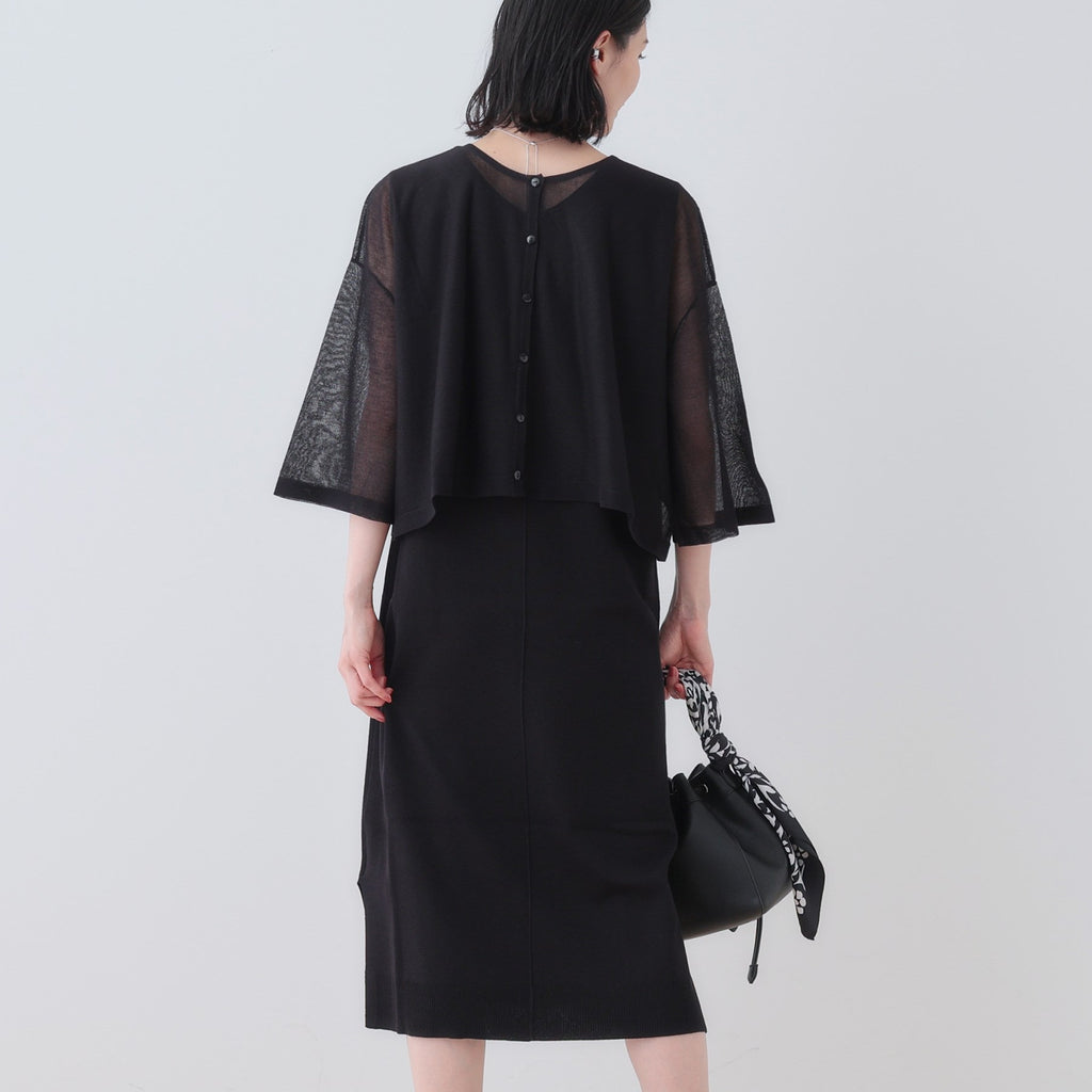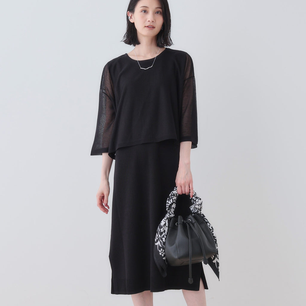 トップスはシアー感のある編み地で、ワンピースはトップスと同素材の透けない編み地を使用しています。