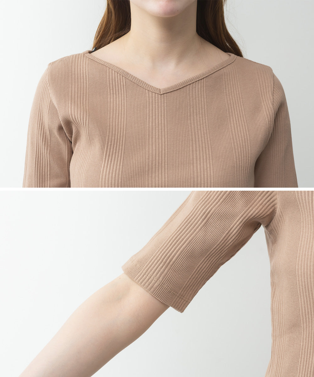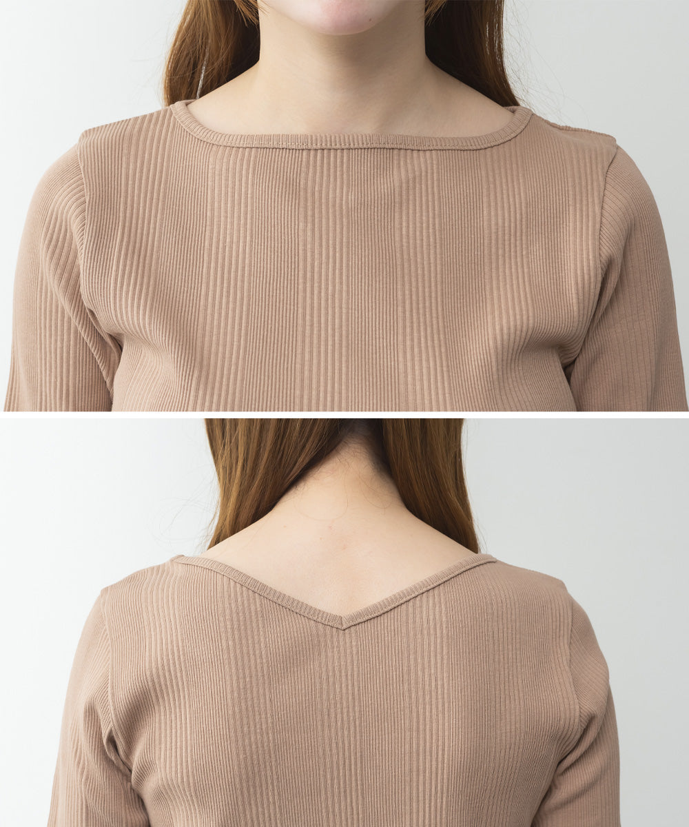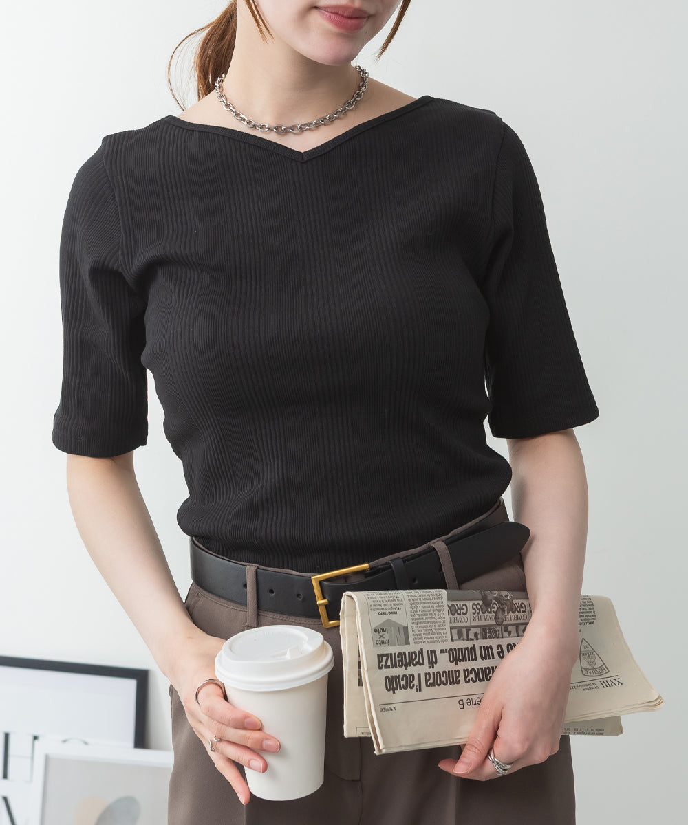 着まわし大活躍!コットン素材のランダムリブボートネック&VネックTシャツ