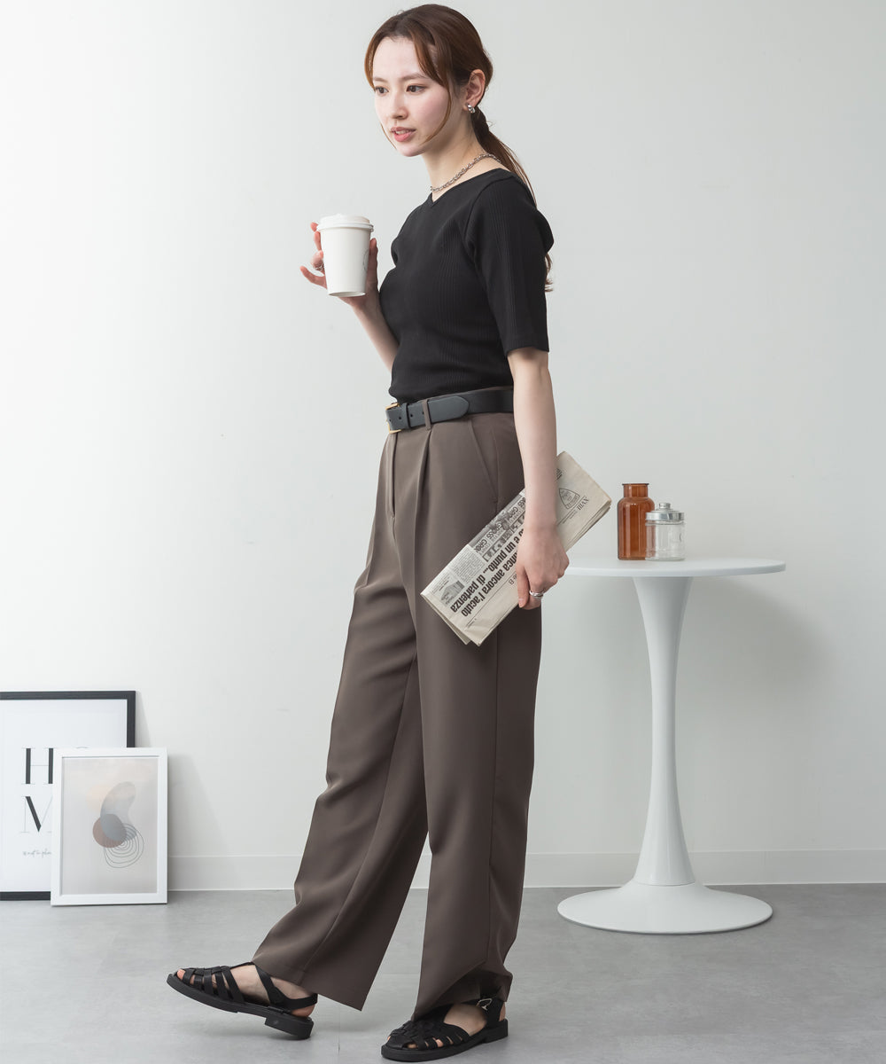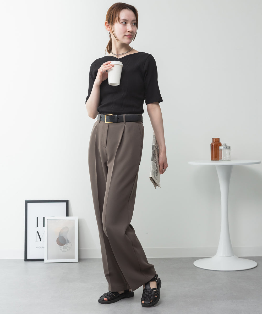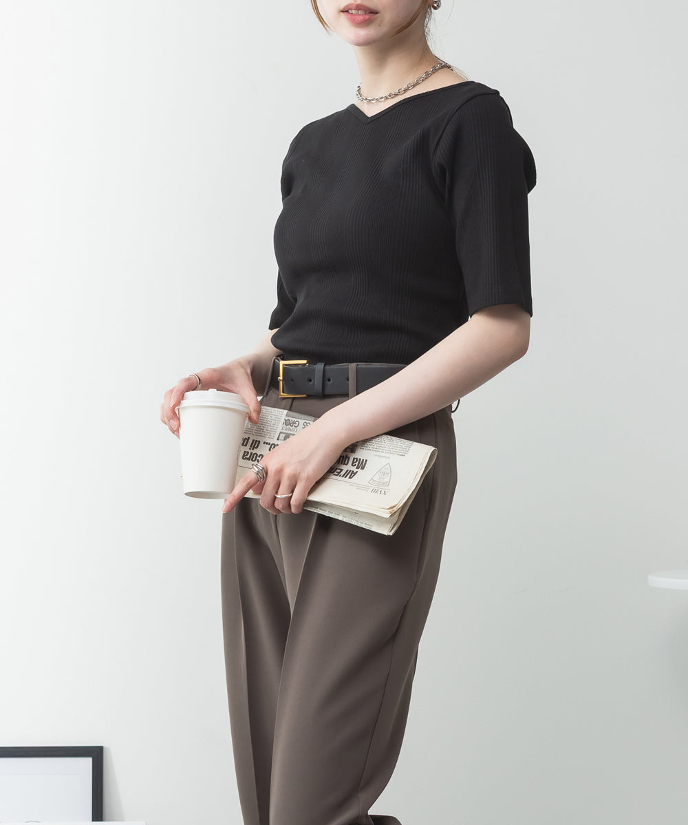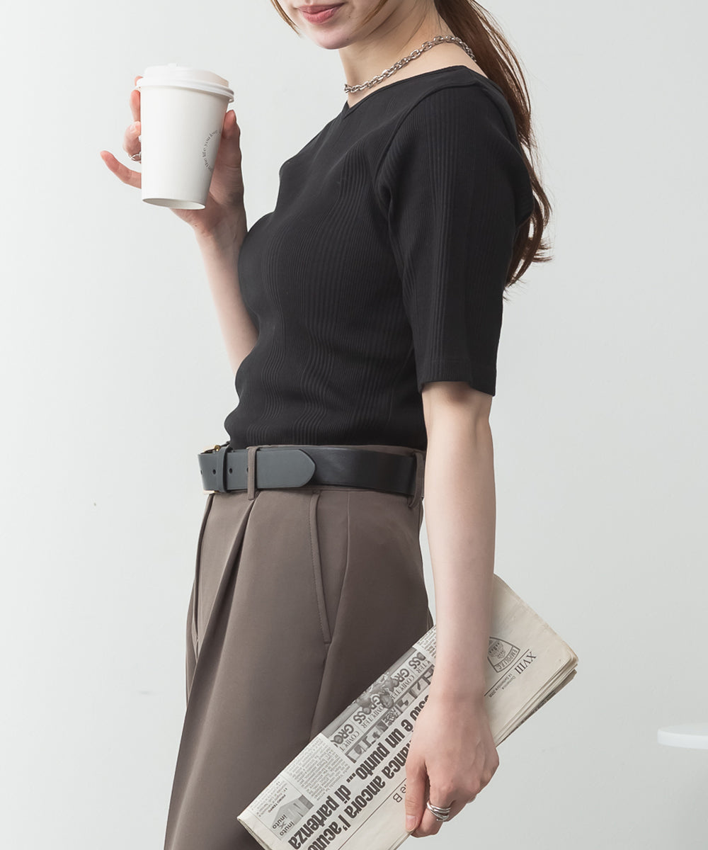 着まわし大活躍!コットン素材のランダムリブボートネック&VネックTシャツ