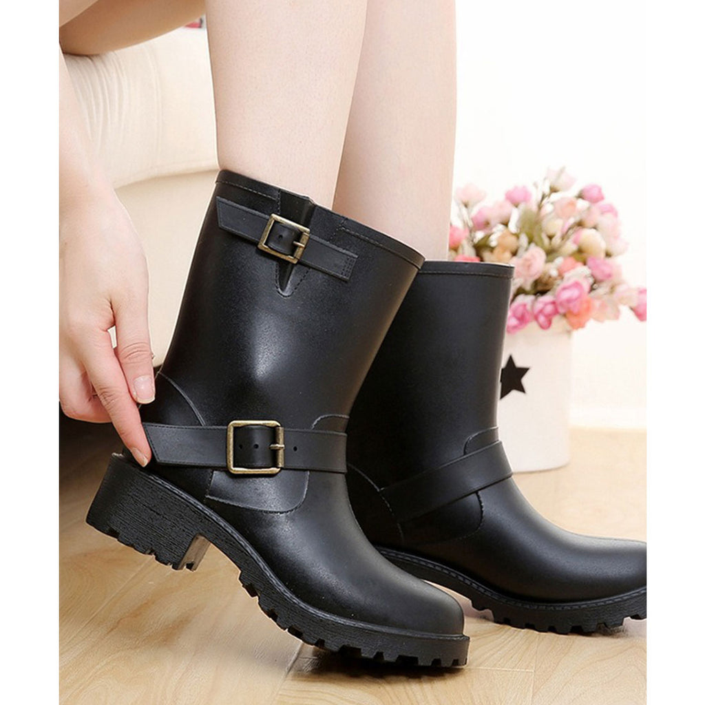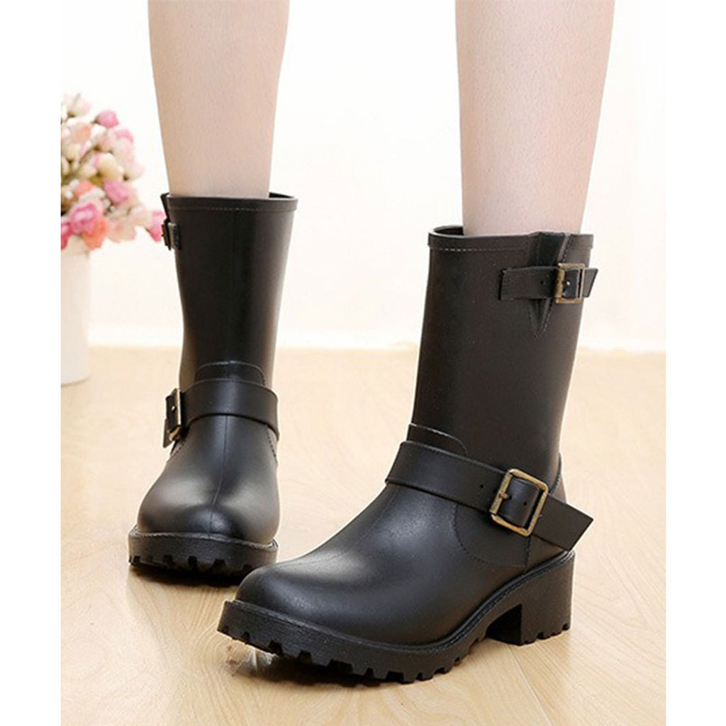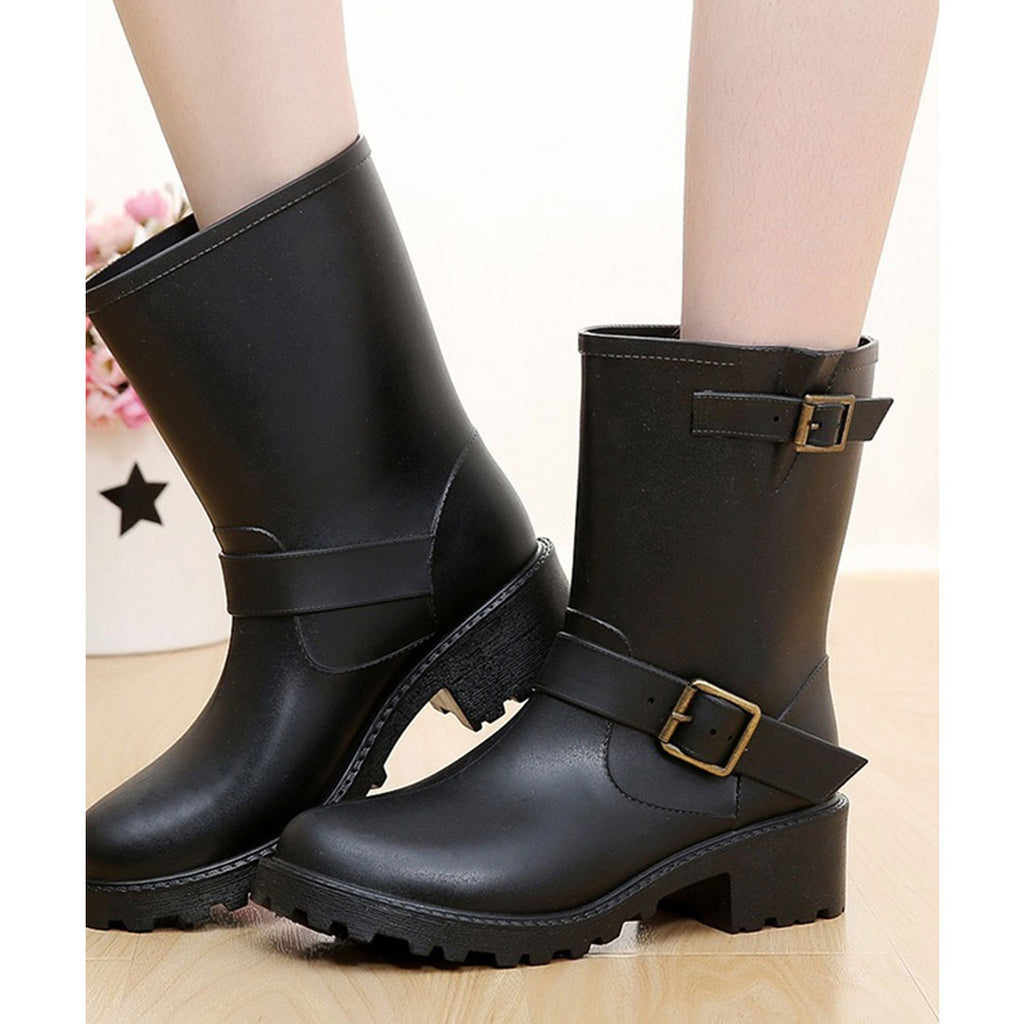 レースレディース Lace Ladies ラバー素材 ベルト付き ミドル レイン ブーツ