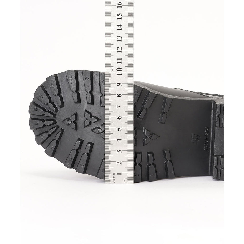 タンクソールはチャンキーヒールと組み合わせて、エッジの効いた1足に仕上げました。