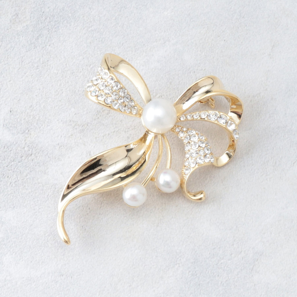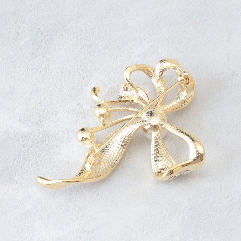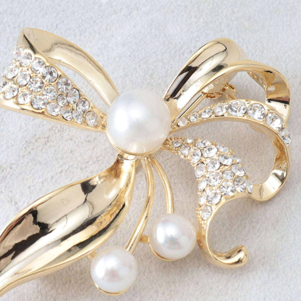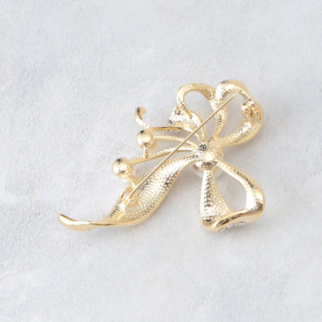 トレンドのリボンモチーフを取り入れた、優雅で上品な印象のブローチ。