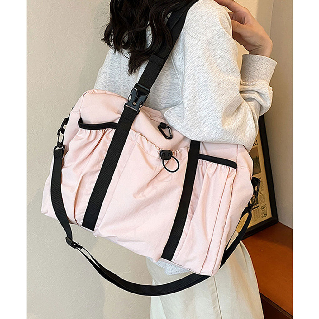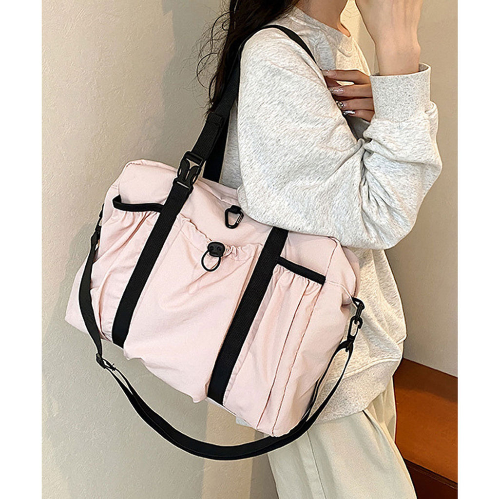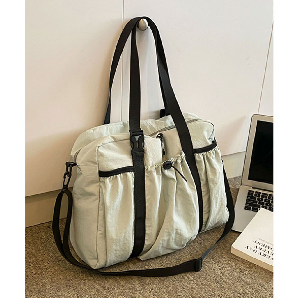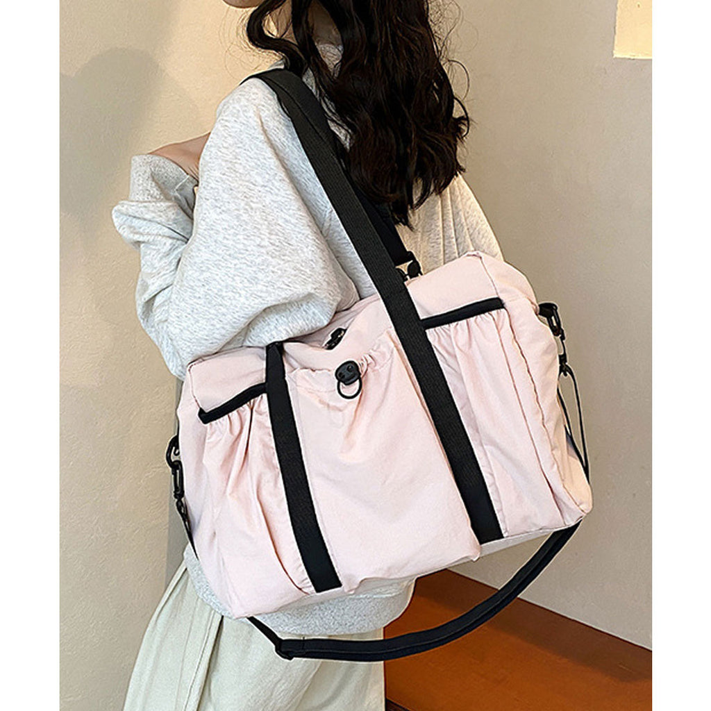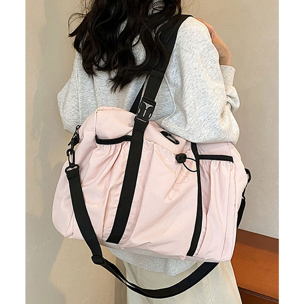 ギャザーポケット配色ボストンバッグ/旅行バッグ/ショルダーバッグ。