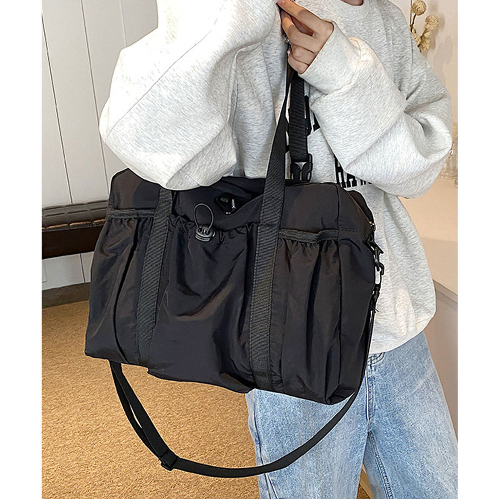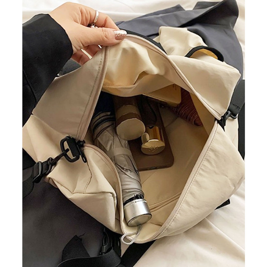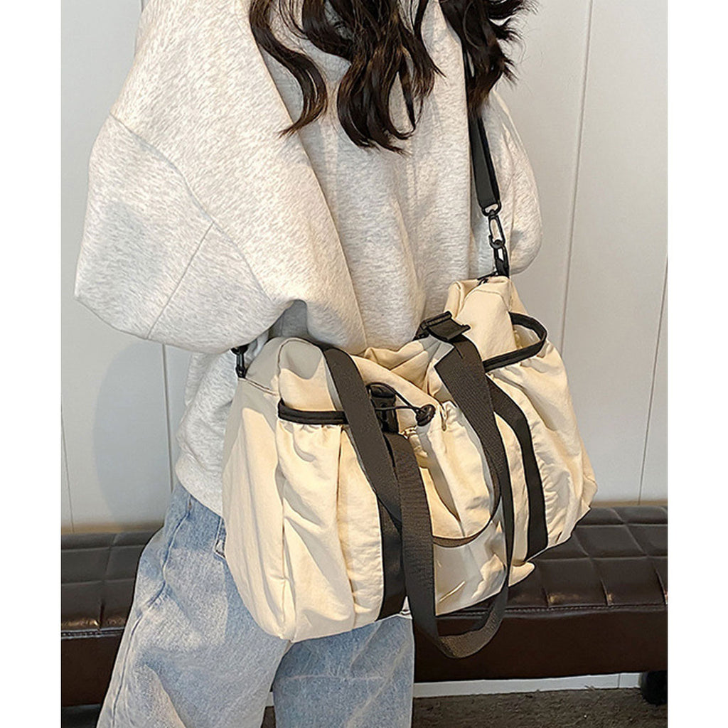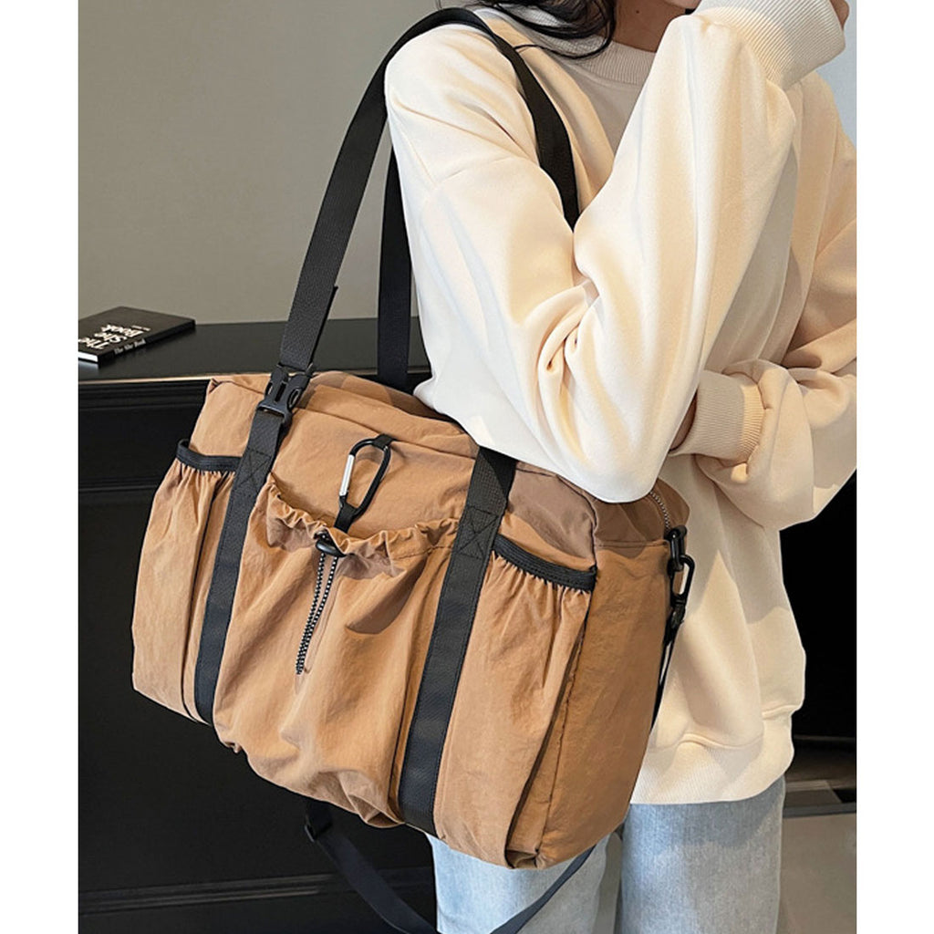 ギャザーポケット配色ボストンバッグ/旅行バッグ/ショルダーバッグ。