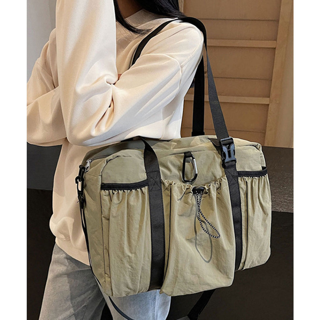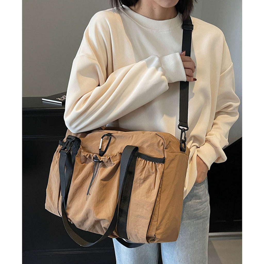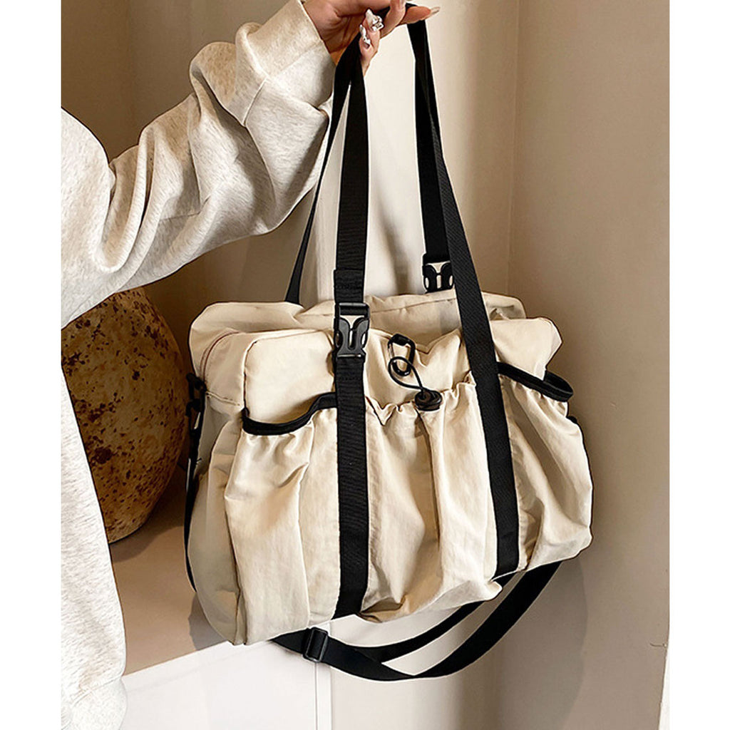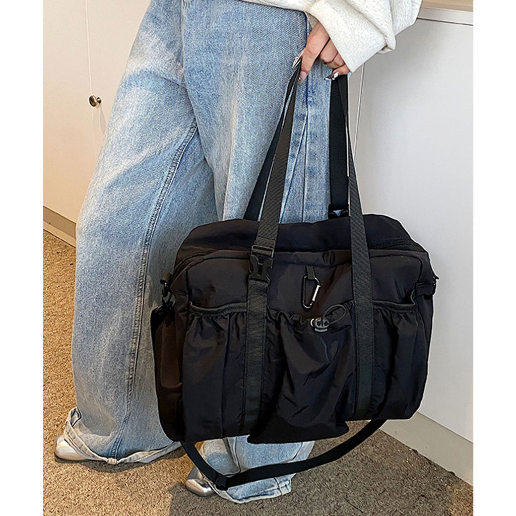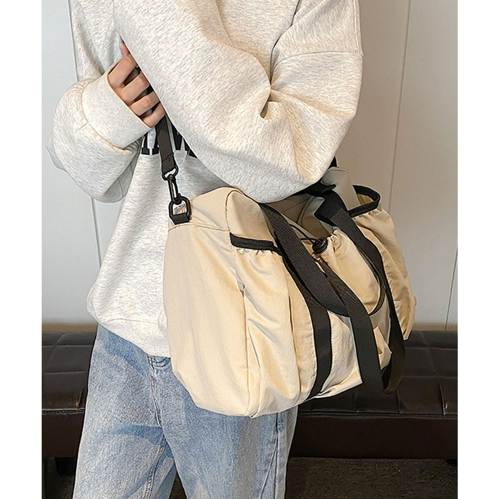 ギャザーポケット配色ボストンバッグ/旅行バッグ/ショルダーバッグ。