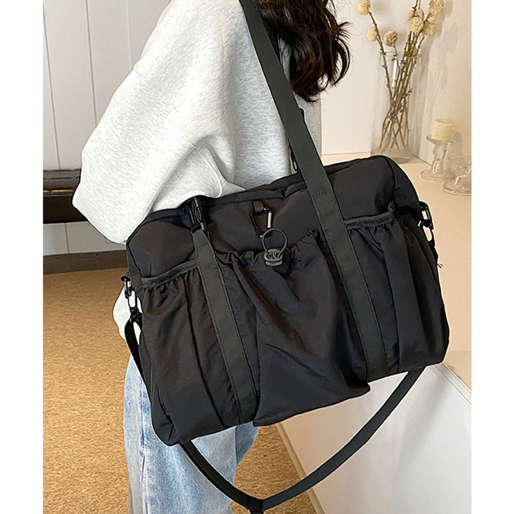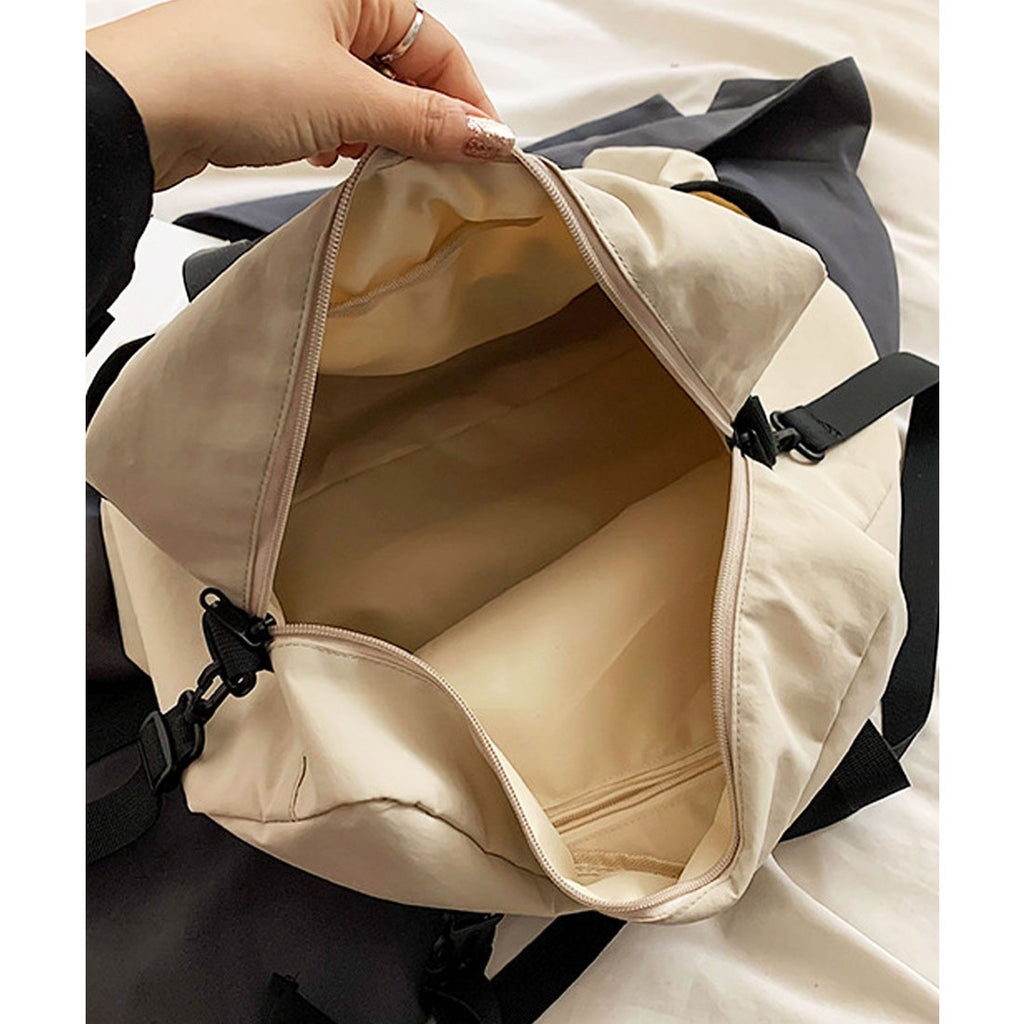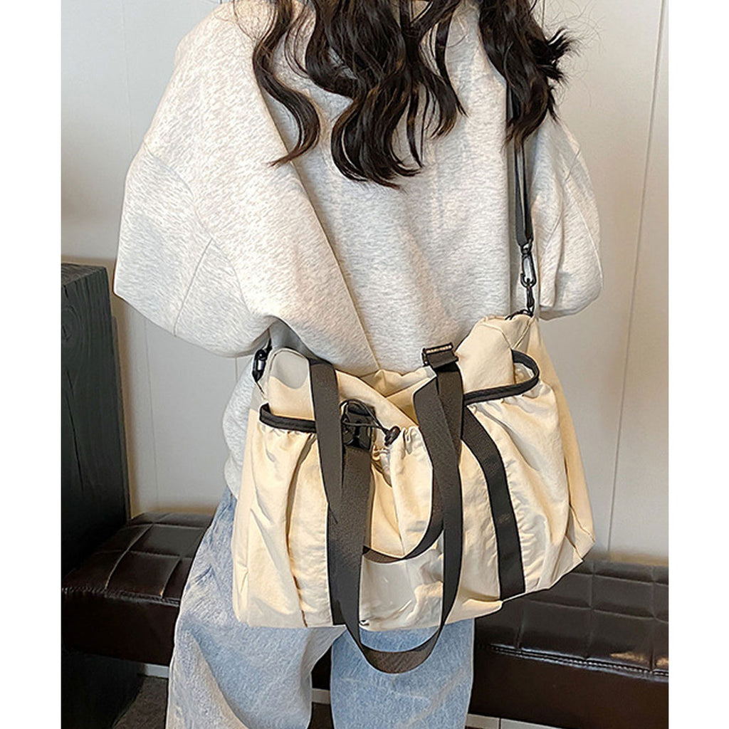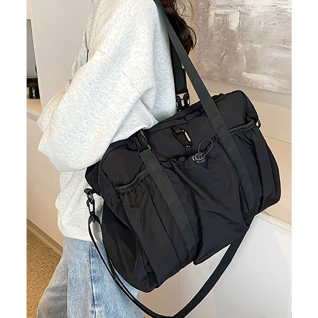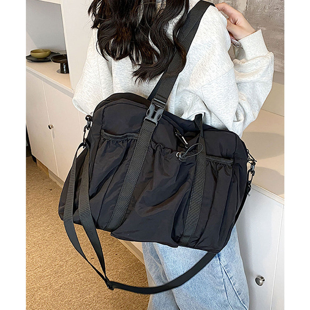 ギャザーポケット配色ボストンバッグ/旅行バッグ/ショルダーバッグ。