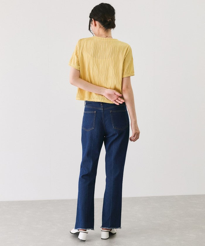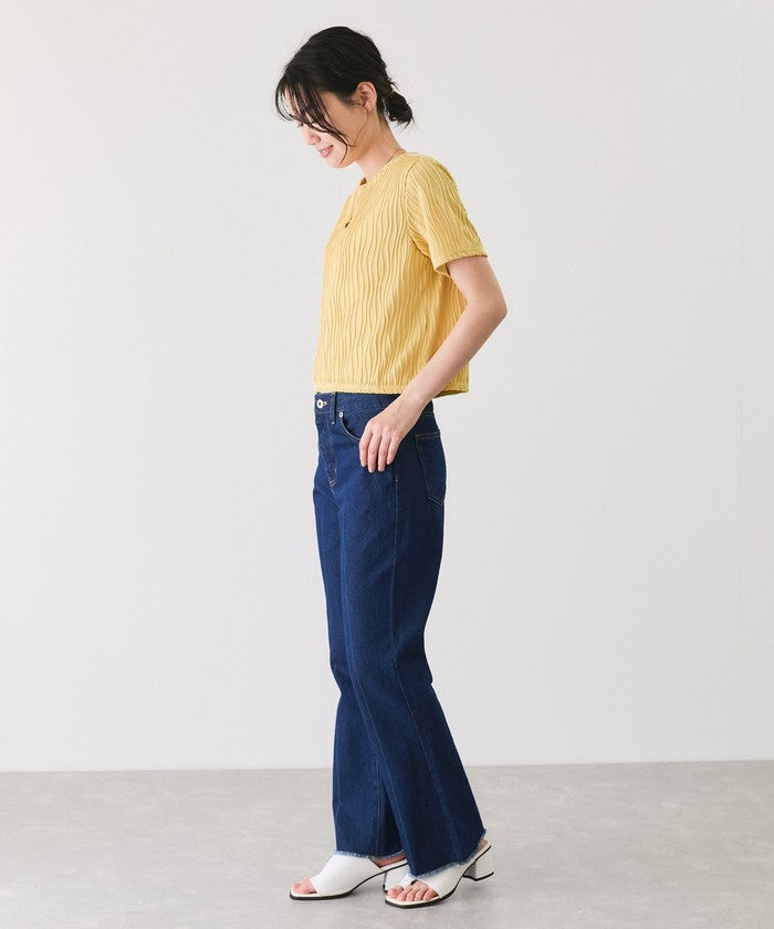 程よく肉感のある生地で体型を拾いにくく、スッキリと着用できるのが嬉しいポイント。