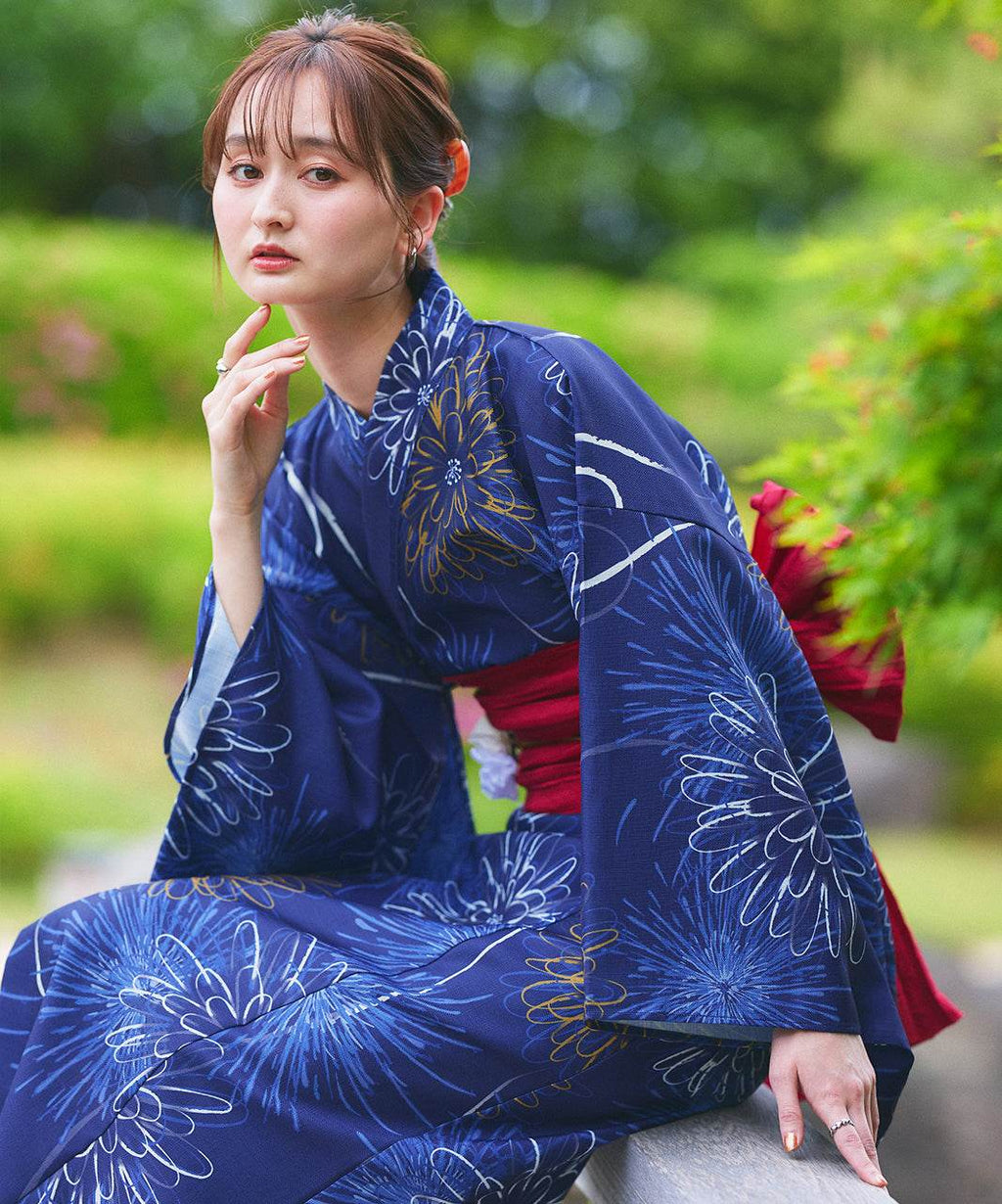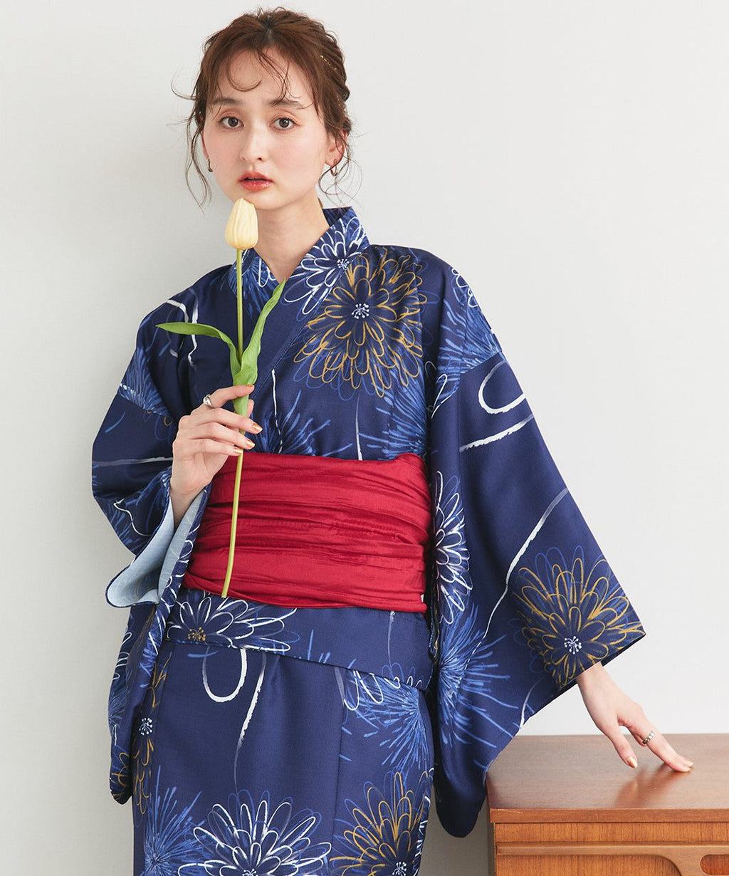 シーズンムード高まる花火柄浴衣3点セット