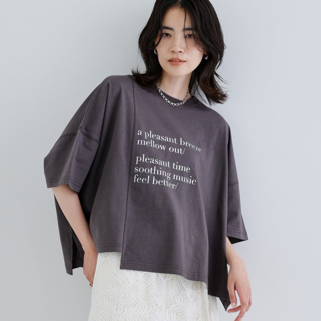 メッセージ性の強いプリントがエッジの効いた印象を与え、コーディネートのアクセントに最適です。