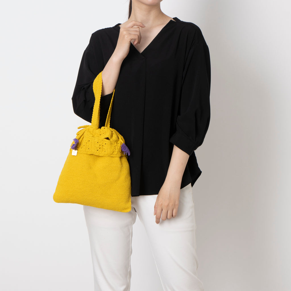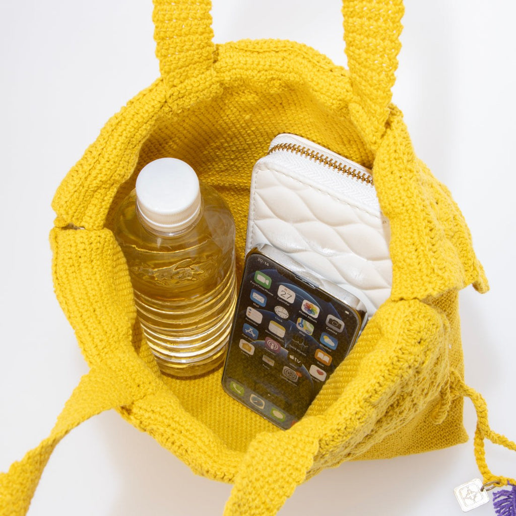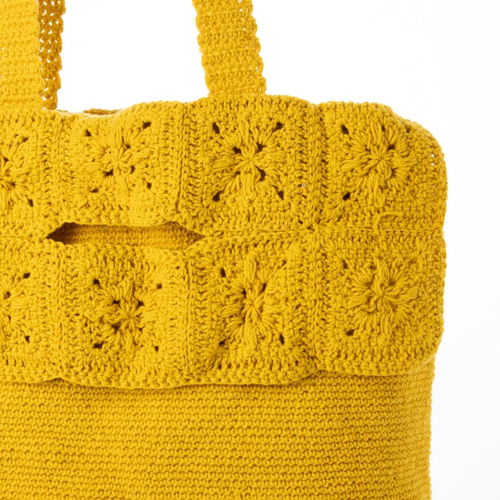レトロな雰囲気漂うかぎ針編みデザインが魅力のトートバッグ。