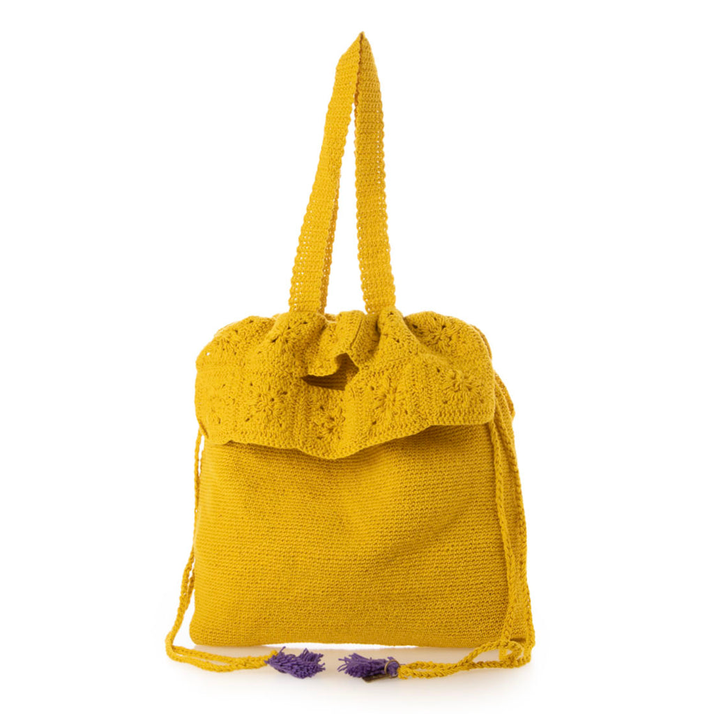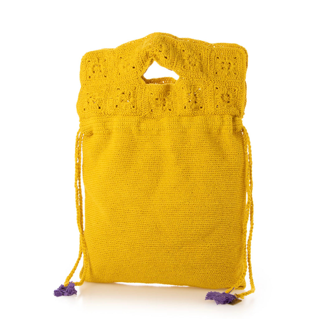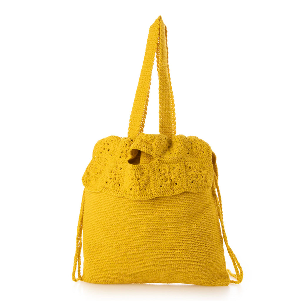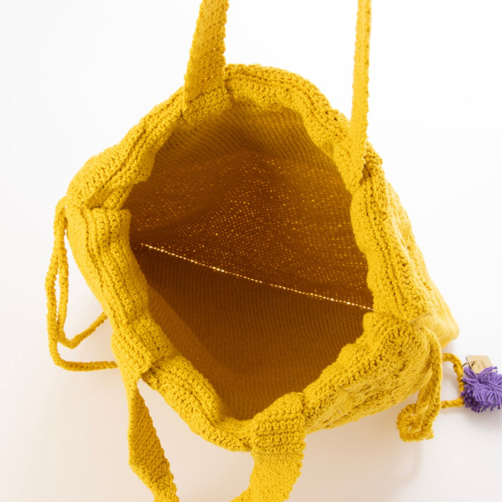 レトロな雰囲気漂うかぎ針編みデザインが魅力のトートバッグ。