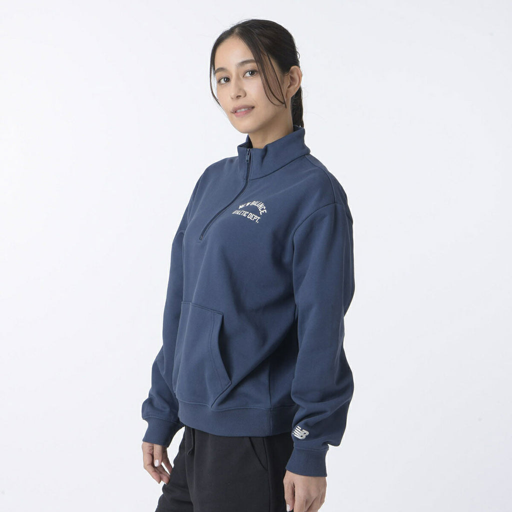 クラシックなカレッジスポーツカルチャーからインスパイアされたスタイルで展開するハーフジップスウェットです。