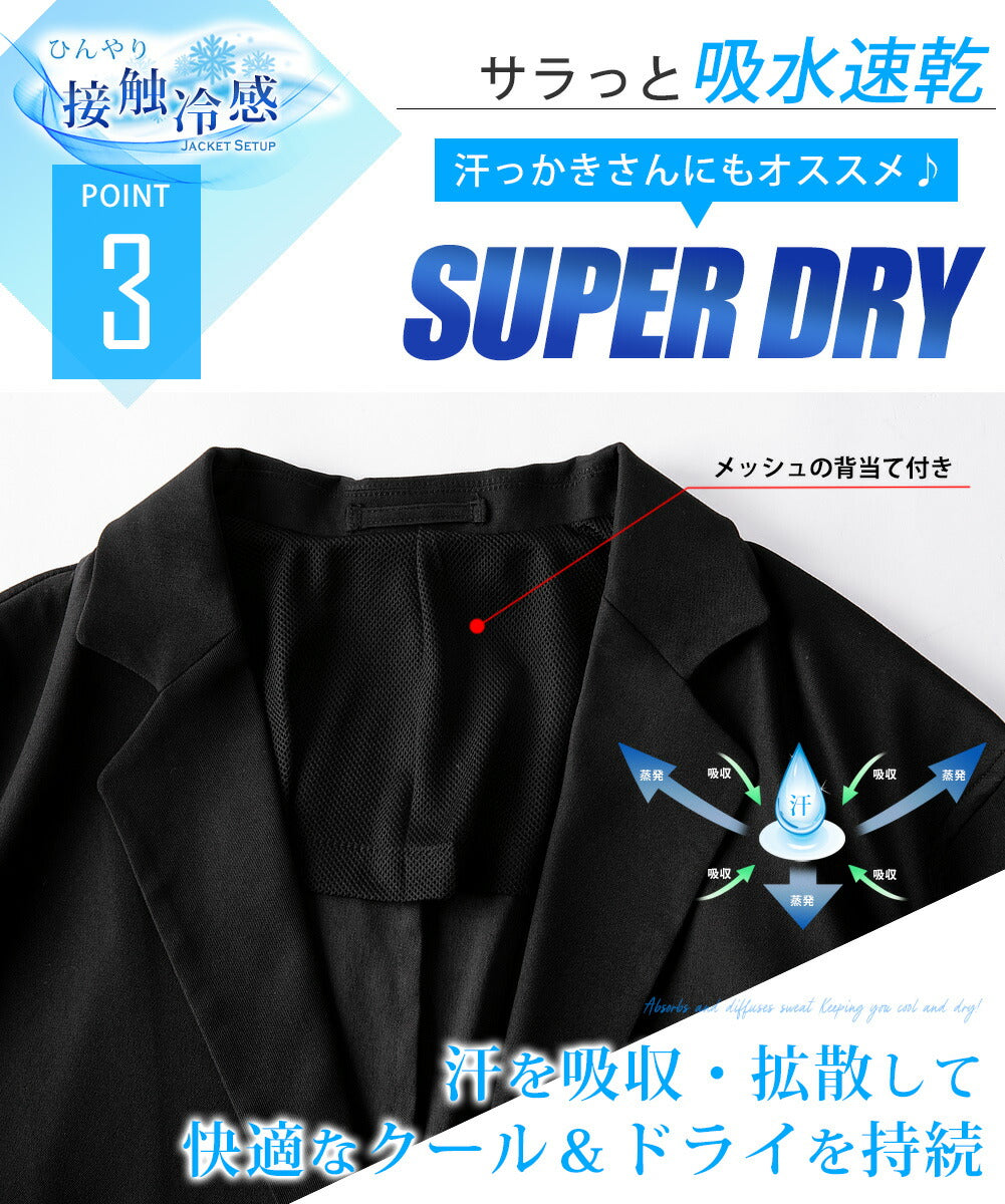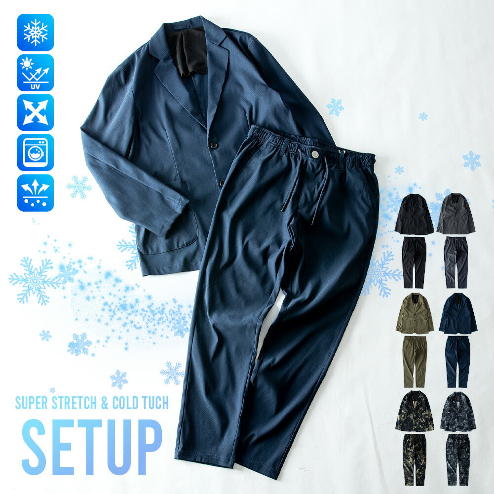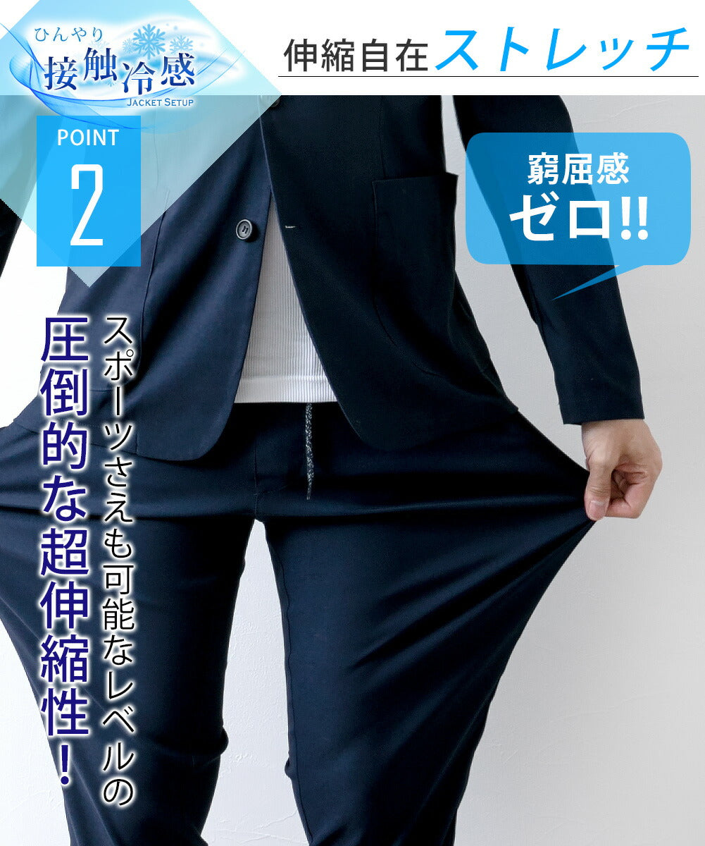 驚くほどの伸縮性と接触冷感素材で、夏の装いを快適にする高機能セットアップジャケット。