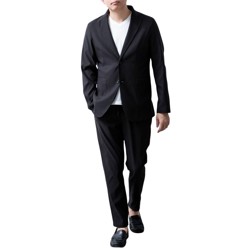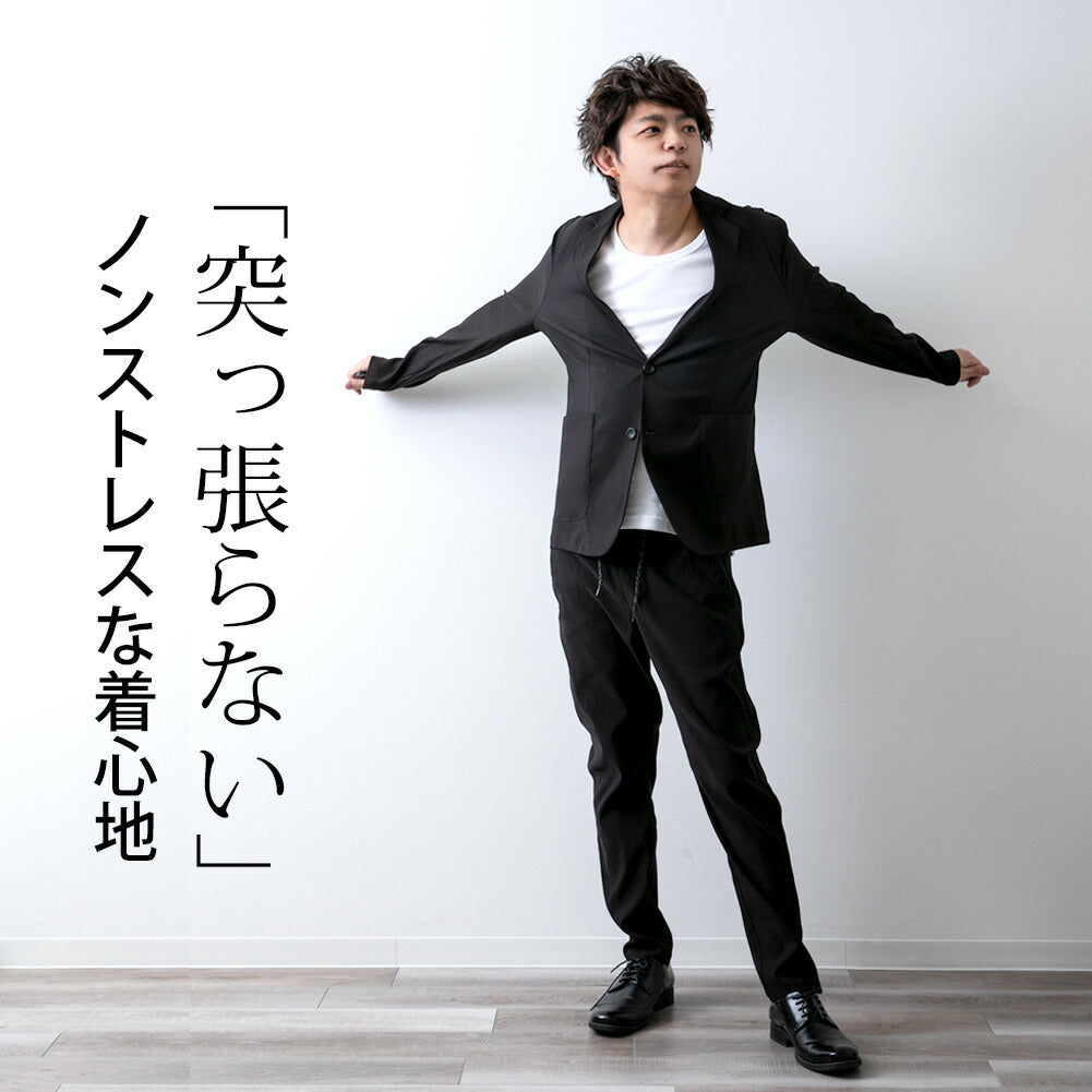 ジェネレス GENELESS セットアップ メンズ テーラード ジャケット 洗えるスーツ 接触冷感 超伸縮 吸水速乾 家庭洗濯可能 おしゃれ 涼しい 無地 在宅勤務 カモ メンズファッション セット 黒 長袖 秋